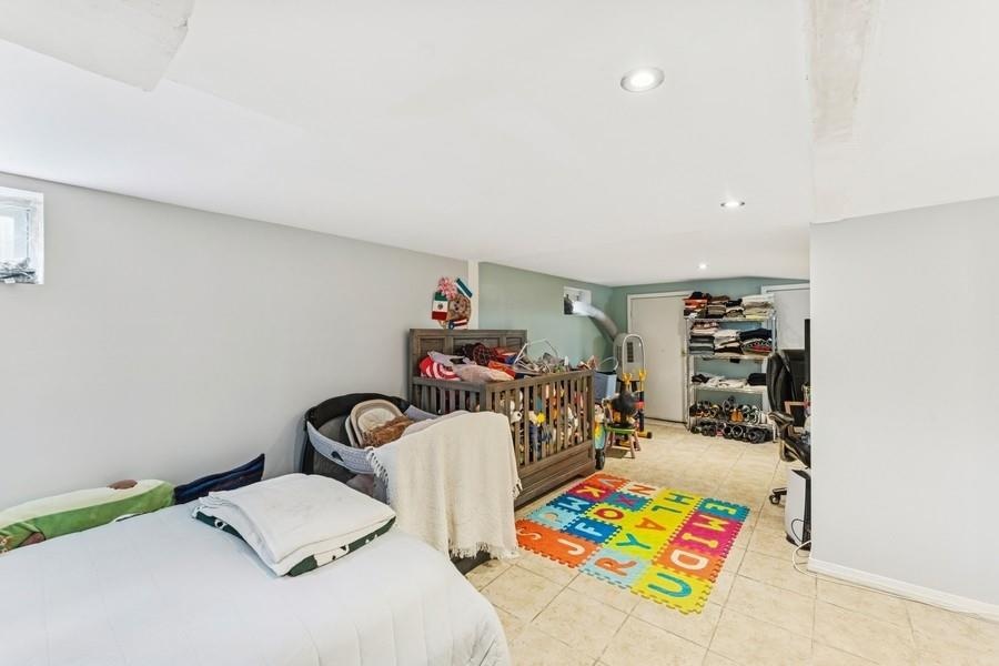 - Bedroom featuring light tile patterned floors and recessed lighting