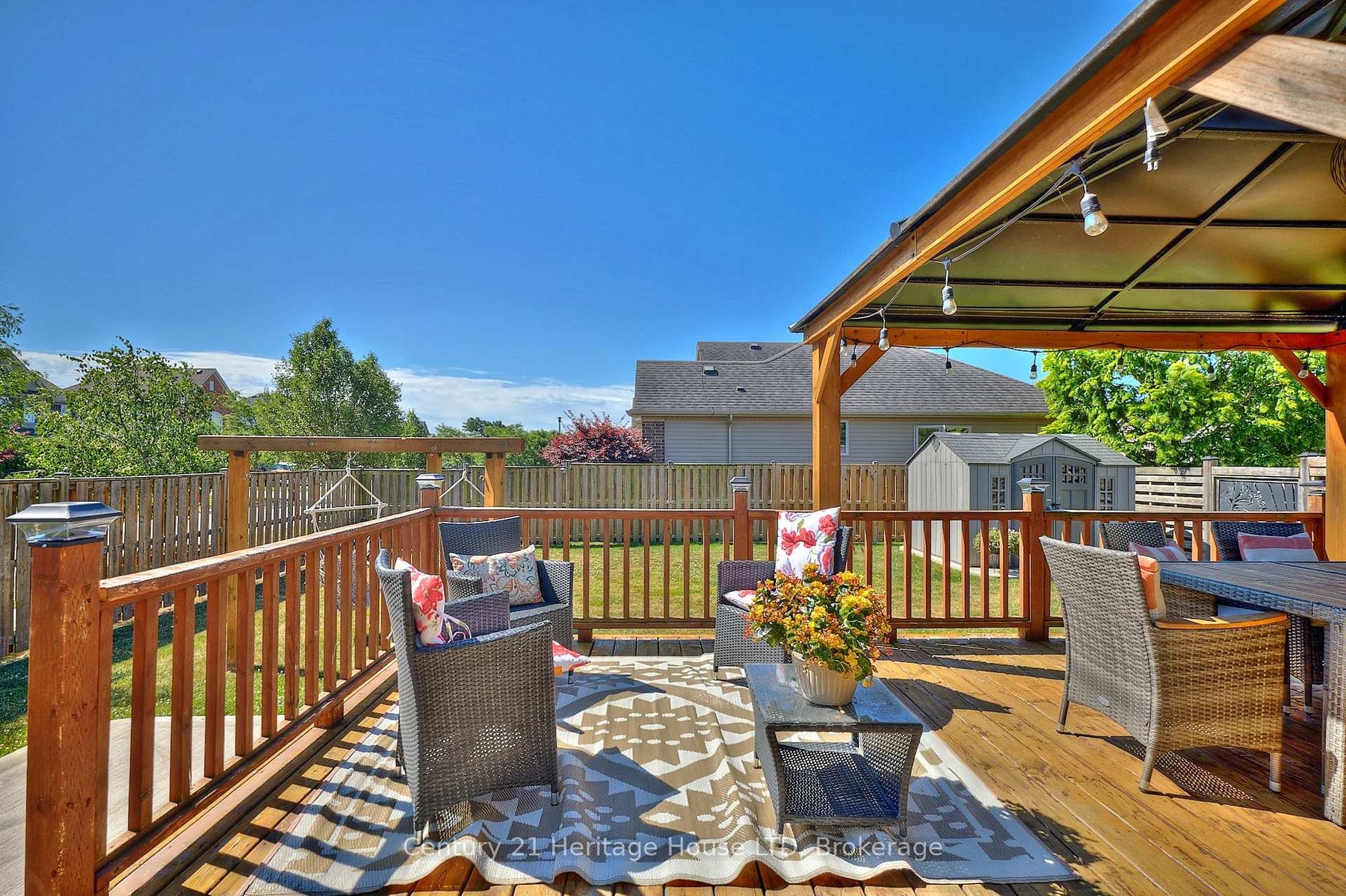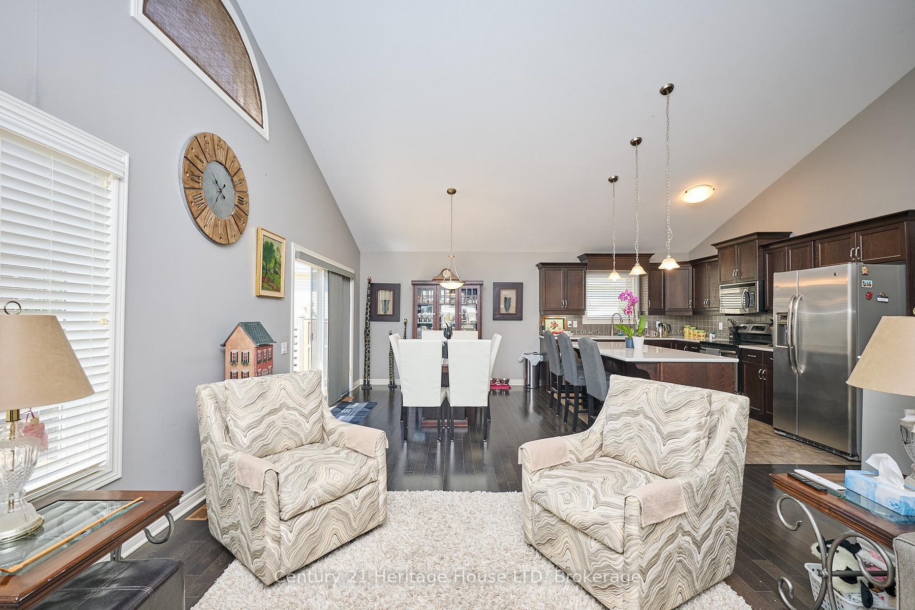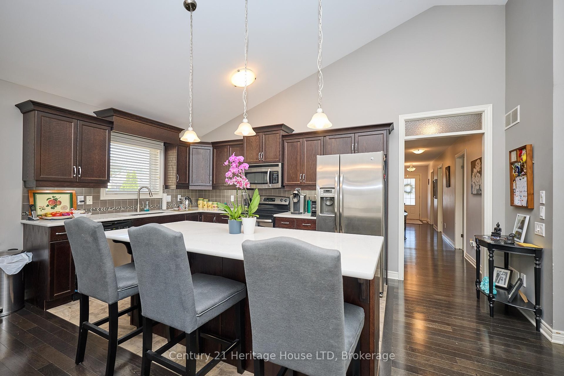 Step inside this beautifully maintained Rinaldi-built model home. This charming 2+1 bedroom bungalow offers bright, open living spaces featuring soaring cathedral ceilings and a cozy gas fireplace in the living room. The spacious dining area includes oversized sliding doors that lead to a large rear deck, perfect for entertaining or relaxing outdoors. The kitchen boasts a generous island, ideal for casual meals or extra prep space. The main floor includes a primary bedroom with ensuite privilege to a 4-piece bathroom, a second bedroom, and the convenience of main-floor laundry. The fully finished basement offers a generous rec room, a third bedroom, a second 4-piece bathroom, and plenty of storage space. Additional highlights include an attached double car garage, in-ground sprinkler system, and a fully fenced, large backyard. Located within walking distance to the canal and Memorial Park, and just minutes from Highway 406 and nearby amenities.