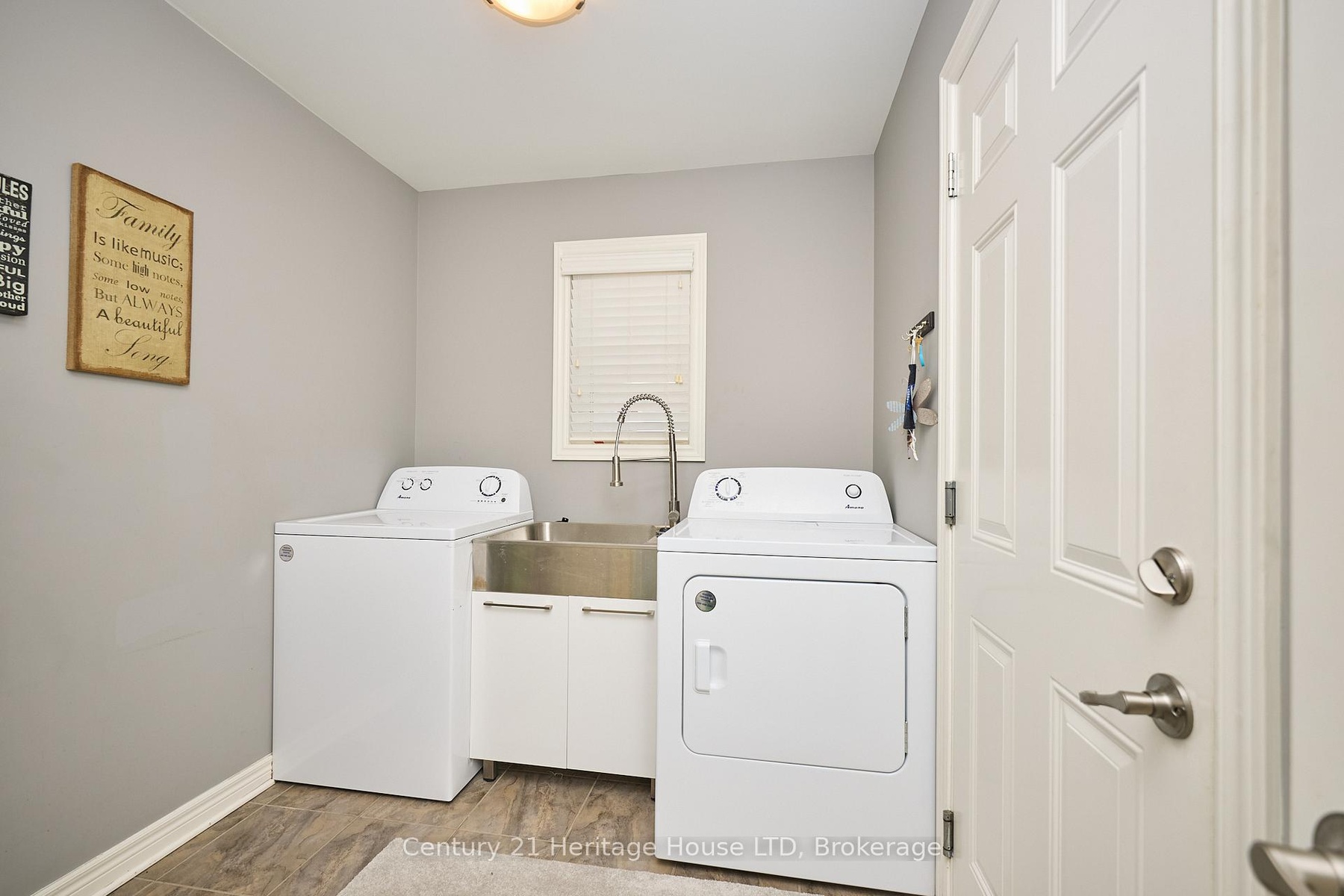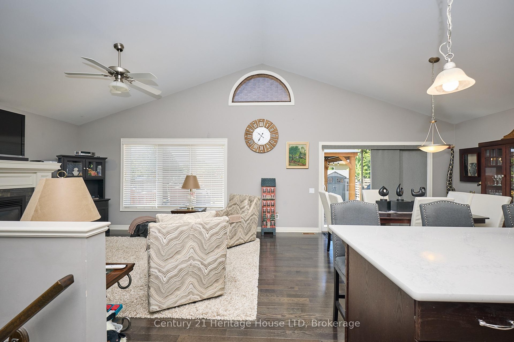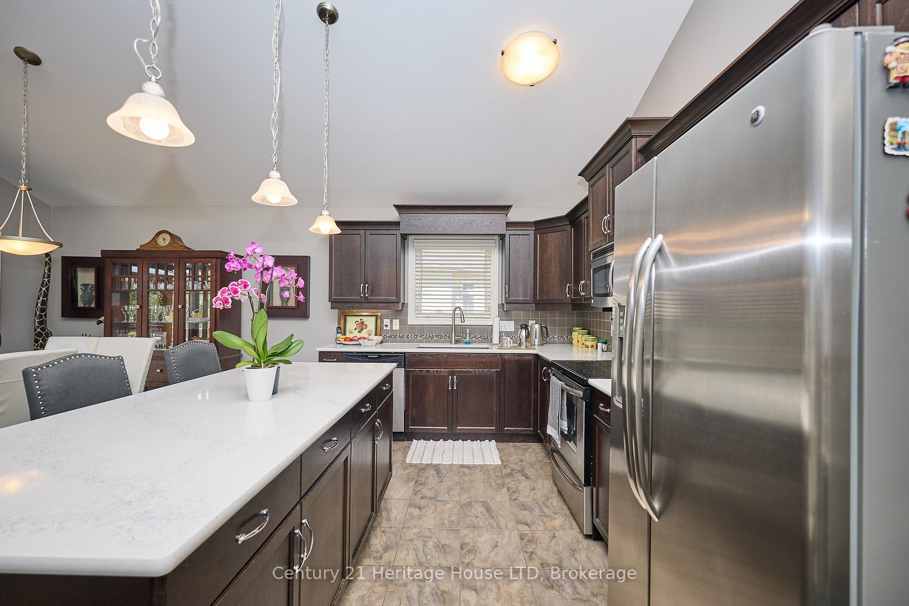 Step inside this beautifully maintained Rinaldi-built model home. This charming 2+1 bedroom bungalow offers bright, open living spaces featuring soaring cathedral ceilings and a cozy gas fireplace in the living room. The spacious dining area includes oversized sliding doors that lead to a large rear deck, perfect for entertaining or relaxing outdoors. The kitchen boasts a generous island, ideal for casual meals or extra prep space. The main floor includes a primary bedroom with ensuite privilege to a 4-piece bathroom, a second bedroom, and the convenience of main-floor laundry. The fully finished basement offers a generous rec room, a third bedroom, a second 4-piece bathroom, and plenty of storage space. Additional highlights include an attached double car garage, in-ground sprinkler system, and a fully fenced, large backyard. Located within walking distance to the canal and Memorial Park, and just minutes from Highway 406 and nearby amenities.