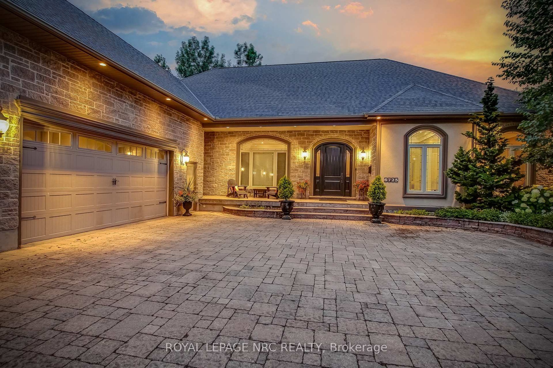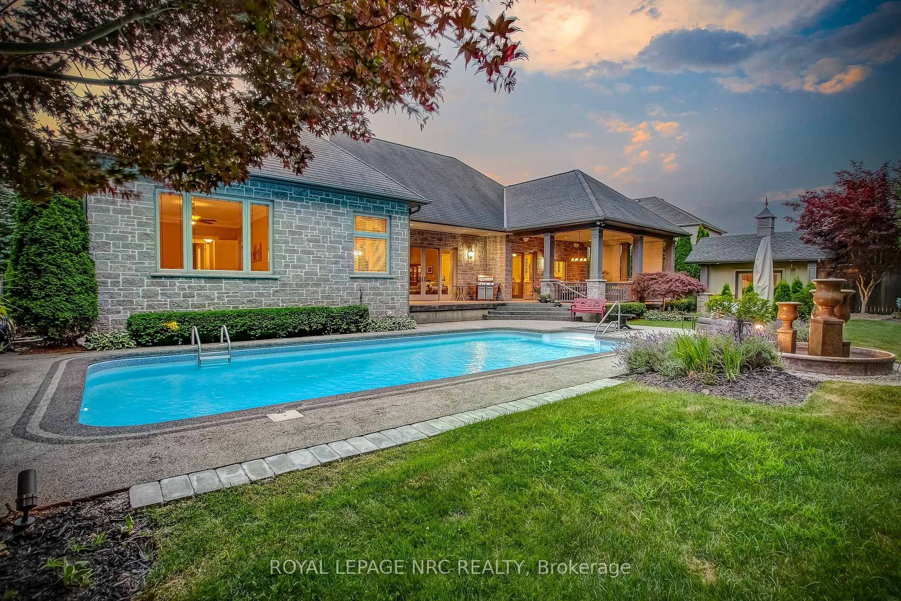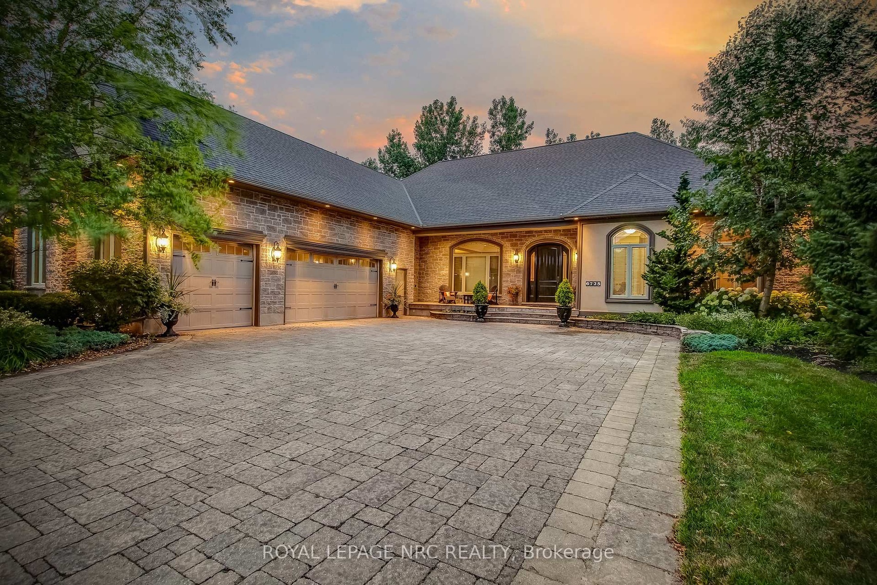 Prepare to be amazed the moment you step through the grand, upgraded solid mahogany door of this remarkable open-concept bungalow. Nestled on a tranquil cul-de-sac in Niagara's prestigious Calaguiro Estates, this 2,740 square foot home exemplifies luxury living with premium finishes, meticulous craftsmanship, and professionally landscaped grounds with an irrigation system. Designed for culinary excellence, the gourmet chef's kitchen is paired with a dedicated prep kitchen, offering unparalleled functionality for those who love to cook and entertain. The expansive living and dining area is adorned with an impressive stone gas fireplace, striking 26-inch crown mouldings, and oversized sliding patio doors that open to a secluded backyard retreat. Here, you'll find a heated saltwater pool and a stunning portico, an idyllic setting for outdoor gatherings and relaxation. The luxurious primary bedroom boasts a custom walk-in closet and a spa-inspired five-piece ensuite finished with elegant travertine and hardwood flooring (under the carpet). An additional bedroom, main floor laundry, central vacuum system, and a hidden loft room provide extra space, comfort, and convenience for everyday living. Downstairs, discover a media room, exercise room, and office, most basking in natural light from oversized windows. The lower level also offers the potential for a complete in-law suite, featuring a spacious five-piece ensuite bathroom and a private entrance, making it ideal for guests or extended family. Completing this extraordinary residence is a triple attached garage, seamlessly blending functionality and style for the ultimate in refined living.