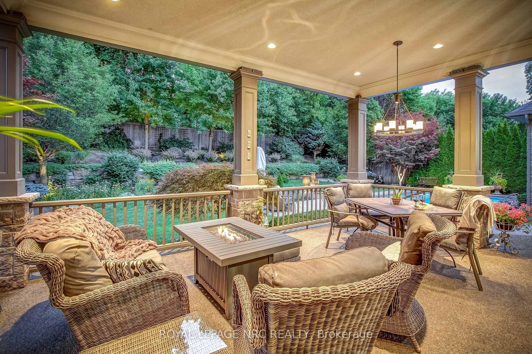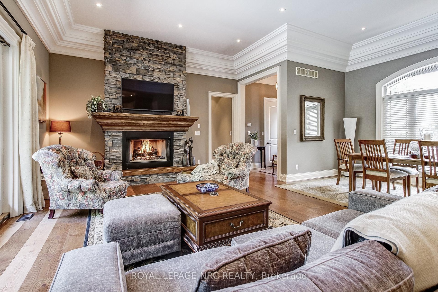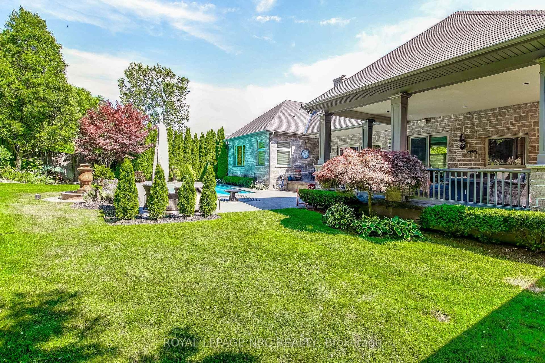 Prepare to be amazed the moment you step through the grand, upgraded solid mahogany door of this remarkable open-concept bungalow. Nestled on a tranquil cul-de-sac in Niagara's prestigious Calaguiro Estates, this 2,740 square foot home exemplifies luxury living with premium finishes, meticulous craftsmanship, and professionally landscaped grounds with an irrigation system. Designed for culinary excellence, the gourmet chef's kitchen is paired with a dedicated prep kitchen, offering unparalleled functionality for those who love to cook and entertain. The expansive living and dining area is adorned with an impressive stone gas fireplace, striking 26-inch crown mouldings, and oversized sliding patio doors that open to a secluded backyard retreat. Here, you'll find a heated saltwater pool and a stunning portico, an idyllic setting for outdoor gatherings and relaxation. The luxurious primary bedroom boasts a custom walk-in closet and a spa-inspired five-piece ensuite finished with elegant travertine and hardwood flooring (under the carpet). An additional bedroom, main floor laundry, central vacuum system, and a hidden loft room provide extra space, comfort, and convenience for everyday living. Downstairs, discover a media room, exercise room, and office, most basking in natural light from oversized windows. The lower level also offers the potential for a complete in-law suite, featuring a spacious five-piece ensuite bathroom and a private entrance, making it ideal for guests or extended family. Completing this extraordinary residence is a triple attached garage, seamlessly blending functionality and style for the ultimate in refined living.