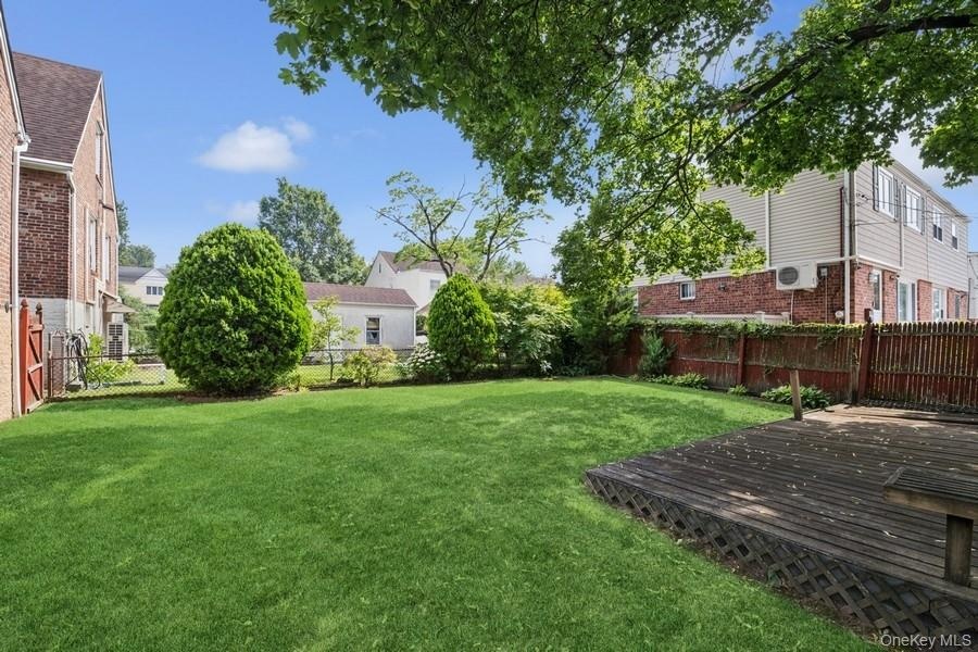 - Fenced backyard with a deck