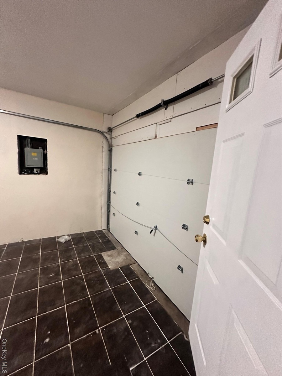 - Full bathroom featuring a shower with shower door and tile patterned flooring