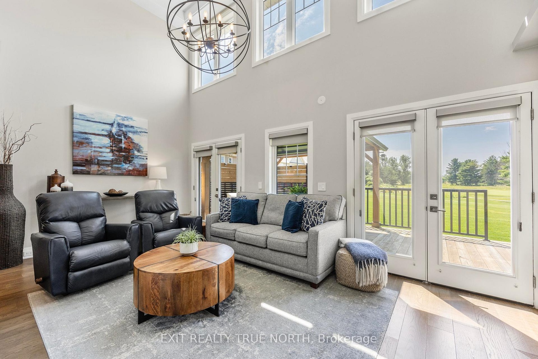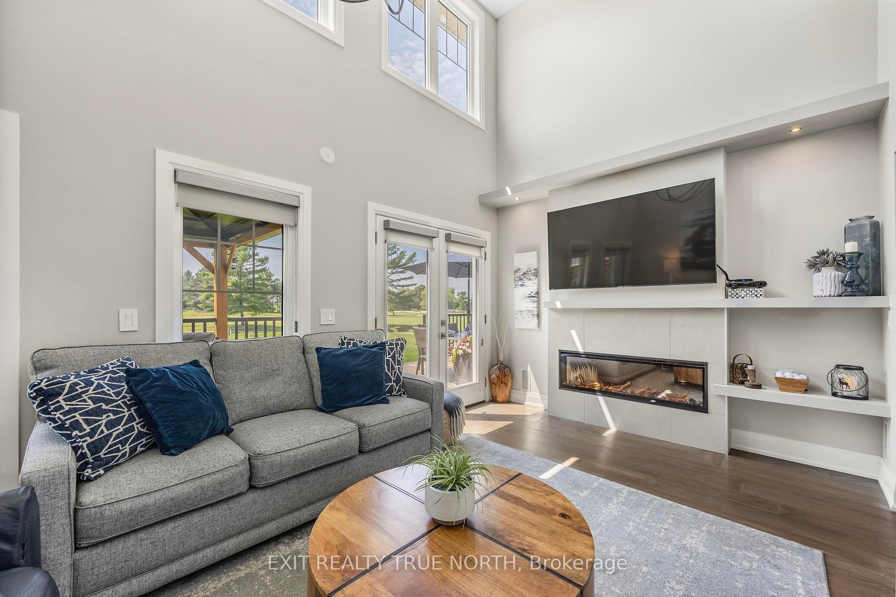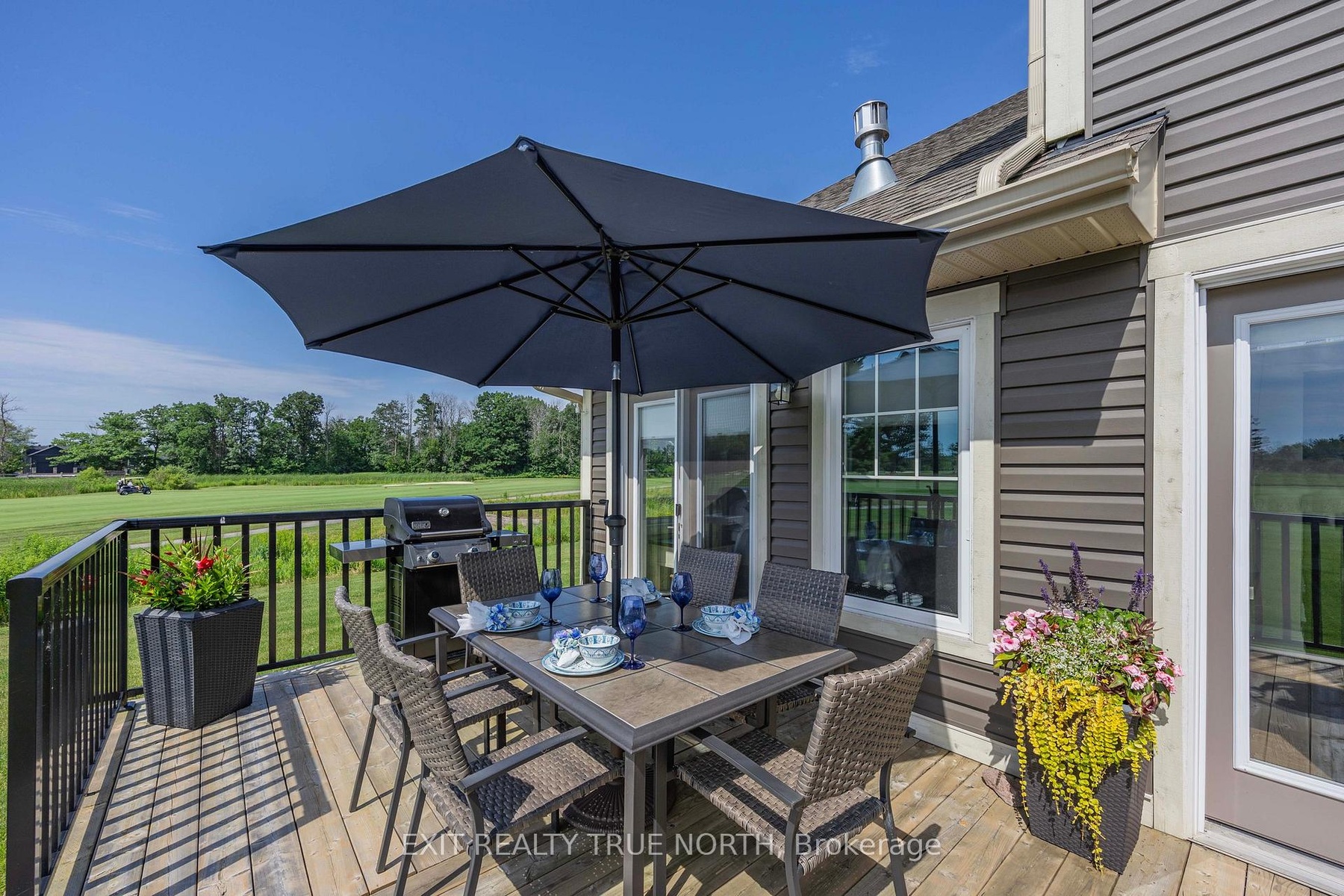The highlight of the towns, this one was originally built for one of the development owners. A Freehold end unit with an unparalleled level of natural light, luxury and sophistication with top-to-bottom customization and high-end finishes. Literally a one-of-a-kind diamond in the community. No neighbors on one side! Main floor family room w. cathedral tray ceiling, luxury lighting, unobstructed breathtaking views of the 18th fairway and spectacular evening sunsets, 2 French door walk outs custom feature wall with convection electric fireplace. Main floor primary suite features french door walkout, large custom walk-in closet with built-ins, and luxurious en suite with oversized shower, dual shower heads, and a private "water closet". Chefs kitchen with gas stove, stainless steel appliances, pot filler tap, custom backsplash, floating shelving, wine fridge, serving counter, and large pantry with custom pull outs. Dining room is easily convertible into a fourth bedroom or an office, with recessed ceiling and pot lights. Second level family room & gorgeous custom laundry room. Additional highlights include pot lights & luxury lighting throughout the entire home, 6.5-inch baseboards with built-in electrical receptacles, hardwood floors throughout, custom Hunter Douglas blinds & an interior whole home air cleaner. A view to live for up the 18th Fairway from inside the house and from the back deck where you can also spend evenings taking in breath taking Georgian Bay Sunsets. Sprinkler system, large deck with private gazebo for your luxurious outdoor oasis. Long list of custom features is available & they must be seen in person to appreciate! This is about living your best life, whatever that is to you! Easy walks, biking, breathtaking views, boating, golfing, pickle ball, gathering with friends, dinner at the club house, laughs and more! Visit our web site for more information! Social membership applies for amenities.