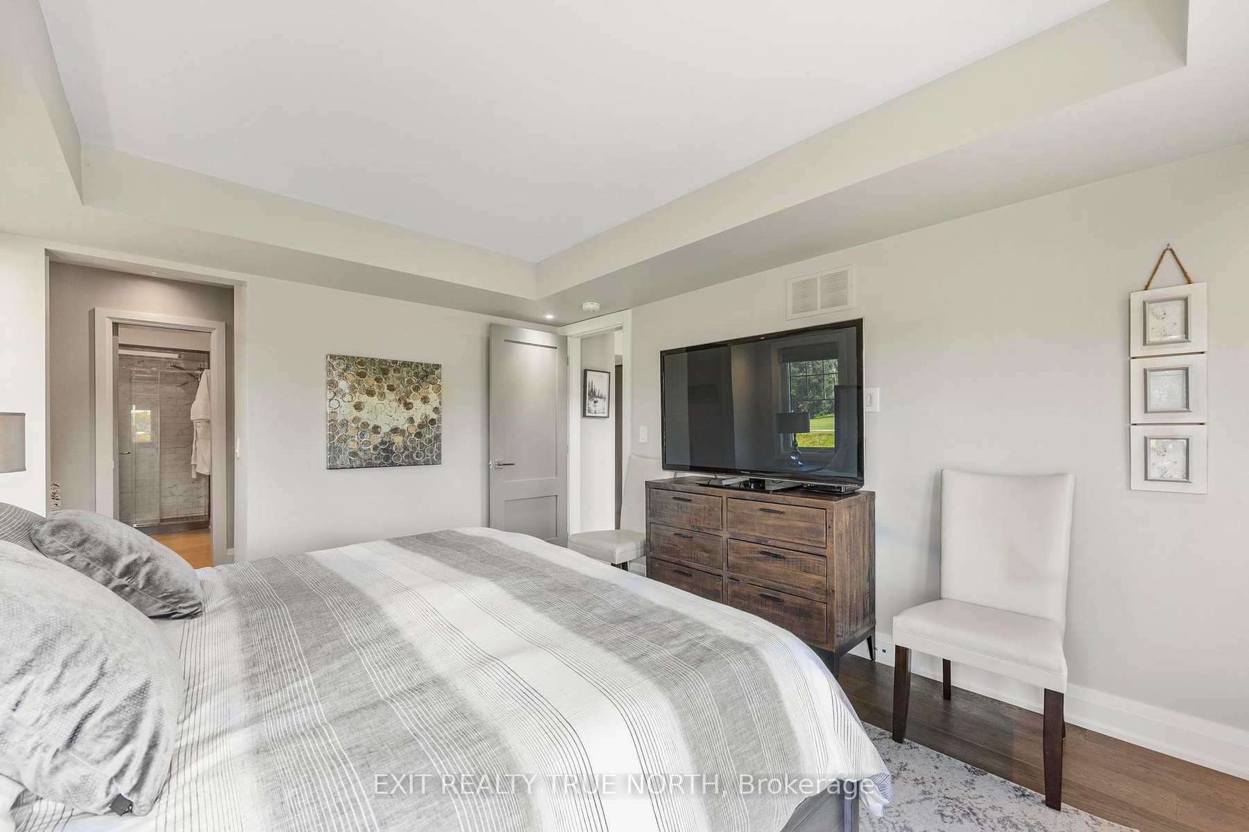 DescriptionThe highlight of the towns, this one was originally built for one of the development owners. A Freehold end unit with an unparalleled level of natural light, luxury and sophistication with top-to-bottom customization and high-end finishes. Literally a one-of-a-kind diamond in the community. No neighbors on one side! Main floor family room w. cathedral tray ceiling, luxury lighting, unobstructed breathtaking views of the 18th fairway and spectacular evening sunsets, 2 French door walk outs custom feature wall with convection electric fireplace. Main floor primary suite features french door walkout, large custom walk-in closet with built-ins, and luxurious en suite with oversized shower, dual shower heads, and a private "water closet". Chefs kitchen with gas stove, stainless steel appliances, pot filler tap, custom backsplash, floating shelving, wine fridge, serving counter, and large pantry with custom pull outs. Dining room is easily convertible into a fourth bedroom or an office, with recessed ceiling and pot lights. Second level family room & gorgeous custom laundry room. Additional highlights include pot lights & luxury lighting throughout the entire home, 6.5-inch baseboards with built-in electrical receptacles, hardwood floors throughout, custom Hunter Douglas blinds & an interior whole home air cleaner. A view to live for up the 18th Fairway from inside the house and from the back deck where you can also spend evenings taking in breath taking Georgian Bay Sunsets. Sprinkler system, large deck with private gazebo for your luxurious outdoor oasis. Long list of custom features is available & they must be seen in person to appreciate! This is about living your best life, whatever that is to you! Easy walks, biking, breathtaking views, boating, golfing, pickle ball, gathering with friends, dinner at the club house, laughs and more! Visit our web site for more information! Social membership applies for amenities.Amenities- Air Exchanger
