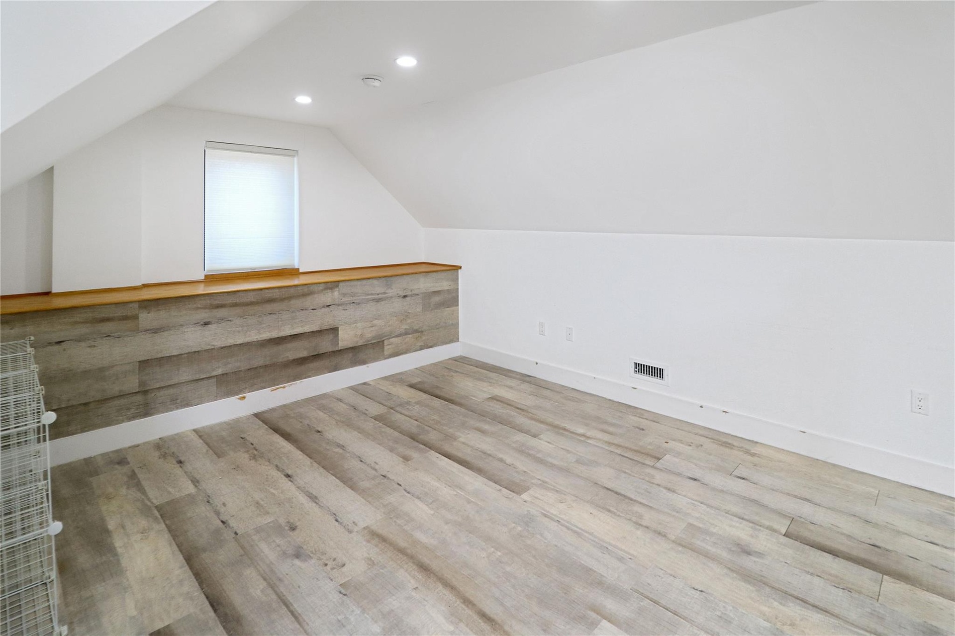 - Bonus room featuring lofted ceiling, light wood-type flooring, and recessed lighting