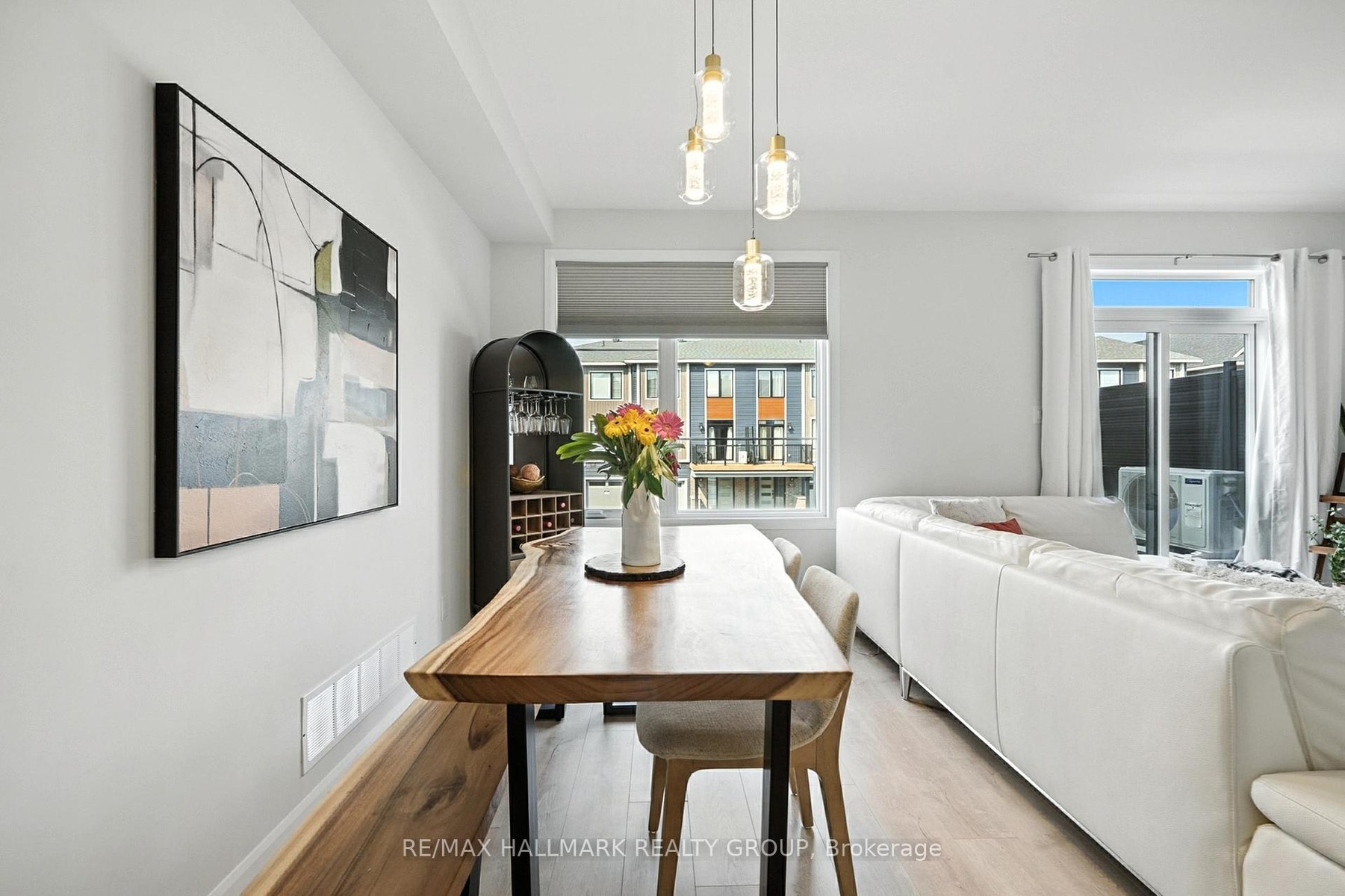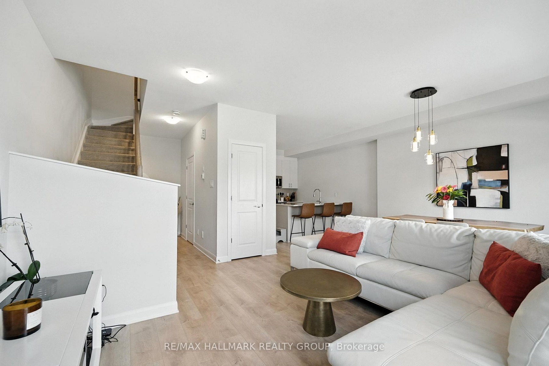 This bright and inviting Minto Alder model townhome offers a spacious three-storey layout in the desirable Avalon West community of Orleans. This well-appointed residence features two bedrooms and one and a half bathrooms, designed to provide both comfort and functionality. The main floor entry provides convenient inside access to a single-car garage, along with a dedicated laundry room, separate utility space, and ample storage. Upstairs, the second floor boasts an open-concept living and dining area, enhanced by abundant natural light and laminate flooring throughout. The living space opens onto a cozy balcony, ideal for enjoying your morning coffee or relaxing at the end of the day. The modern kitchen is equipped with stainless steel appliances, a double sink, a breakfast bar, and a separate pantry, offering plenty of storage and preparation space. The bedrooms are carpeted for added warmth and comfort, with the primary bedroom featuring a generous walk-in closet. This townhome requires minimal outdoor upkeep, as there is no backyard to maintain, only a small front lawn and a covered porch. Residents benefit from proximity to recreation, shopping, restaurants, public transit, and parks, making it an excellent choice for convenient and comfortable living.