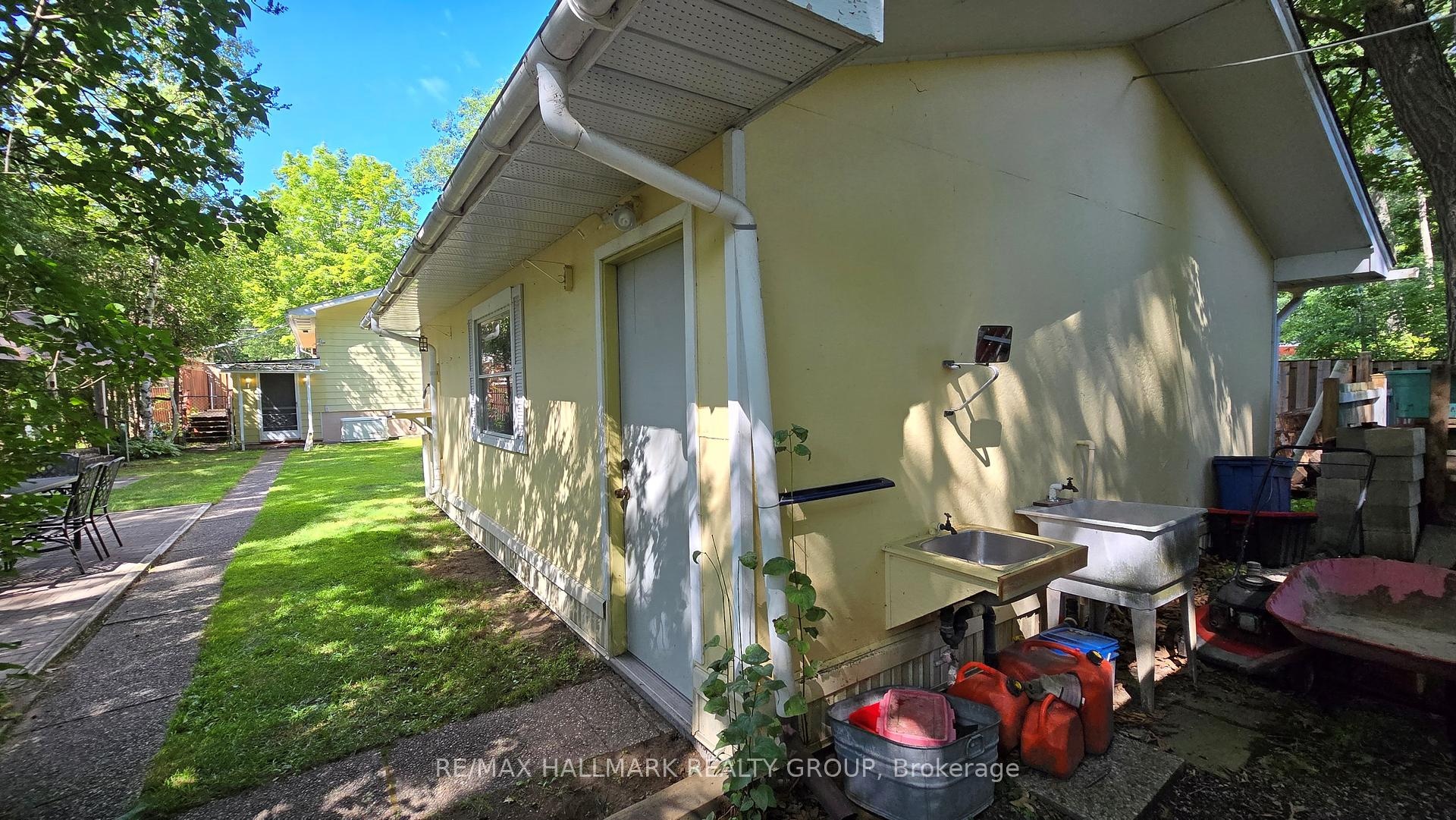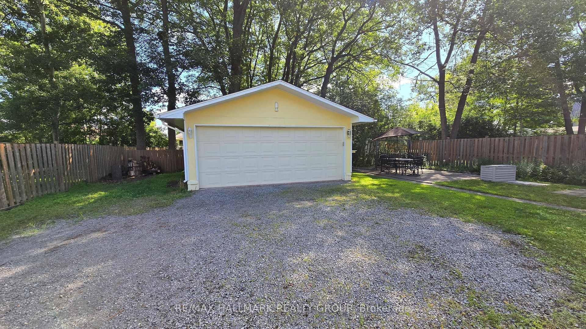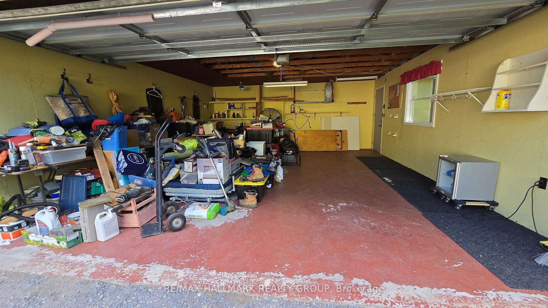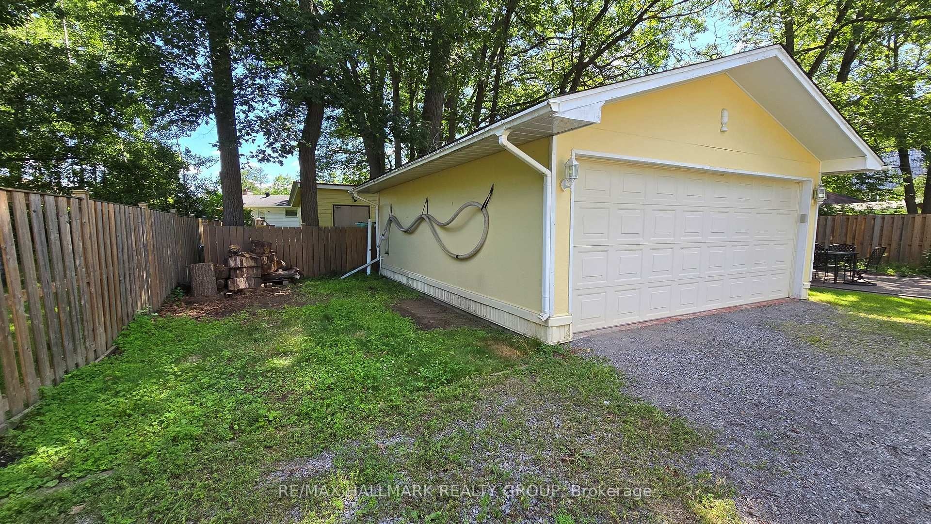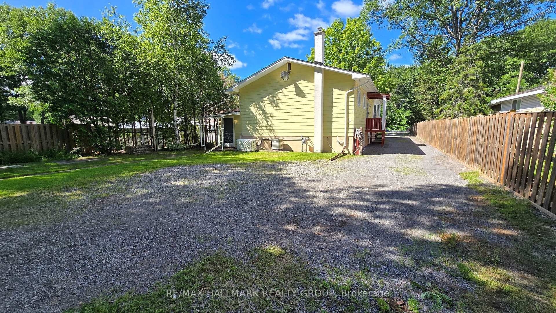 Must be Seen! Nestled on a quiet street, this absolutely, delightful 2 Bedroom, 1.5 Bath Bungalow is situated on a beautiful 42 x 219 lot just steps from Augers Beach & Torbolton Forest trails! The property features a detached 20 x 24 garage, 16 x 12 detached workshop & a 12 x 13 shed all with electricity ideal for hobbyists. Relax on the covered front porch that wraps around to another side deck with a ramp to the front yard plus steps down to access the back yard. Enjoy exceptional privacy with generous yard space and a pretty back patio creating the perfect outdoor sanctuary. Inside, this deceivingly spacious & charming home is a great layout complete with easy care laminate flooring on the main level. The Living Room has patio doors to the inviting covered deck plus a stunning bow window fills the space with natural light. The well-equipped kitchen spoils the cook with lots of cupboard and counter space and overlooks the Living Room with a handy pass through to the Dining Room. The 3 piece bath has a walk-in shower with built-in bench and a handy laundry area with stackable wash & dryer so all your needs are on the main level. Both, the Primary & Second Bedrooms are large having closets equipped with lighting. The Basement has a separate access to the backyard, a Napolean natural gas fireplace, a 2 piece bathroom, storage room, another laundry area plus a cedar closet. Updated with vinyl windows on main level & the patio door has built-in blinds. Natural gas furnace & hot water tank 2014 approx. House & roof shingles approx. 9 years old. Note this home is equipped with a Generac & central air. Come take a look at this truly incredible home & property! $$$$ Basement waterproofing work completed September 2025 with new weeping tile & sump pump system.