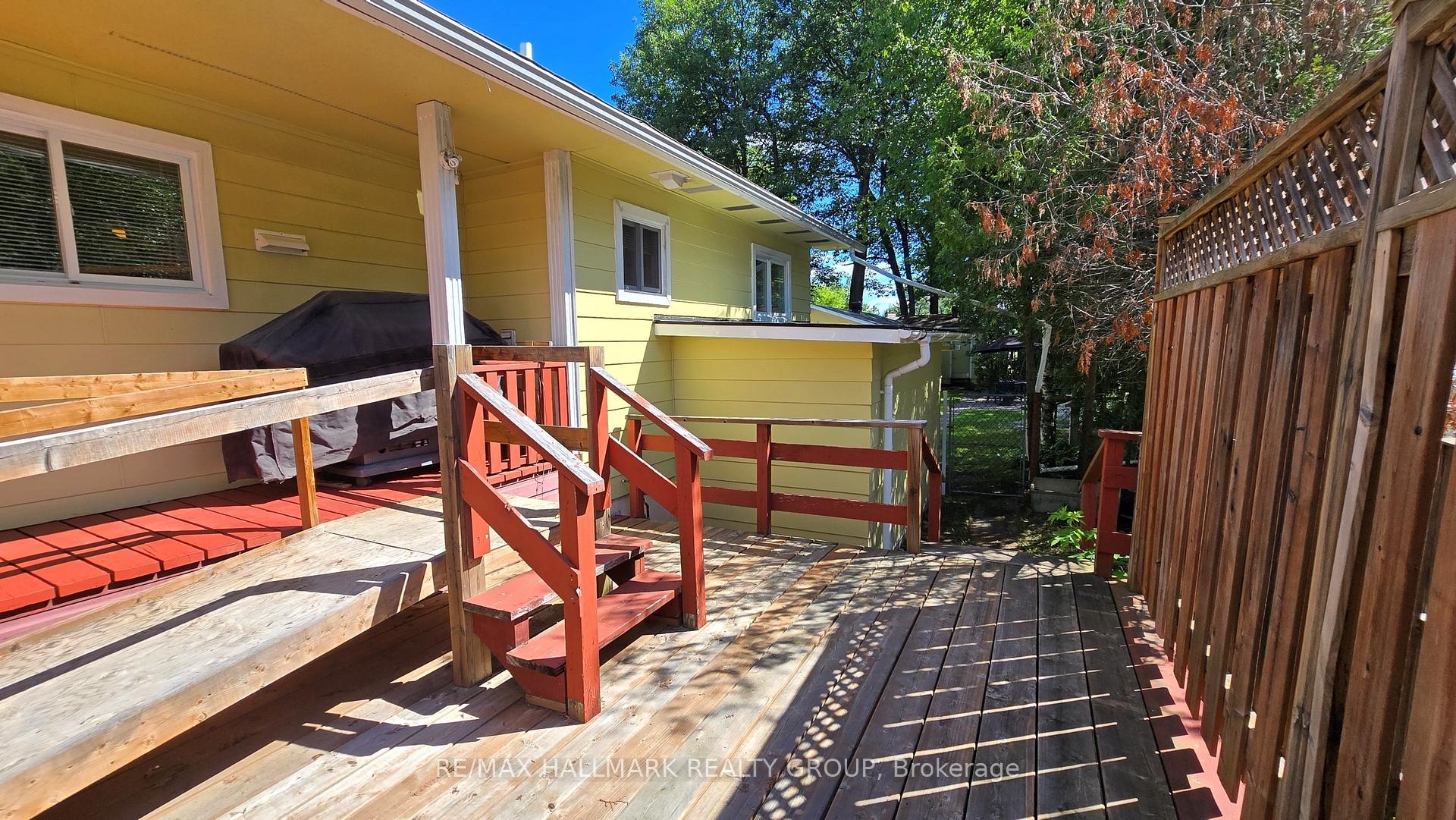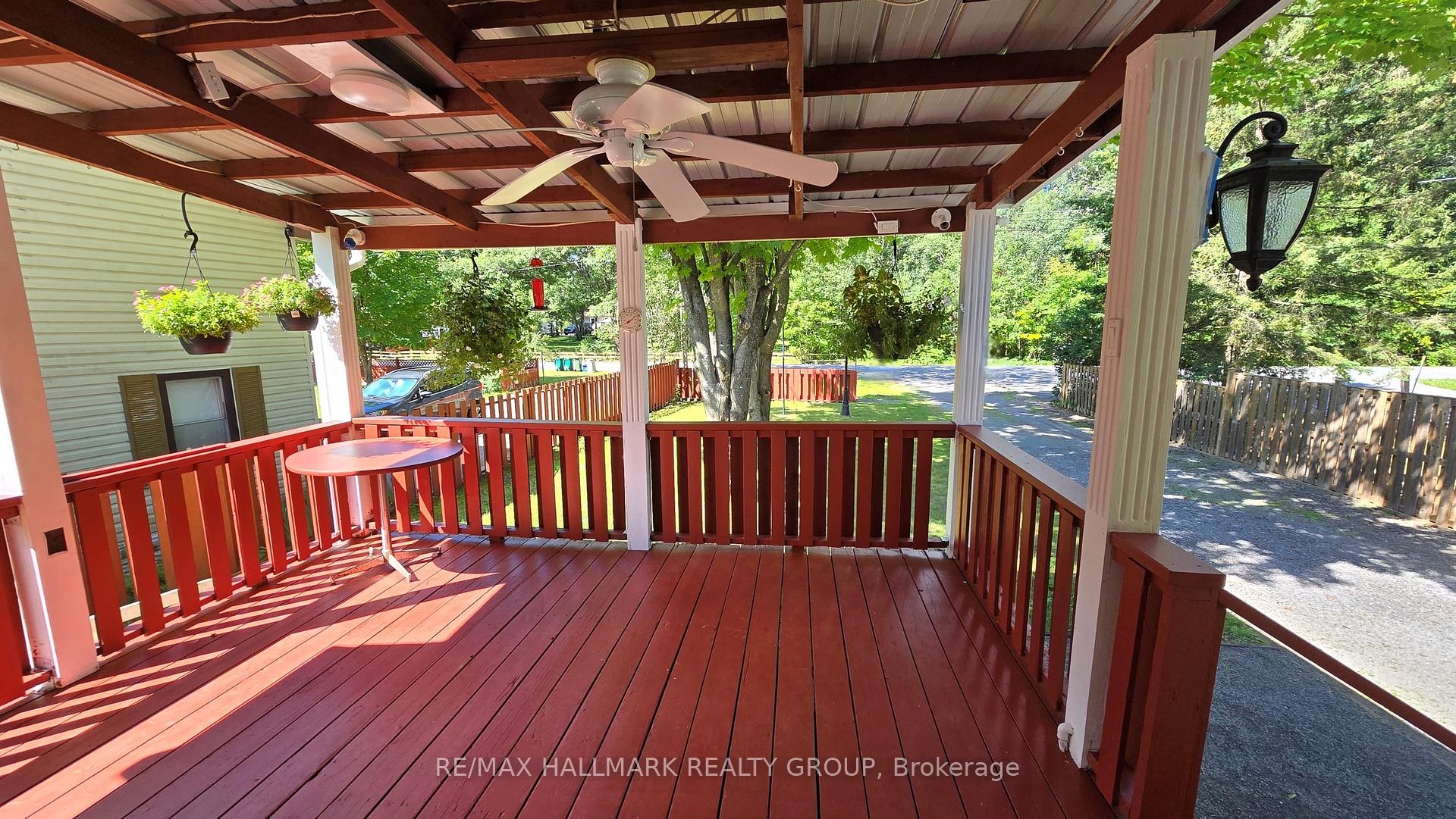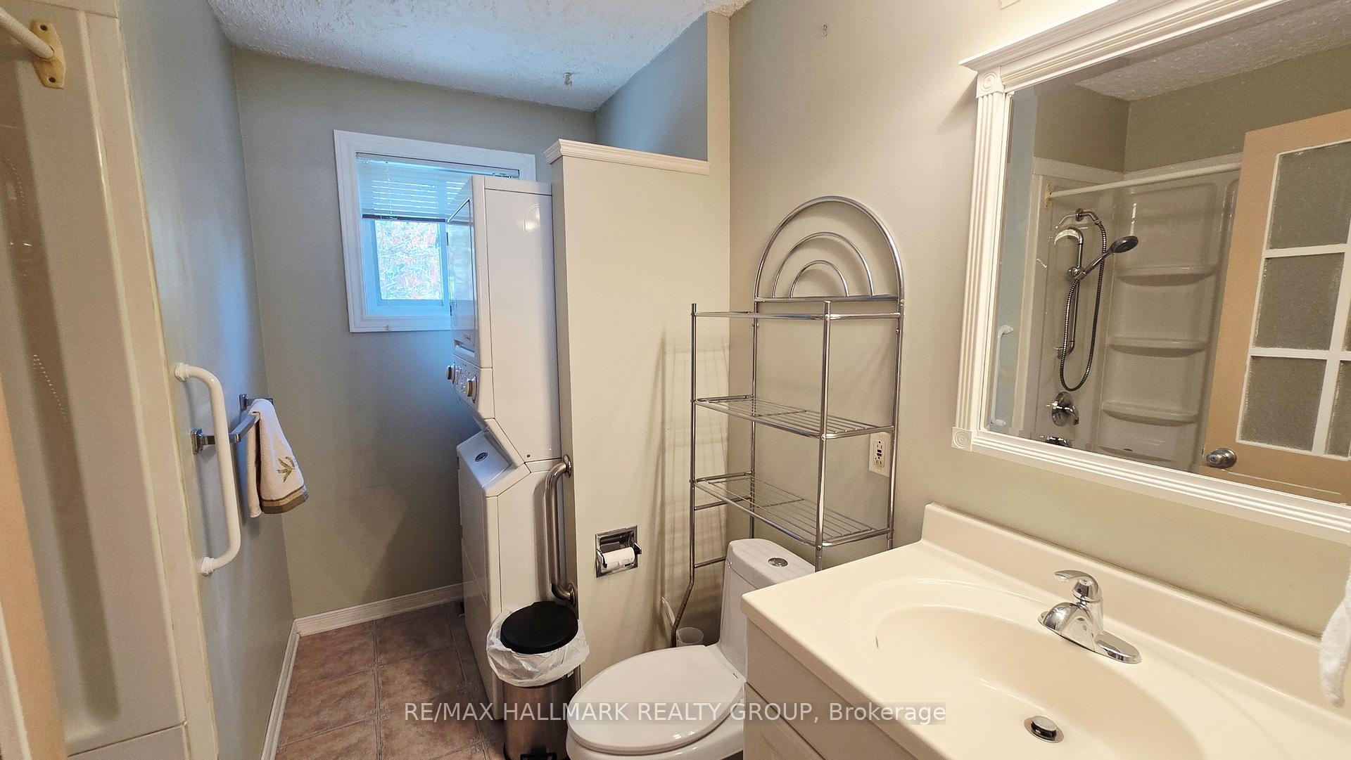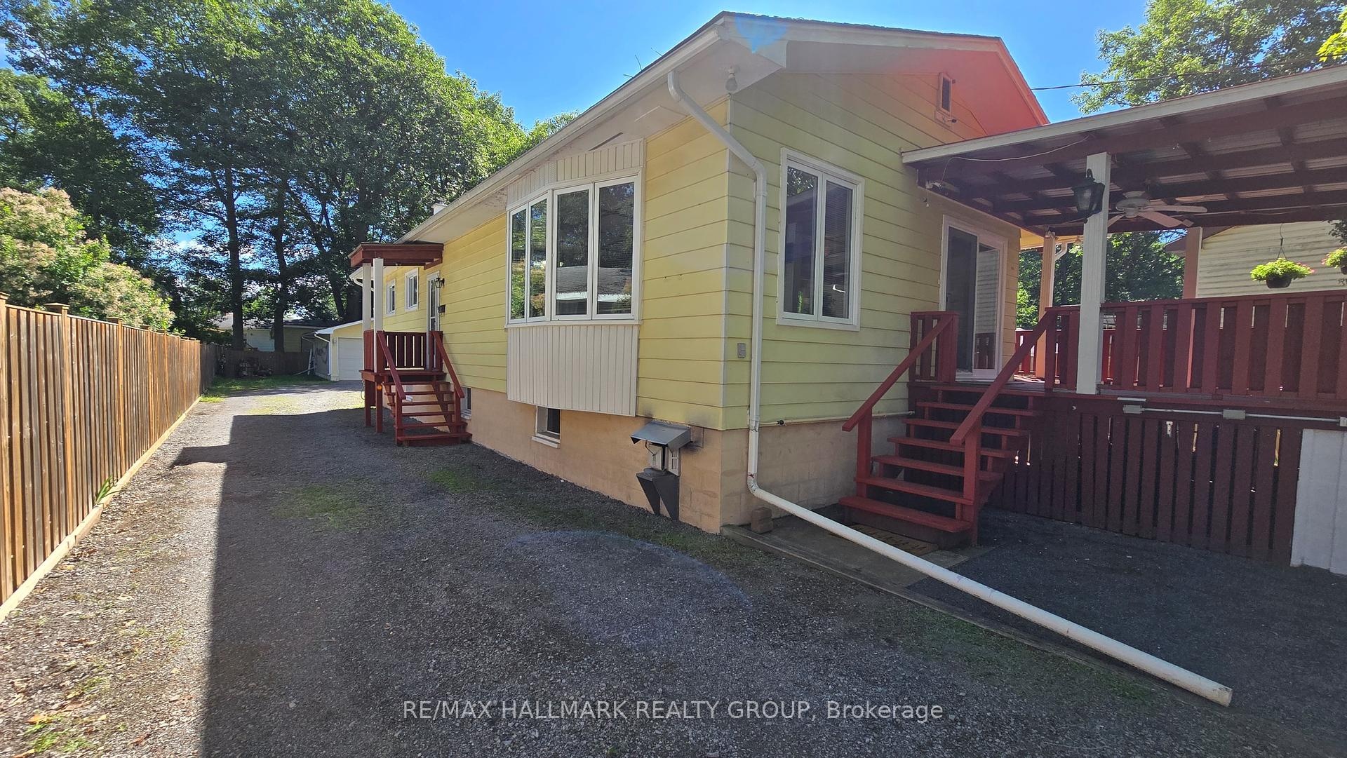 Must be Seen! Nestled on a quiet street, this absolutely, delightful 2 Bedroom, 1.5 Bath Bungalow is situated on a beautiful 42 x 219 lot just steps from Augers Beach & Torbolton Forest trails! The property features a detached 20 x 24 garage, 16 x 12 detached workshop & a 12 x 13 shed all with electricity ideal for hobbyists. Relax on the covered front porch that wraps around to another side deck with a ramp to the front yard plus steps down to access the back yard. Enjoy exceptional privacy with generous yard space and a pretty back patio creating the perfect outdoor sanctuary. Inside, this deceivingly spacious & charming home is a great layout complete with easy care laminate flooring on the main level. The Living Room has patio doors to the inviting covered deck plus a stunning bow window fills the space with natural light. The well-equipped kitchen spoils the cook with lots of cupboard and counter space and overlooks the Living Room with a handy pass through to the Dining Room. The 3 piece bath has a walk-in shower with built-in bench and a handy laundry area with stackable wash & dryer so all your needs are on the main level. Both, the Primary & Second Bedrooms are large having closets equipped with lighting. The Basement has a separate access to the backyard, a Napolean natural gas fireplace, a 2 piece bathroom, storage room, another laundry area plus a cedar closet. Updated with vinyl windows on main level & the patio door has built-in blinds. Natural gas furnace & hot water tank 2014 approx. House & roof shingles approx. 9 years old. Note this home is equipped with a Generac & central air. Come take a look at this truly incredible home & property! $$$$ Basement waterproofing work completed September 2025 with new weeping tile & sump pump system.
