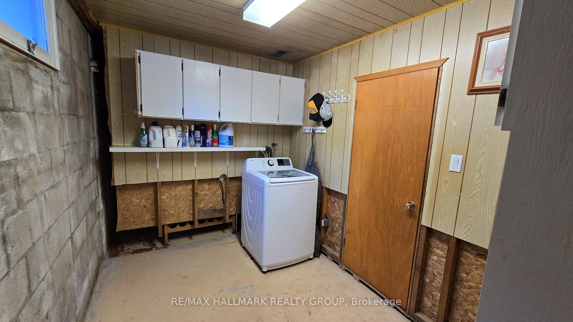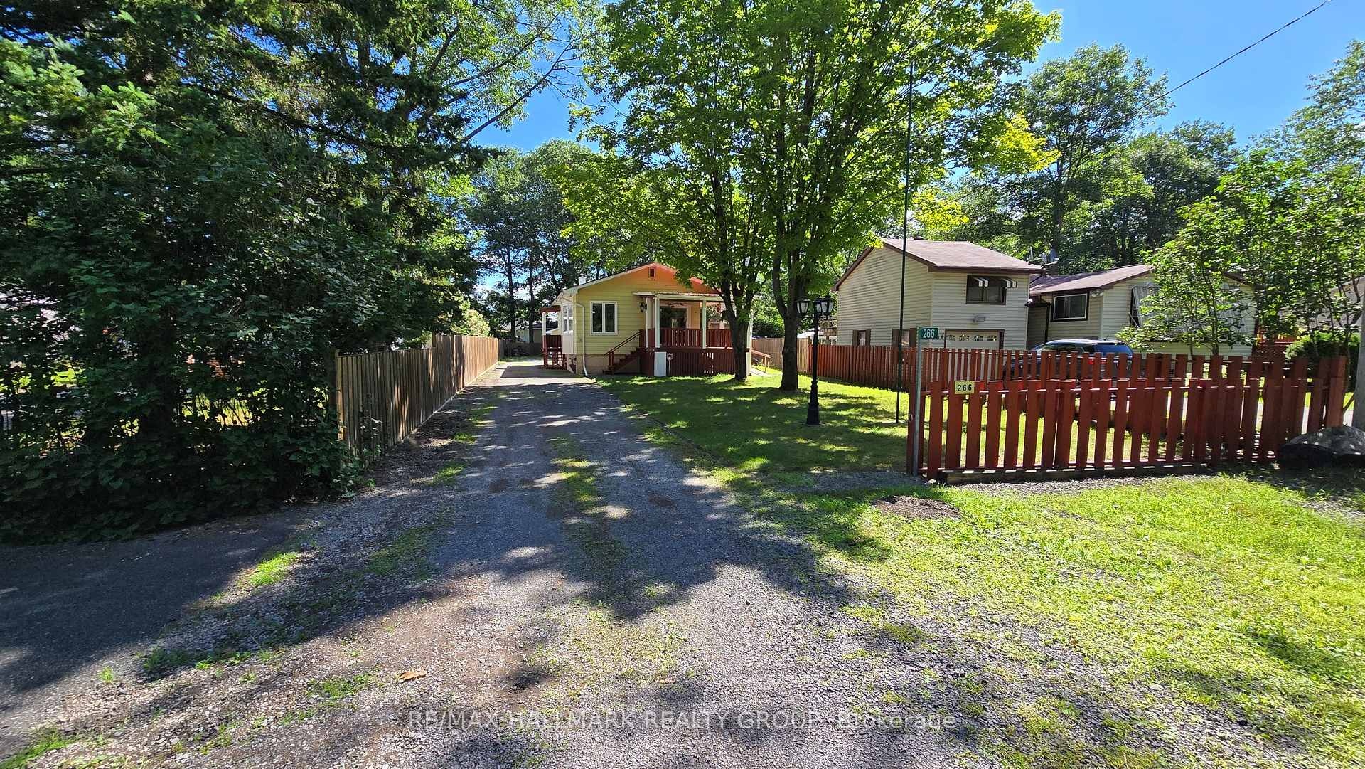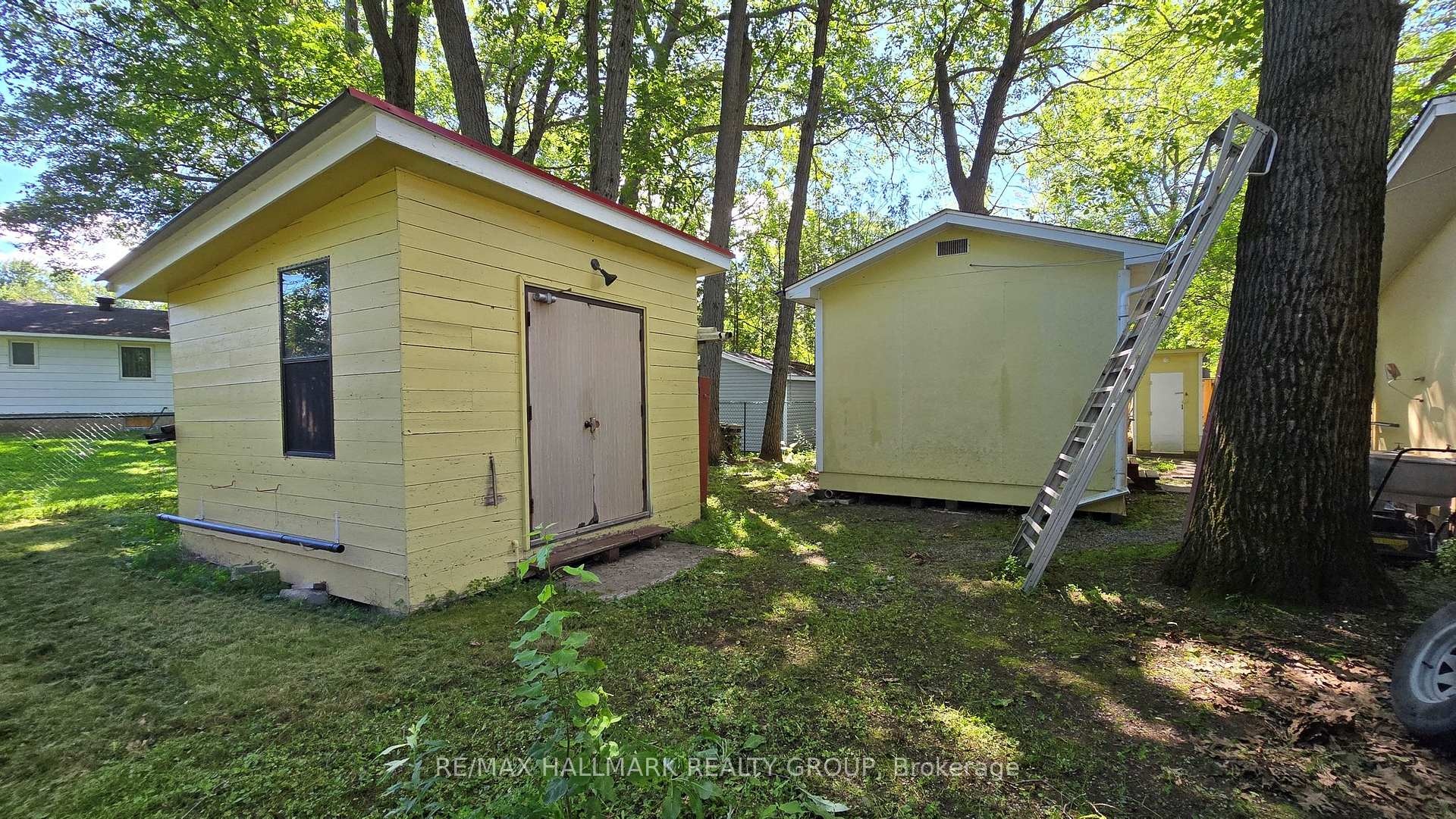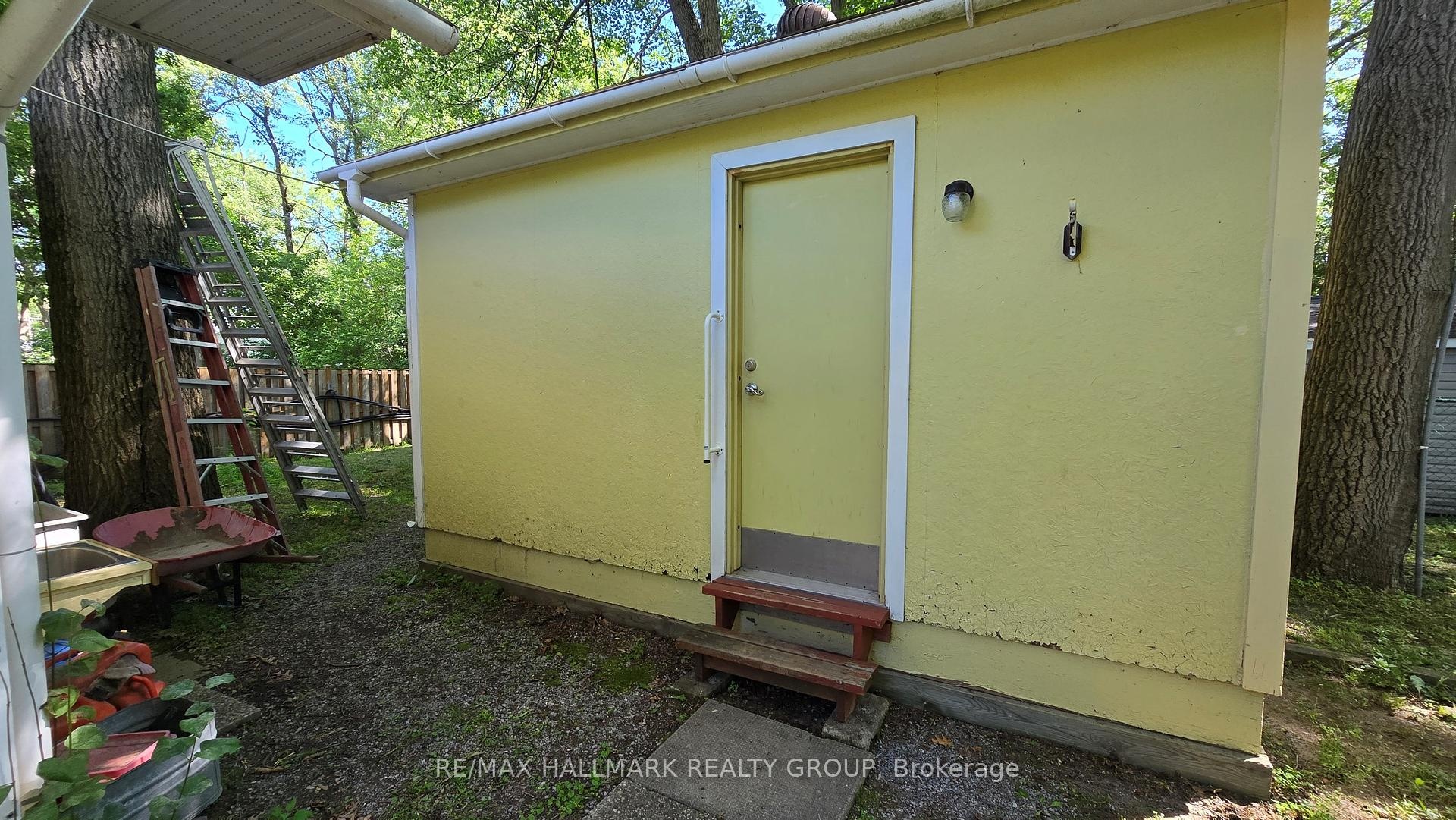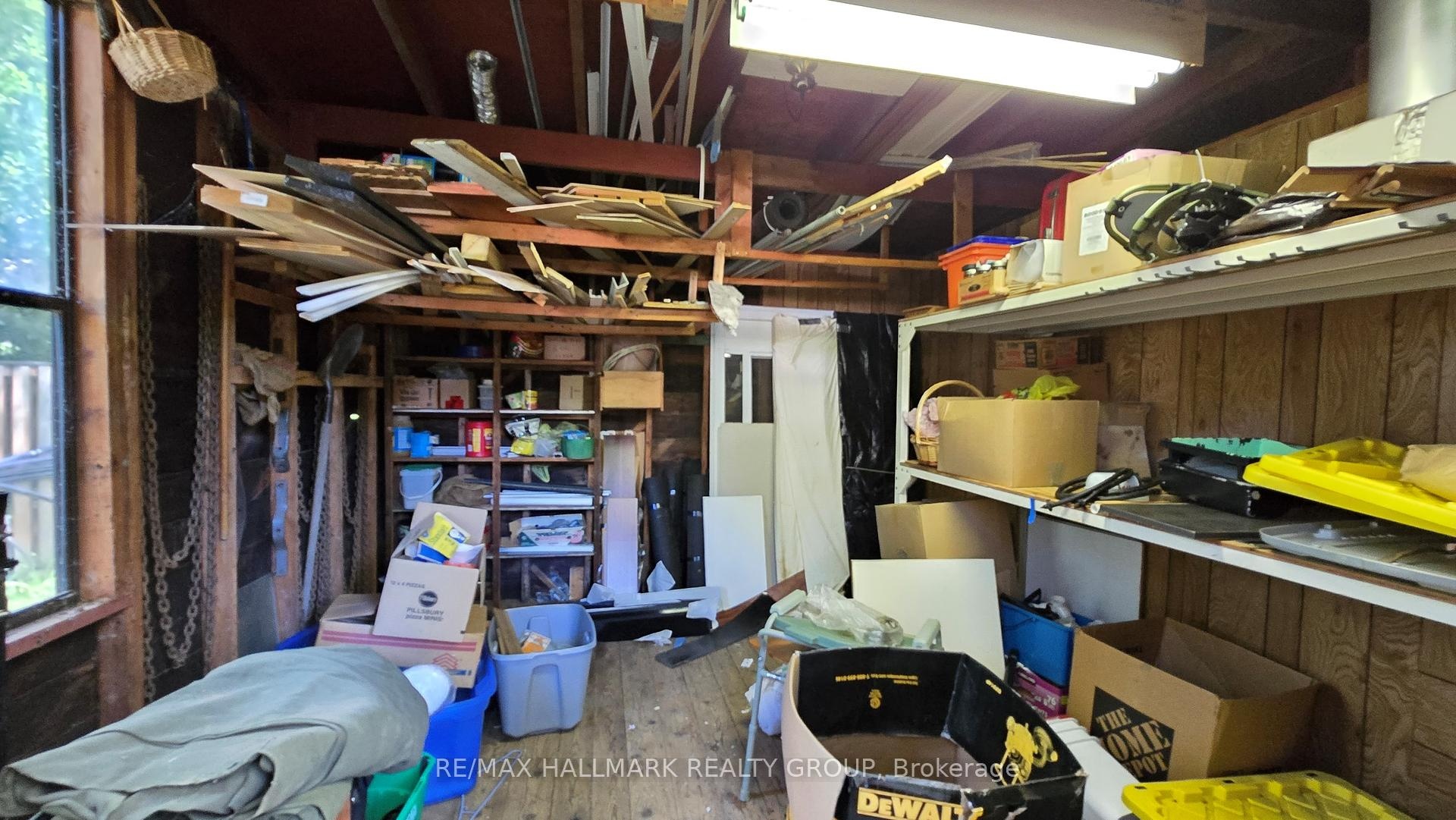Must be Seen! Nestled on a quiet street, this absolutely, delightful 2 Bedroom, 1.5 Bath Bungalow is situated on a beautiful 42 x 219 lot just steps from Augers Beach & Torbolton Forest trails! The property features a detached 20 x 24 garage, 16 x 12 detached workshop & a 12 x 13 shed all with electricity ideal for hobbyists. Relax on the covered front porch that wraps around to another side deck with a ramp to the front yard plus steps down to access the back yard. Enjoy exceptional privacy with generous yard space and a pretty back patio creating the perfect outdoor sanctuary. Inside, this deceivingly spacious & charming home is a great layout complete with easy care laminate flooring on the main level. The Living Room has patio doors to the inviting covered deck plus a stunning bow window fills the space with natural light. The well-equipped kitchen spoils the cook with lots of cupboard and counter space and overlooks the Living Room with a handy pass through to the Dining Room. The 3 piece bath has a walk-in shower with built-in bench and a handy laundry area with stackable wash & dryer so all your needs are on the main level. Both, the Primary & Second Bedrooms are large having closets equipped with lighting. The Basement has a separate access to the backyard, a Napolean natural gas fireplace, a 2 piece bathroom, storage room, another laundry area plus a cedar closet. Updated with vinyl windows on main level & the patio door has built-in blinds. Natural gas furnace & hot water tank 2014 approx. House & roof shingles approx. 9 years old. Note this home is equipped with a Generac & central air. Come take a look at this truly incredible home & property! $$$$ Basement waterproofing work completed September 2025 with new weeping tile & sump pump system.
