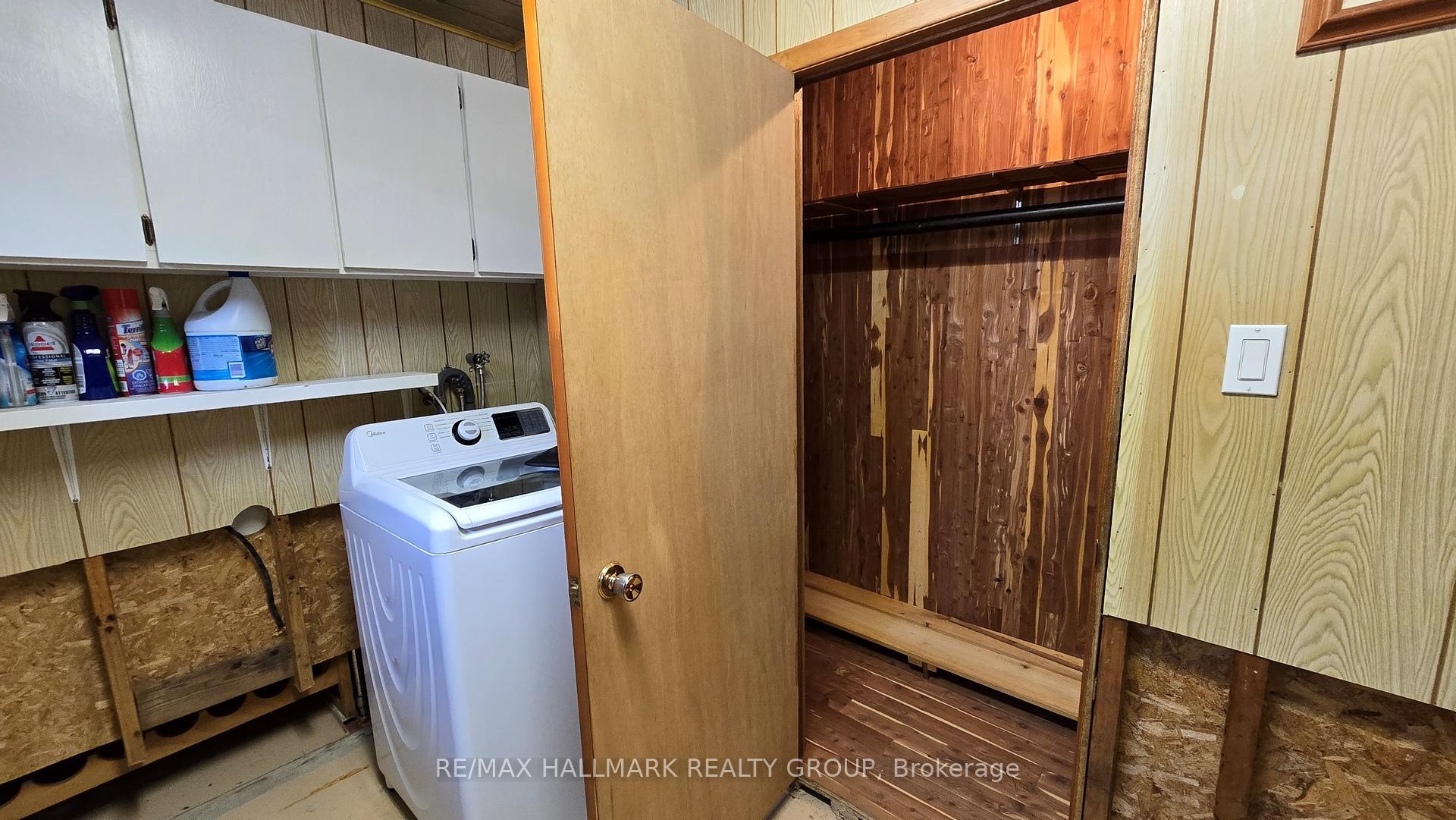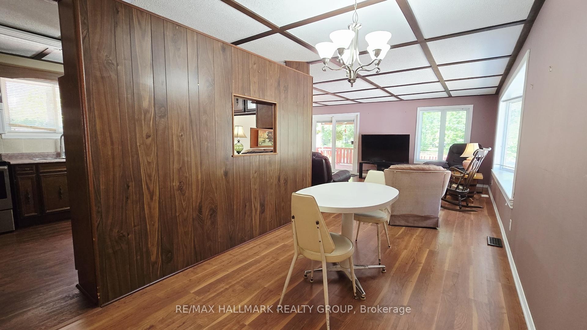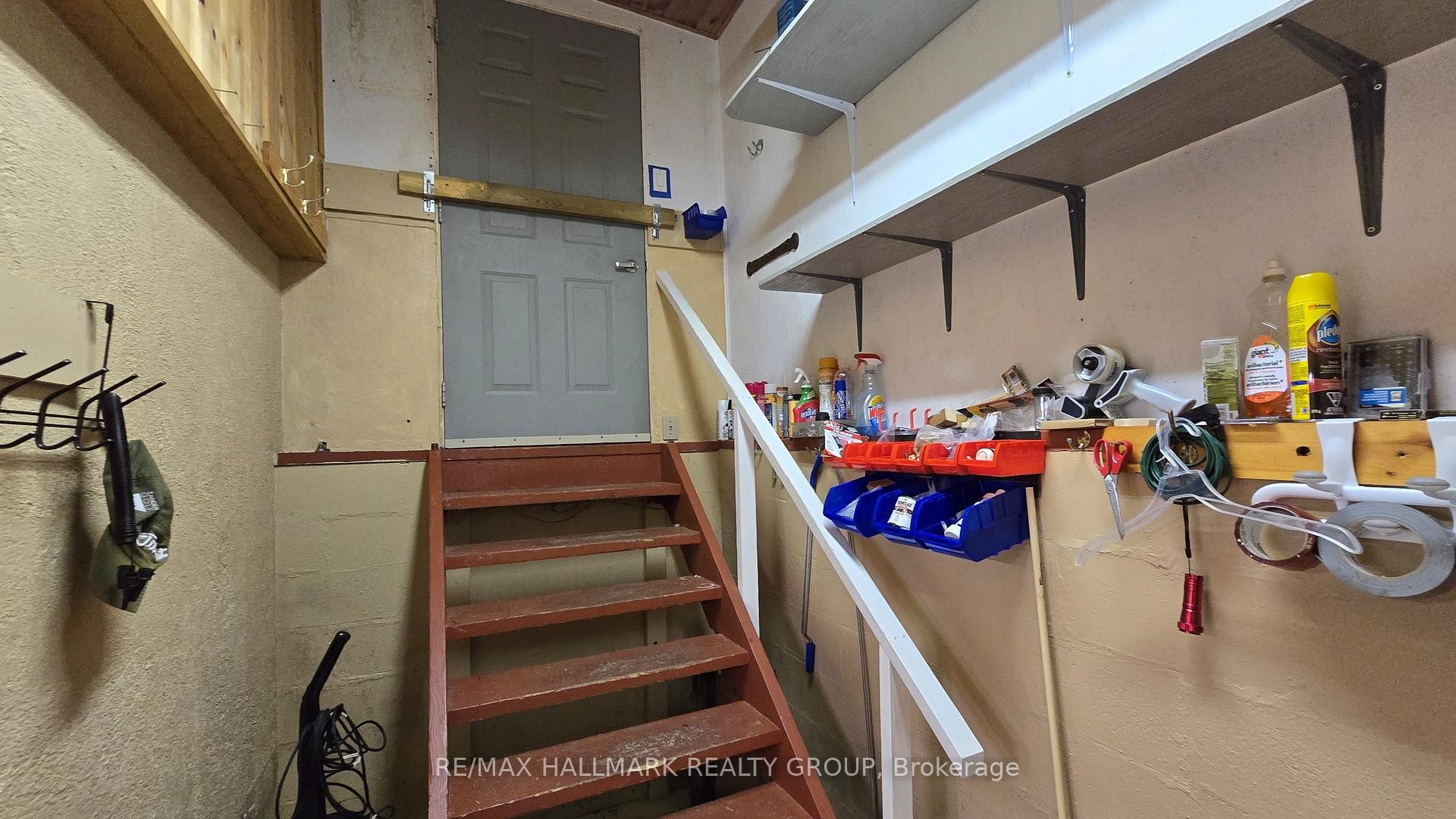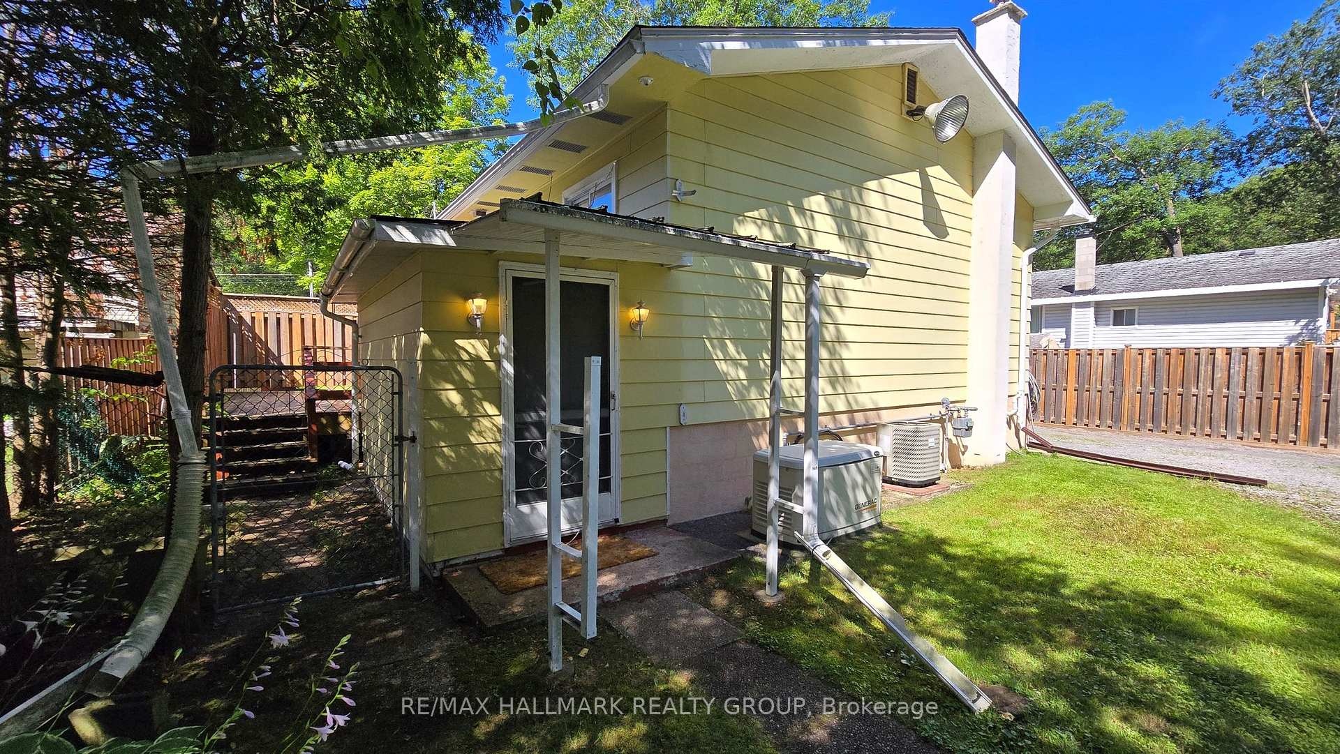 Must be Seen! Nestled on a quiet street, this absolutely, delightful 2 Bedroom, 1.5 Bath Bungalow is situated on a beautiful 42 x 219 lot just steps from Augers Beach & Torbolton Forest trails! The property features a detached 20 x 24 garage, 16 x 12 detached workshop & a 12 x 13 shed all with electricity ideal for hobbyists. Relax on the covered front porch that wraps around to another side deck with a ramp to the front yard plus steps down to access the back yard. Enjoy exceptional privacy with generous yard space and a pretty back patio creating the perfect outdoor sanctuary. Inside, this deceivingly spacious & charming home is a great layout complete with easy care laminate flooring on the main level. The Living Room has patio doors to the inviting covered deck plus a stunning bow window fills the space with natural light. The well-equipped kitchen spoils the cook with lots of cupboard and counter space and overlooks the Living Room with a handy pass through to the Dining Room. The 3 piece bath has a walk-in shower with built-in bench and a handy laundry area with stackable wash & dryer so all your needs are on the main level. Both, the Primary & Second Bedrooms are large having closets equipped with lighting. The Basement has a separate access to the backyard, a Napolean natural gas fireplace, a 2 piece bathroom, storage room, another laundry area plus a cedar closet. Updated with vinyl windows on main level & the patio door has built-in blinds. Natural gas furnace & hot water tank 2014 approx. House & roof shingles approx. 9 years old. Note this home is equipped with a Generac & central air. Come take a look at this truly incredible home & property! $$$$ Basement waterproofing work completed September 2025 with new weeping tile & sump pump system.