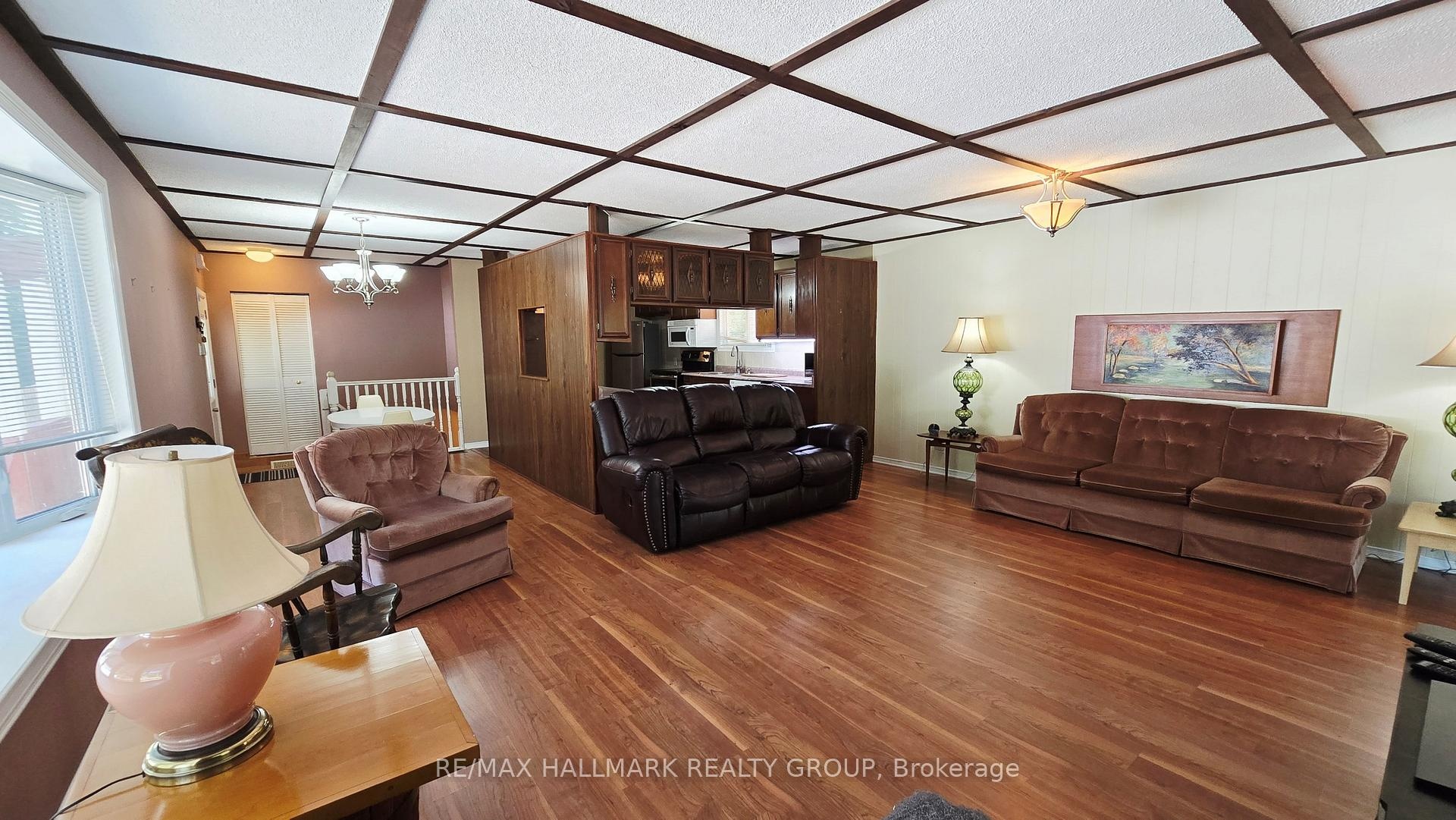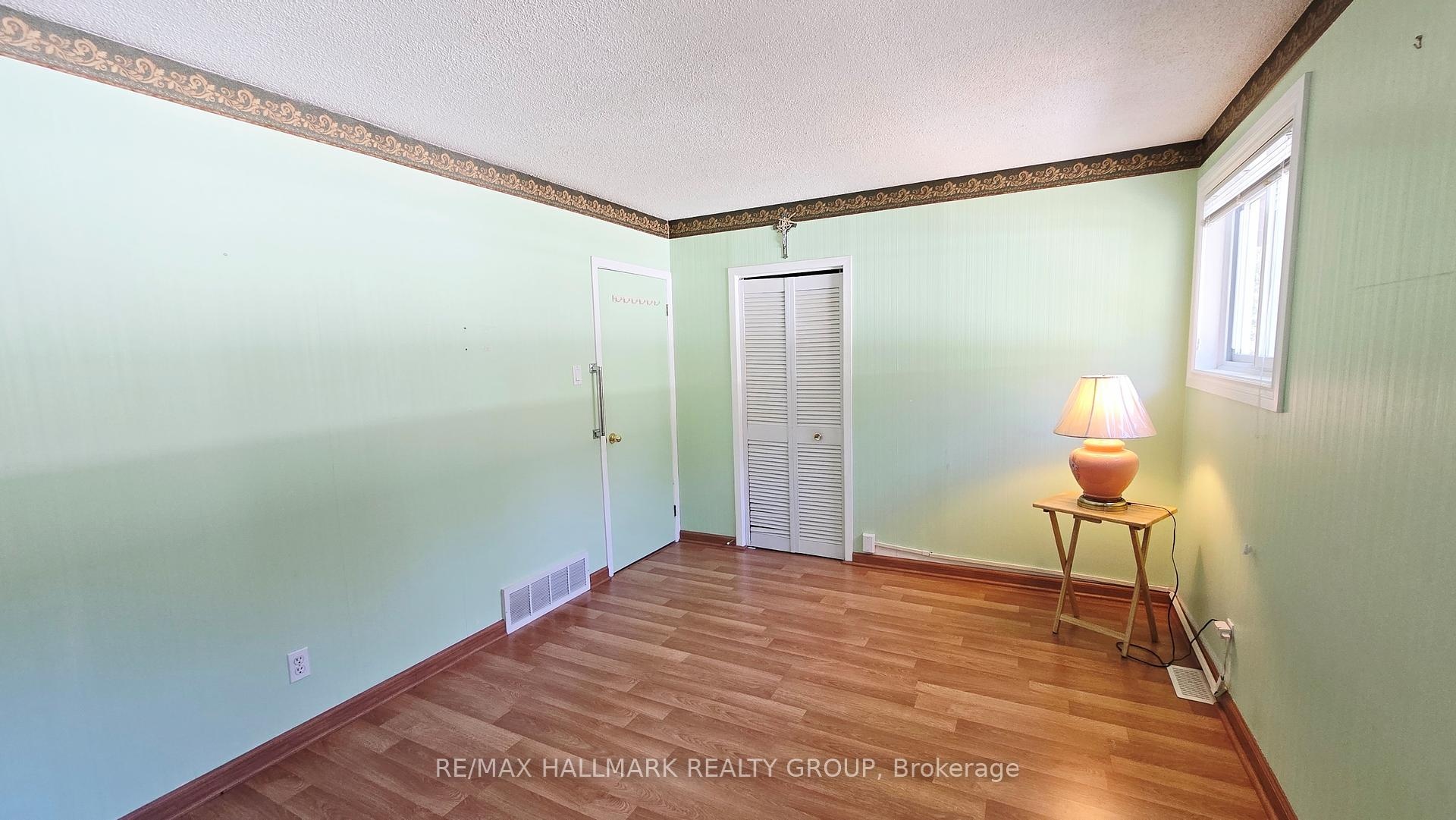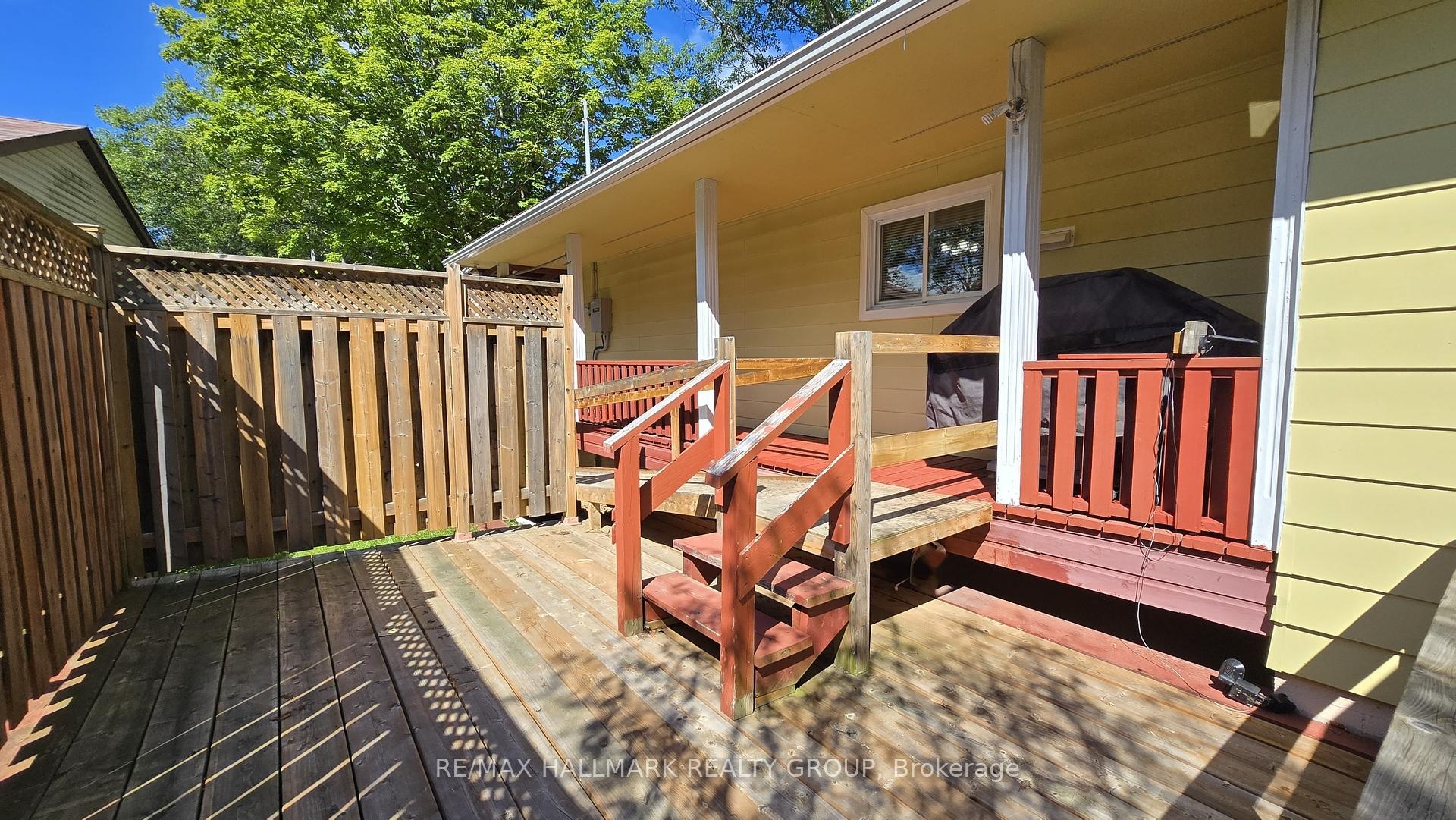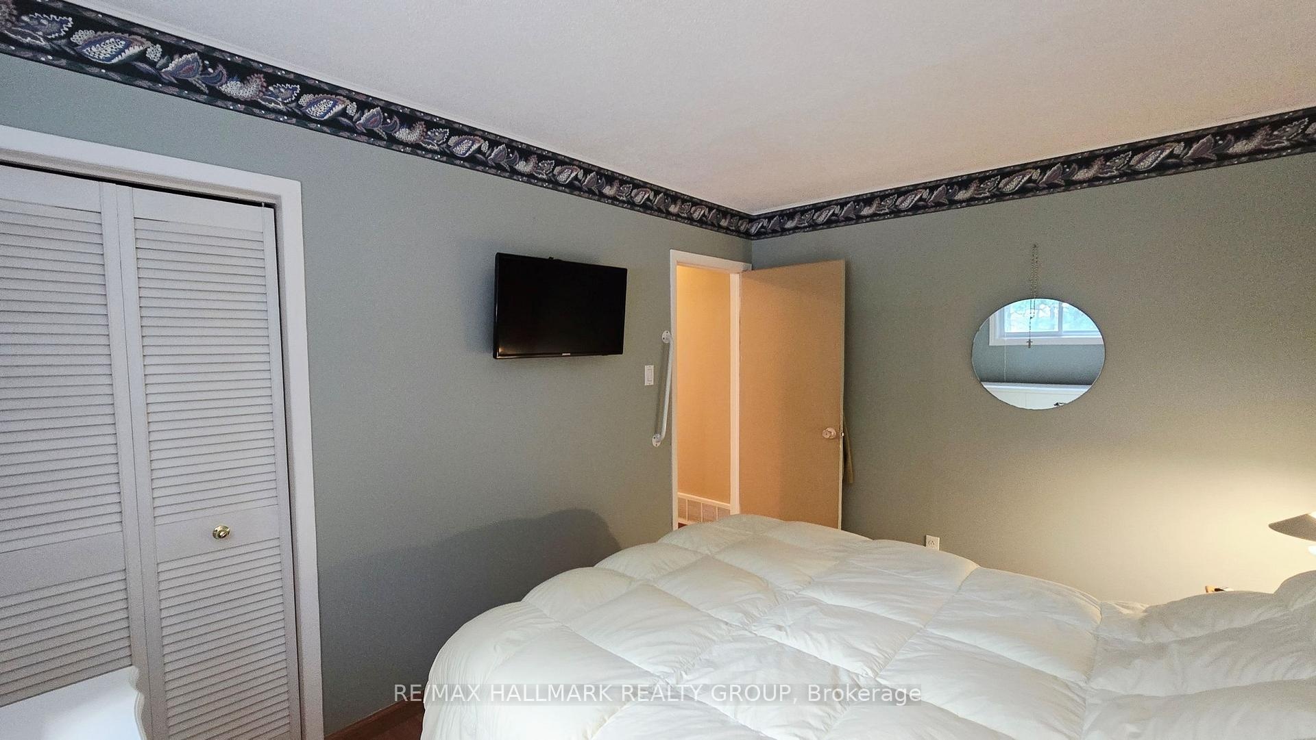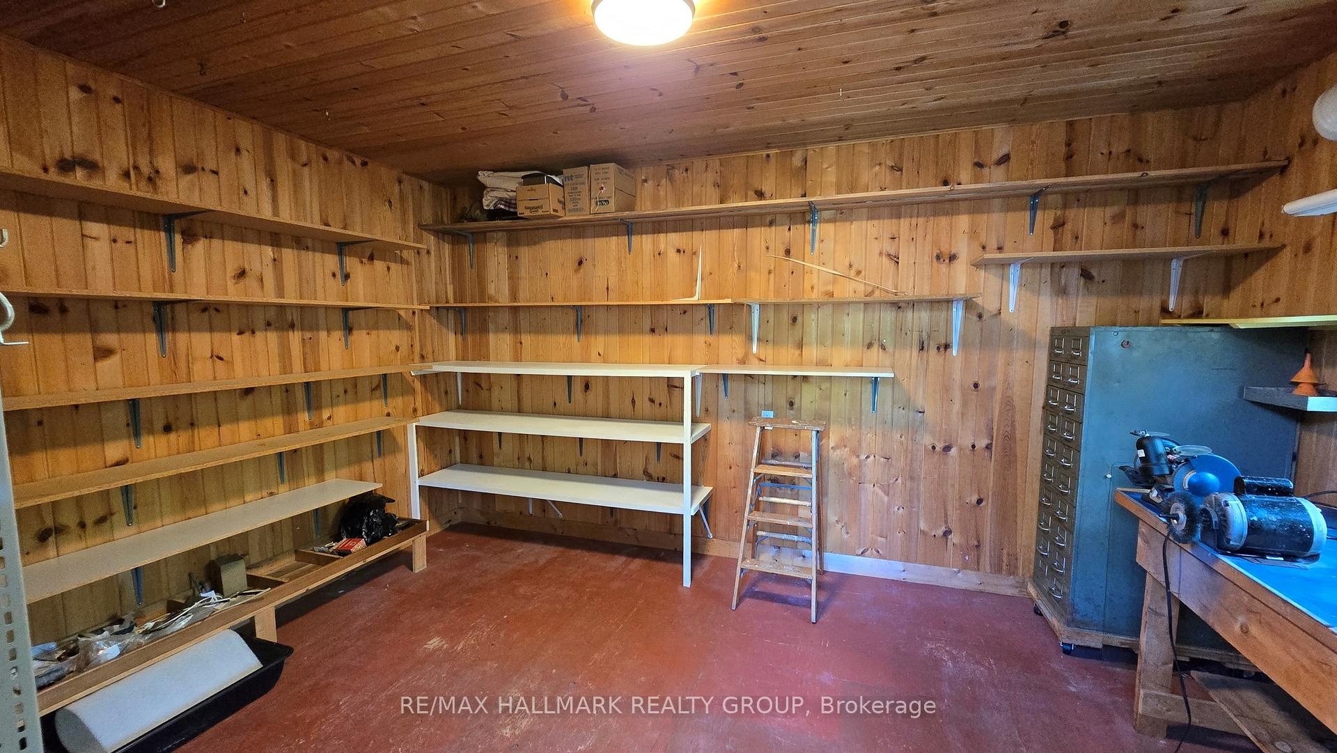Must be Seen! Nestled on a quiet street, this absolutely, delightful 2 Bedroom, 1.5 Bath Bungalow is situated on a beautiful 42 x 219 lot just steps from Augers Beach & Torbolton Forest trails! The property features a detached 20 x 24 garage, 16 x 12 detached workshop & a 12 x 13 shed all with electricity ideal for hobbyists. Relax on the covered front porch that wraps around to another side deck with a ramp to the front yard plus steps down to access the back yard. Enjoy exceptional privacy with generous yard space and a pretty back patio creating the perfect outdoor sanctuary. Inside, this deceivingly spacious & charming home is a great layout complete with easy care laminate flooring on the main level. The Living Room has patio doors to the inviting covered deck plus a stunning bow window fills the space with natural light. The well-equipped kitchen spoils the cook with lots of cupboard and counter space and overlooks the Living Room with a handy pass through to the Dining Room. The 3 piece bath has a walk-in shower with built-in bench and a handy laundry area with stackable wash & dryer so all your needs are on the main level. Both, the Primary & Second Bedrooms are large having closets equipped with lighting. The Basement has a separate access to the backyard, a Napolean natural gas fireplace, a 2 piece bathroom, storage room, another laundry area plus a cedar closet. Updated with vinyl windows on main level & the patio door has built-in blinds. Natural gas furnace & hot water tank 2014 approx. House & roof shingles approx. 9 years old. Note this home is equipped with a Generac & central air. Come take a look at this truly incredible home & property! $$$$ Basement waterproofing work completed September 2025 with new weeping tile & sump pump system.