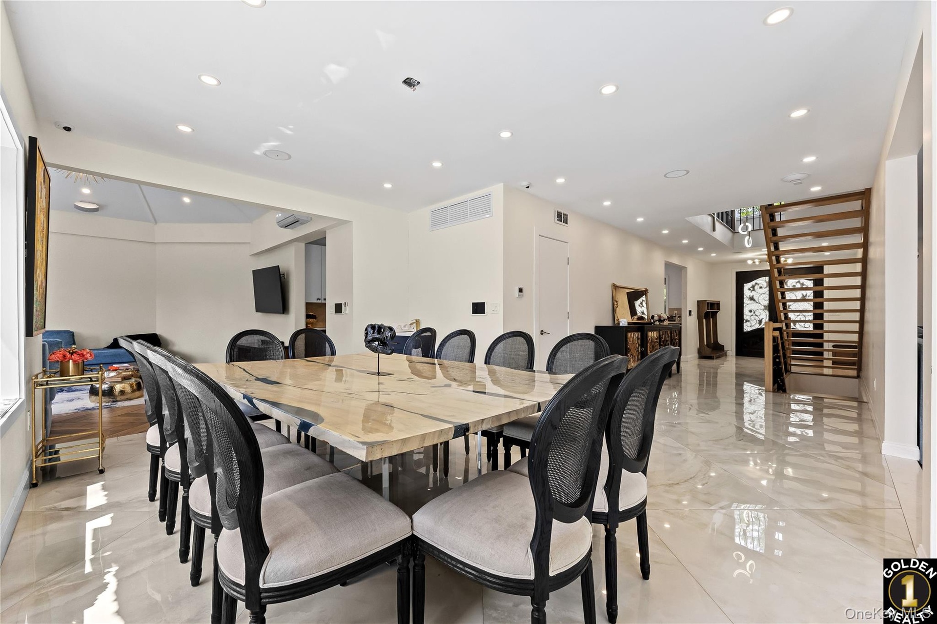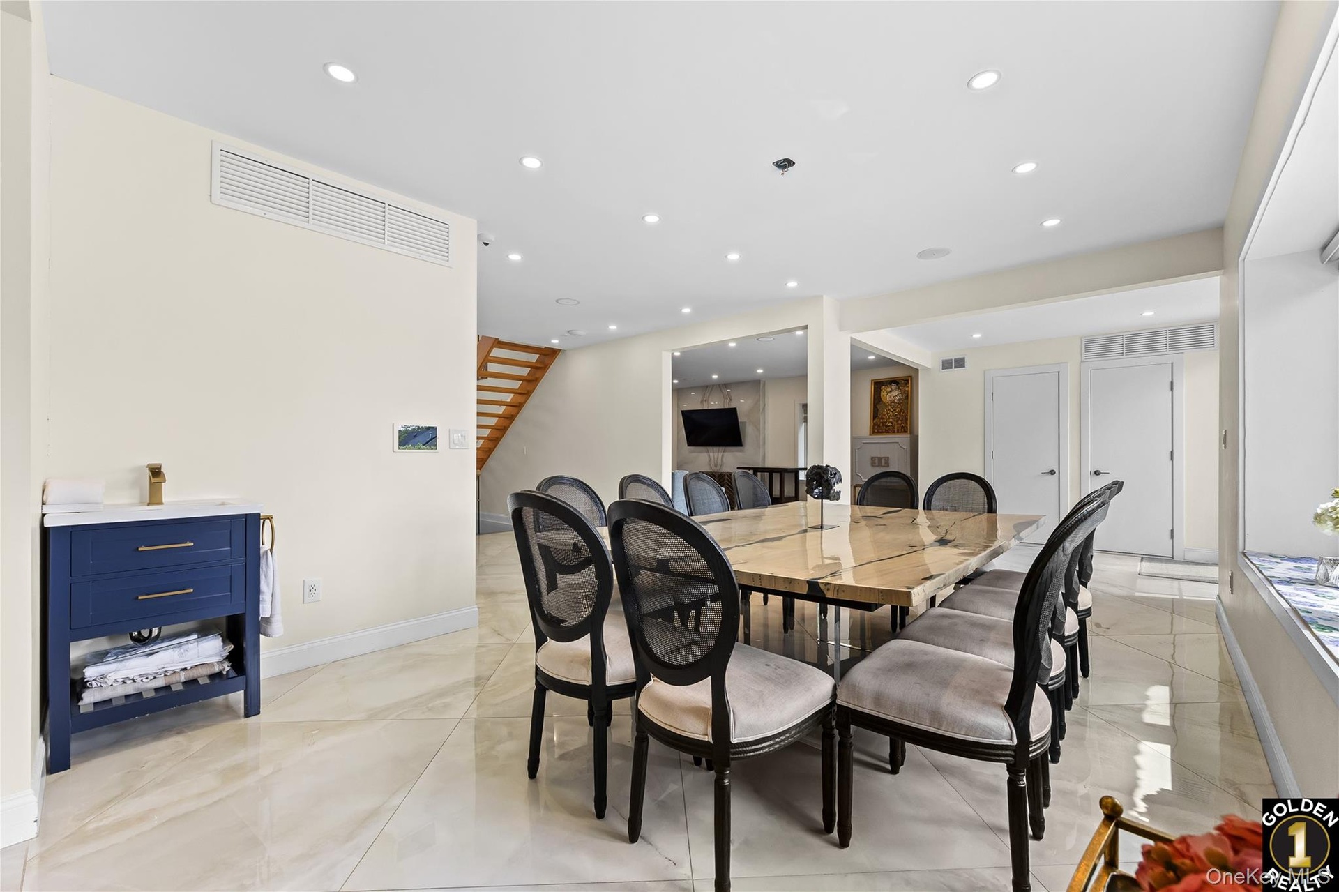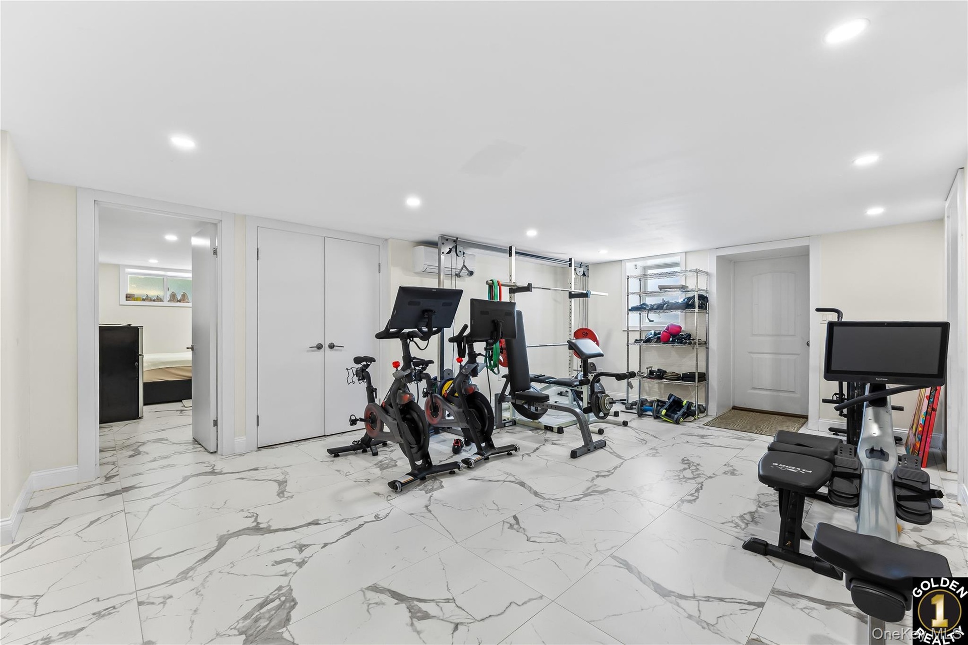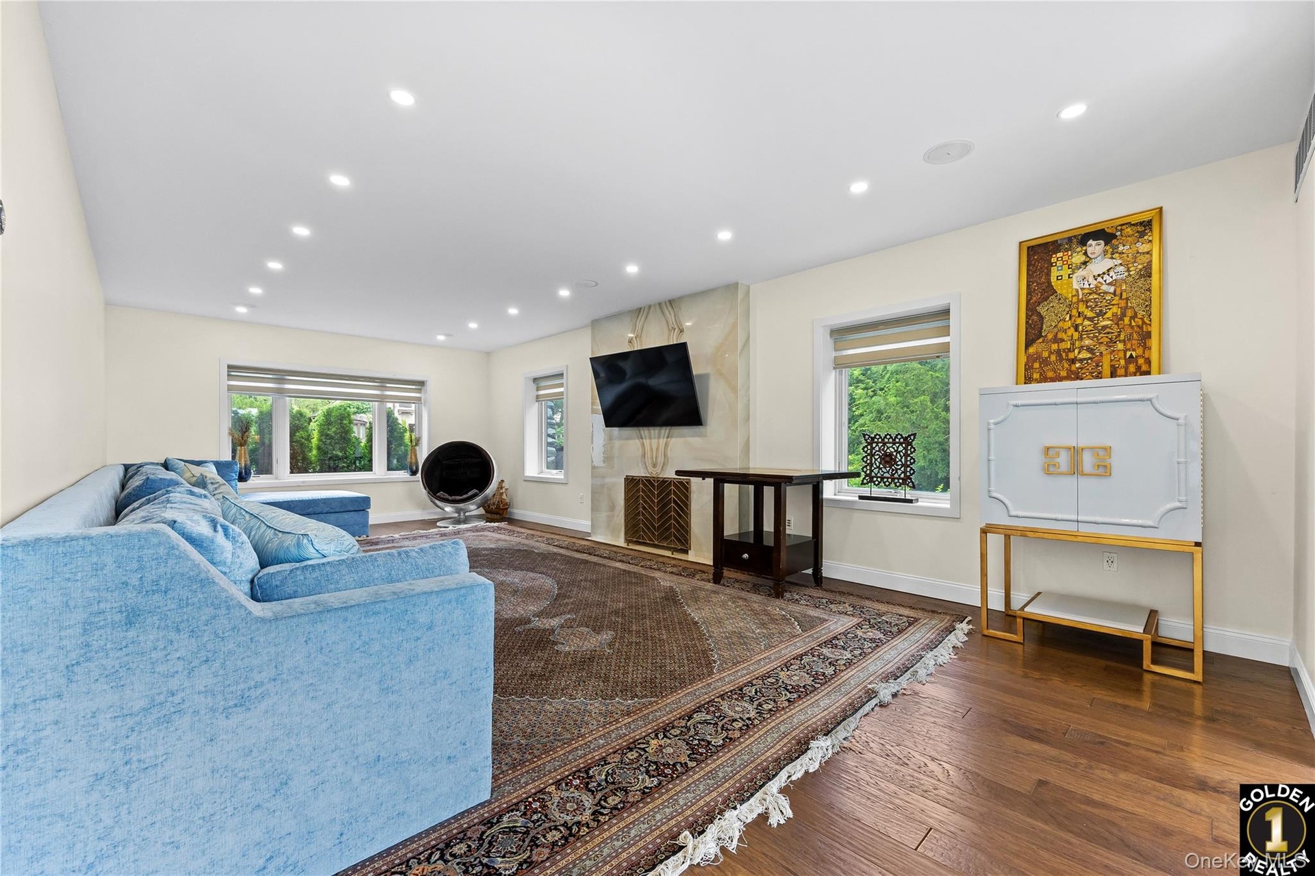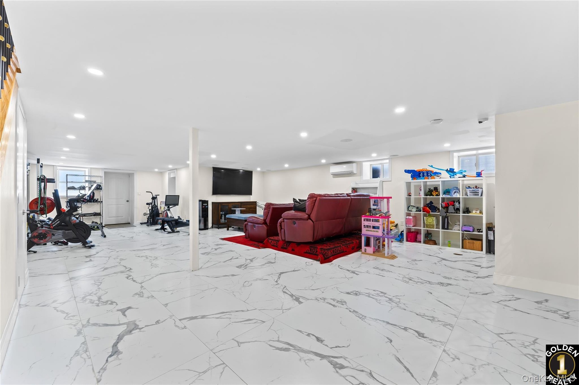 - Living area Lower Level with recessed lighting, marble finish floors, and plenty of natural light