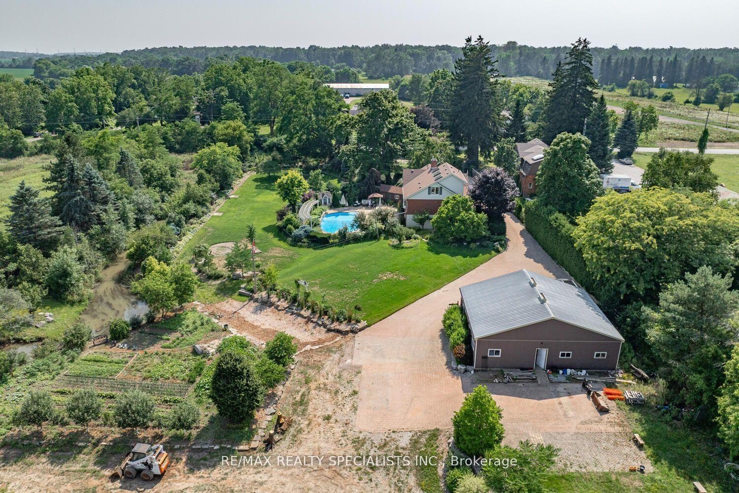 Strategic Buy Meets Lifestyle Dream: Paradise Found at 5189 8th Line - only 4 km from Eglinton/Winston Churchill intersection. A rare opportunity to own a 10-acre hobby farm on the border of Mississauga where lifestyle, privacy, and future potential converge. This fully renovated, move-in-ready bungalow with loft and walkout lower level is immaculate and practical, offering main-floor living with soaring ceilings and seamless indoor-outdoor flow. Fertile sandy loam for crops. Surround yourself with beauty: 2 acres of professionally designed perennial gardens, whimsical sculptures, and breathtaking views. Swim in the 39' x 22' resort-style pool with waterfalls and oversized stone deck. Host unforgettable events with parking for 100+ vehicles. Raise animals, grow organic vegetables, pursue your passions, or simply enjoy the sweet aroma of flowers and birdsong on the breeze. The 40' x 32' barn with 10' double doors offers endless potential for hobbies, storage, or permitted home industry uses. Zoned A1, the property allows for: Agricultural operations Equestrian centres Home industry & home occupation Boarding kennel Horticultural use Cottage industry Cannabis production & processing Forestry use Detached dwelling Situated in Future Strategic Employment Lands, this location combines serenity today with strategic long-term value. Only 4 km to Winston Churchill & Eglinton, with easy access to shopping, health clinics, transit, community centres, and major highways. 5189 8th Line is where your dream life begins and your legacy grows. Live now. Work here. Grow equity. Own your future.