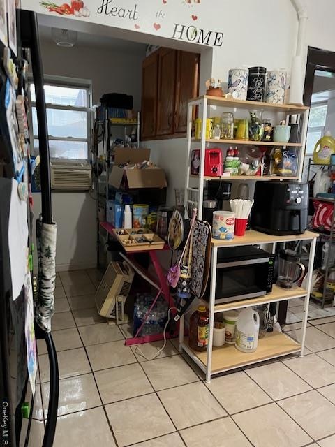 - Kitchen with refrigerator and light tile patterned floors