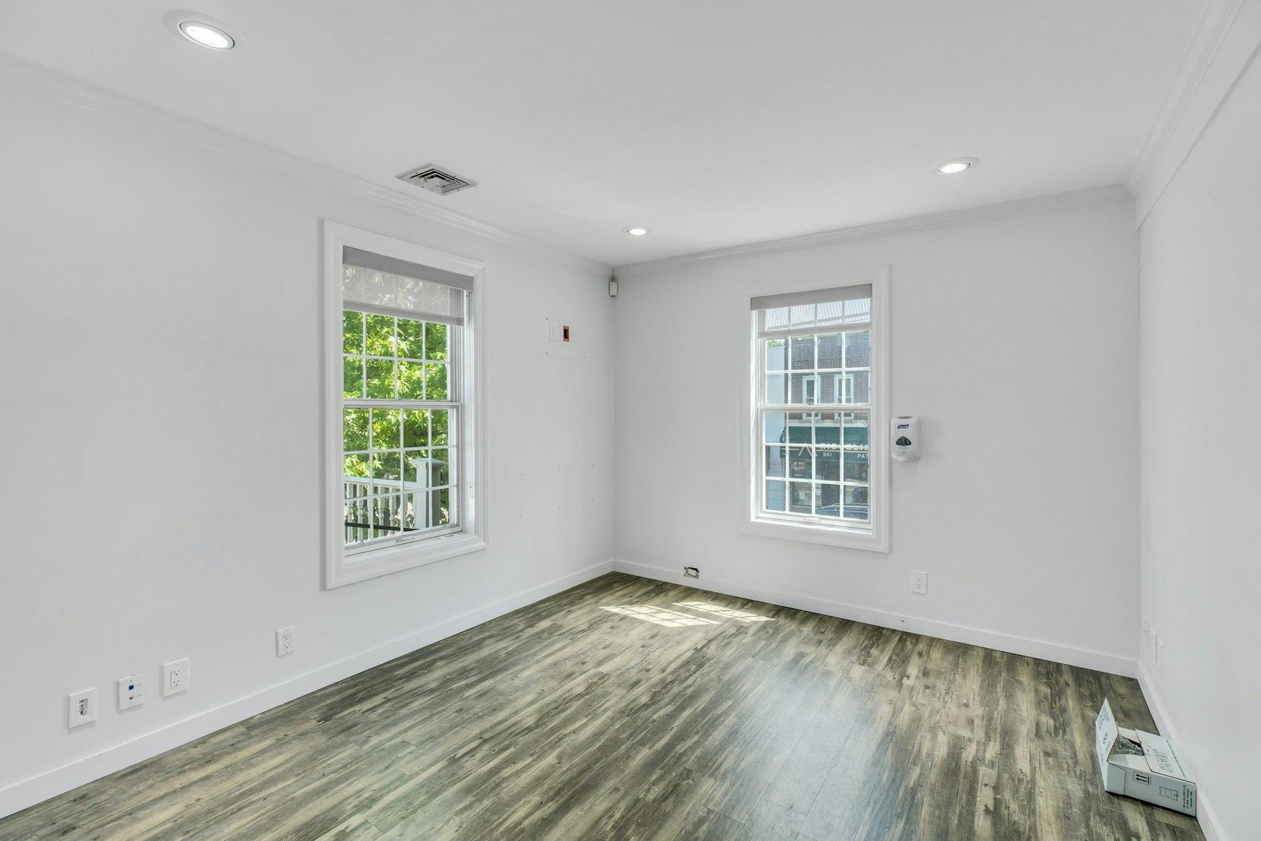 - Empty room with ornamental molding, healthy amount of natural light, wood finished floors, and recessed lighting
