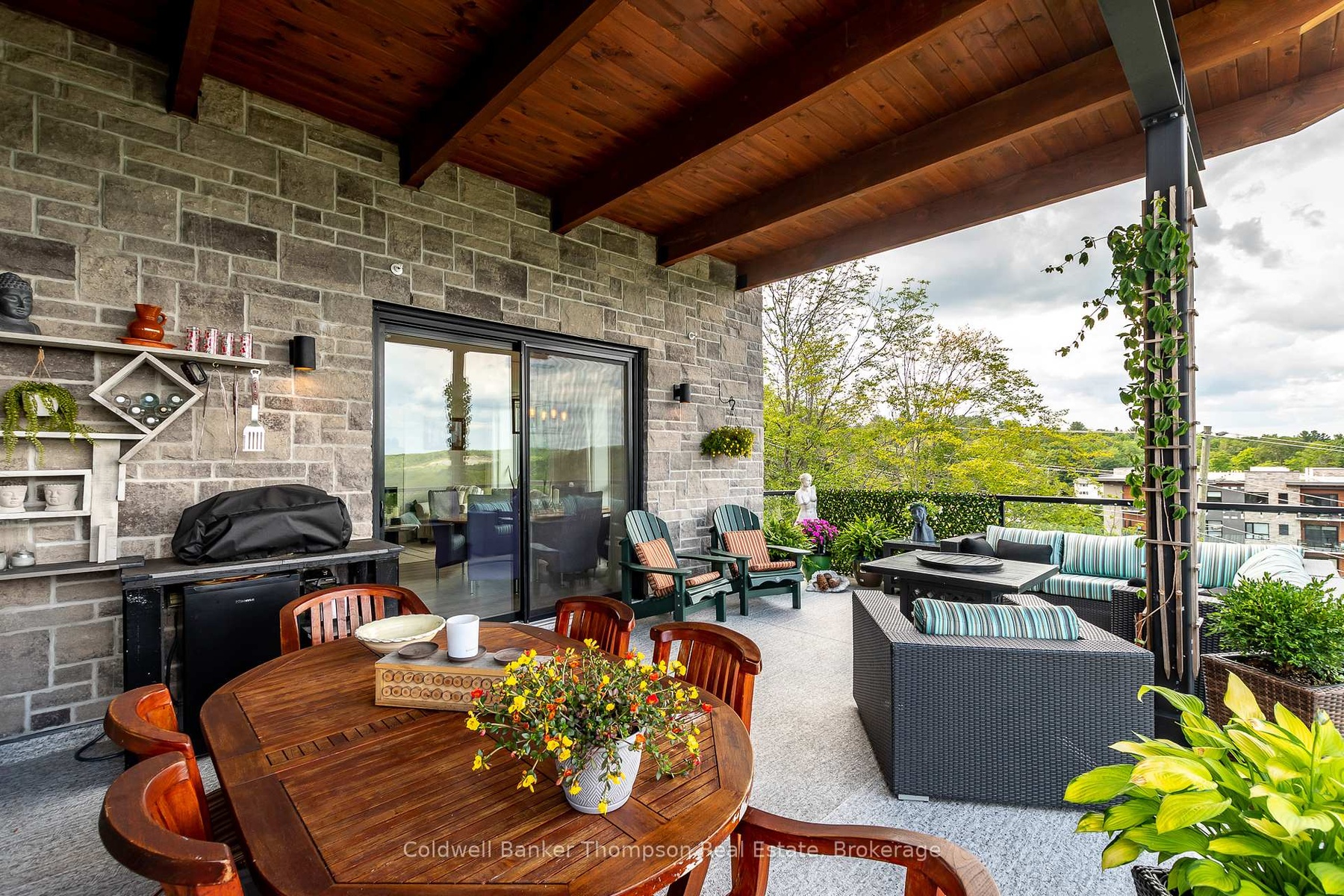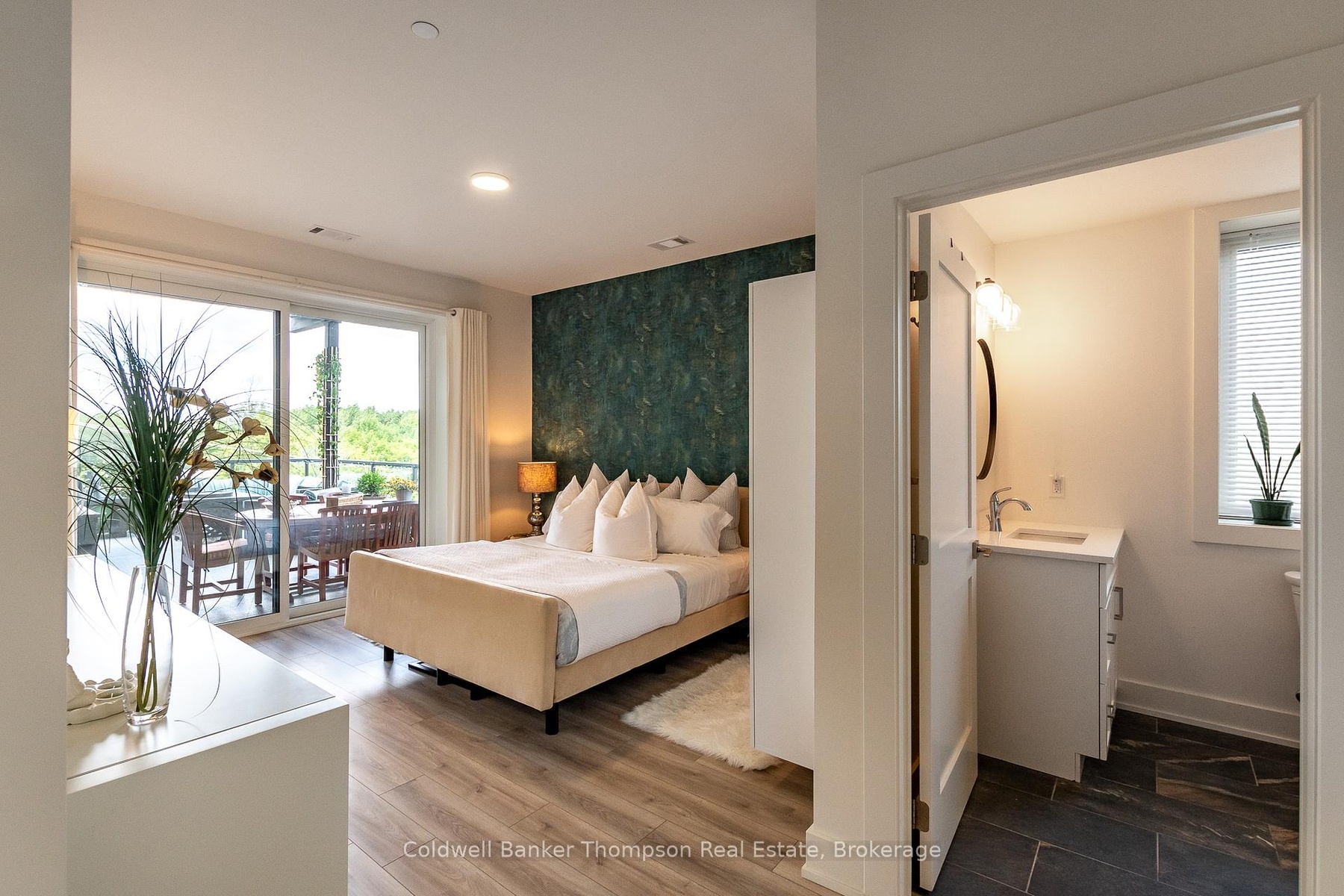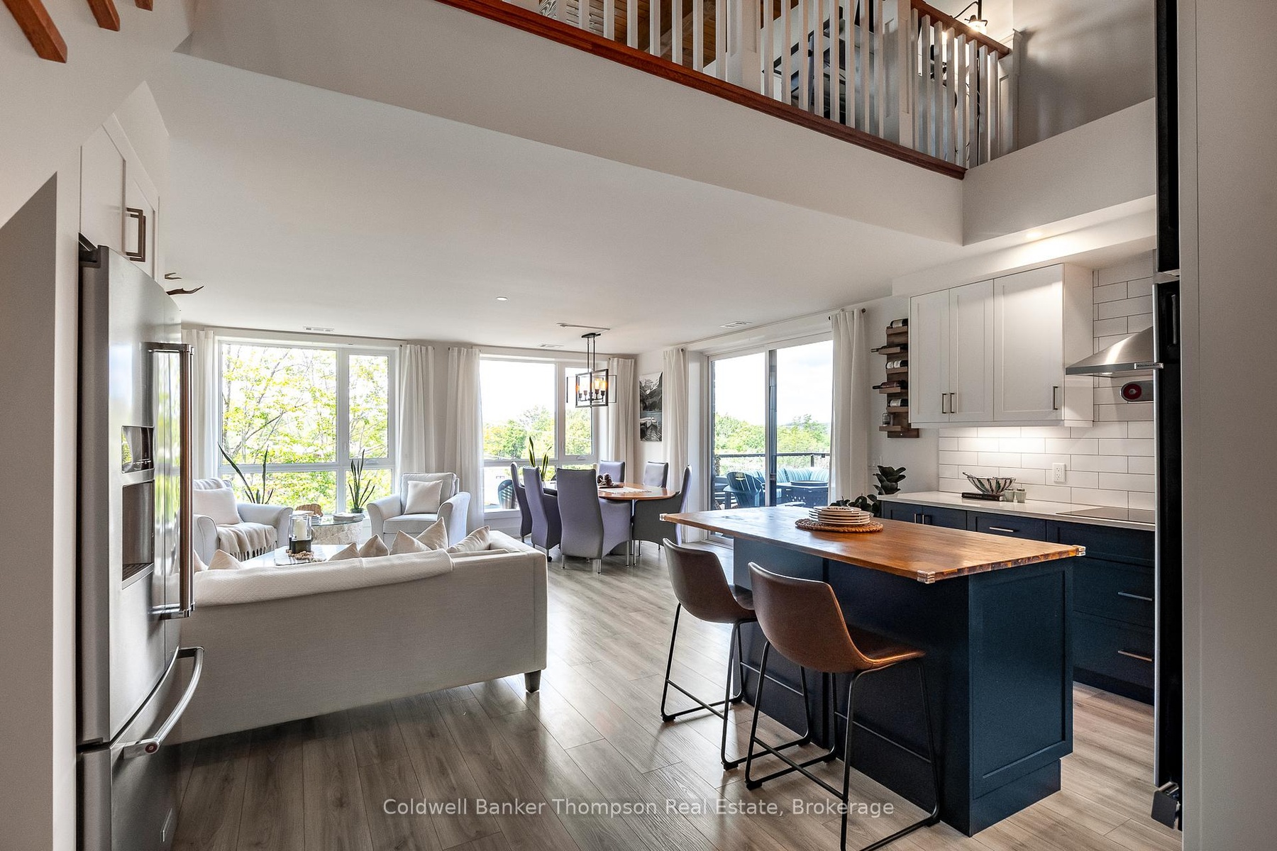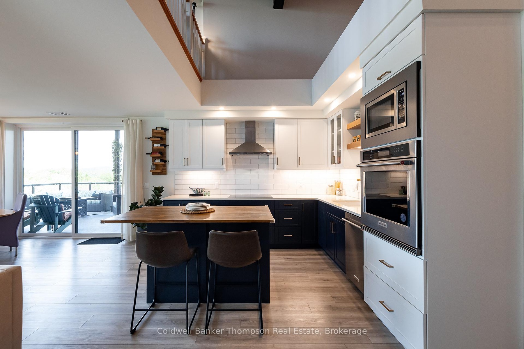 DescriptionWelcome to The Alexander, an architecturally striking condo building by Greystone (2022), built with ICF construction for enhanced efficiency. This sought-after corner penthouse is truly one of a kind, offering soaring ceilings, over 350 sq ft of bonus loft space, warm timber beam accents, and expansive architectural windows that flood the home with natural light. The loft offers incredible flexibility, ideal as a studio, office, guest space, or cozy retreat. The spacious foyer opens into an inviting open-concept kitchen, dining, and living area. Designed for both function and beauty, the chefs kitchen features quartz countertops, a generous island, built-in oven & microwave, induction cooktop, and a full suite of matching stainless appliances. The living room is anchored by an electric fireplace with shiplap detailing, while the dining area opens through oversized sliding doors to a nearly 400 sq ft private terrace. With lake views and a stunning display of foliage during the autumn, the terrace also includes two natural gas hookups, ideal for both a BBQ and a fire table. The serene primary suite enjoys its own access to the terrace, a walk-in closet, and a private spa-inspired 3-pc ensuite. A 4-pc guest bath and convenient laundry/utility room complete the main floor. Residents of The Alexander enjoy thoughtful amenities including underground parking, pickleball courts, a self-serve car wash, an outdoor lounge, a main-floor community room, and secure building access with 'smart' automation. With natural gas heat, municipal services, and fibre optic internet included in the condo fees, this penthouse offers an effortless lifestyle where comfort and convenience come naturally.Amenities- BBQs Allowed