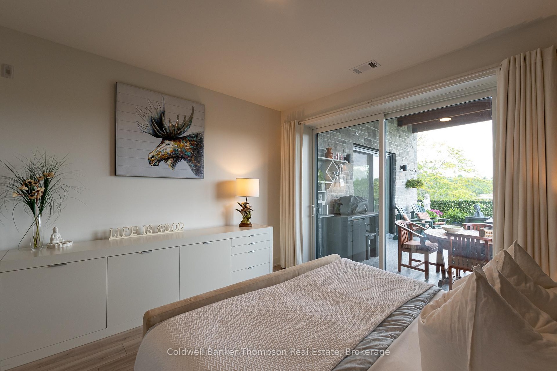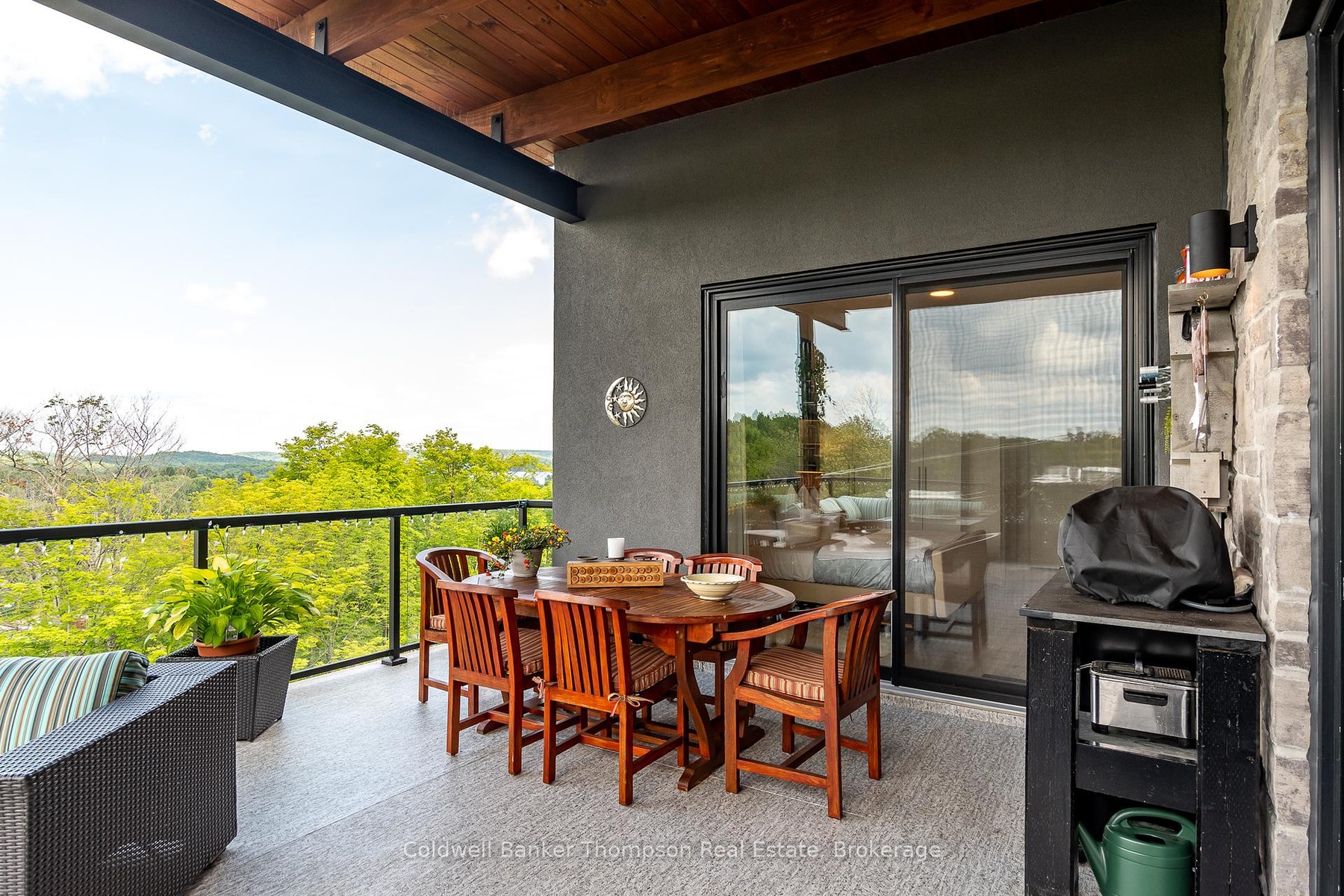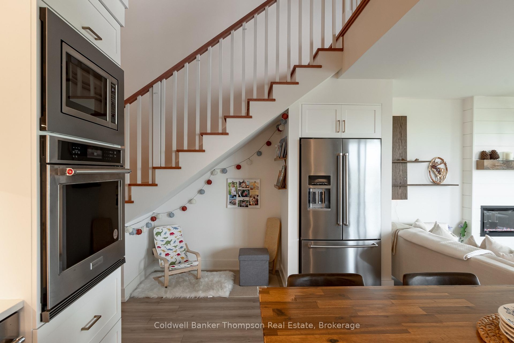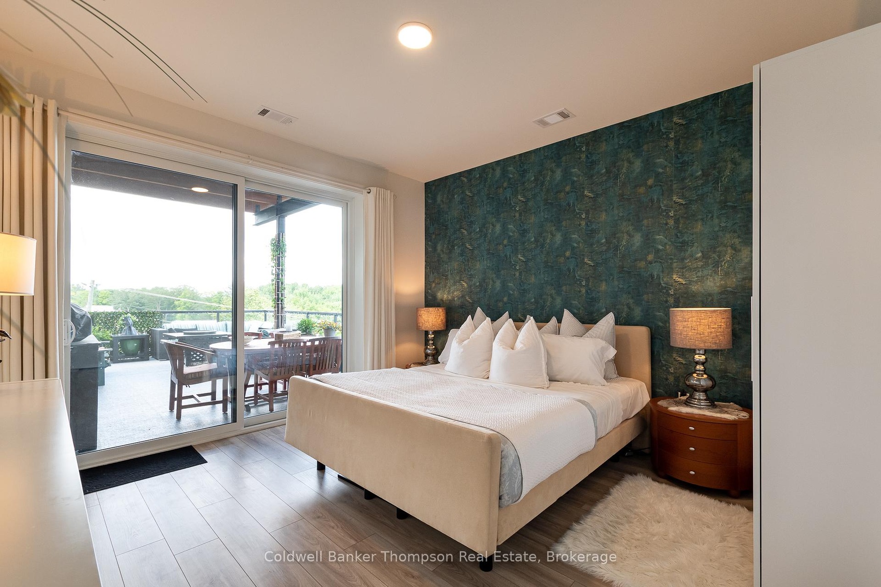 DescriptionWelcome to The Alexander, an architecturally striking condo building by Greystone (2022), built with ICF construction for enhanced efficiency. This sought-after corner penthouse is truly one of a kind, offering soaring ceilings, over 350 sq ft of bonus loft space, warm timber beam accents, and expansive architectural windows that flood the home with natural light. The loft offers incredible flexibility, ideal as a studio, office, guest space, or cozy retreat. The spacious foyer opens into an inviting open-concept kitchen, dining, and living area. Designed for both function and beauty, the chefs kitchen features quartz countertops, a generous island, built-in oven & microwave, induction cooktop, and a full suite of matching stainless appliances. The living room is anchored by an electric fireplace with shiplap detailing, while the dining area opens through oversized sliding doors to a nearly 400 sq ft private terrace. With lake views and a stunning display of foliage during the autumn, the terrace also includes two natural gas hookups, ideal for both a BBQ and a fire table. The serene primary suite enjoys its own access to the terrace, a walk-in closet, and a private spa-inspired 3-pc ensuite. A 4-pc guest bath and convenient laundry/utility room complete the main floor. Residents of The Alexander enjoy thoughtful amenities including underground parking, pickleball courts, a self-serve car wash, an outdoor lounge, a main-floor community room, and secure building access with 'smart' automation. With natural gas heat, municipal services, and fibre optic internet included in the condo fees, this penthouse offers an effortless lifestyle where comfort and convenience come naturally.Amenities- BBQs Allowed