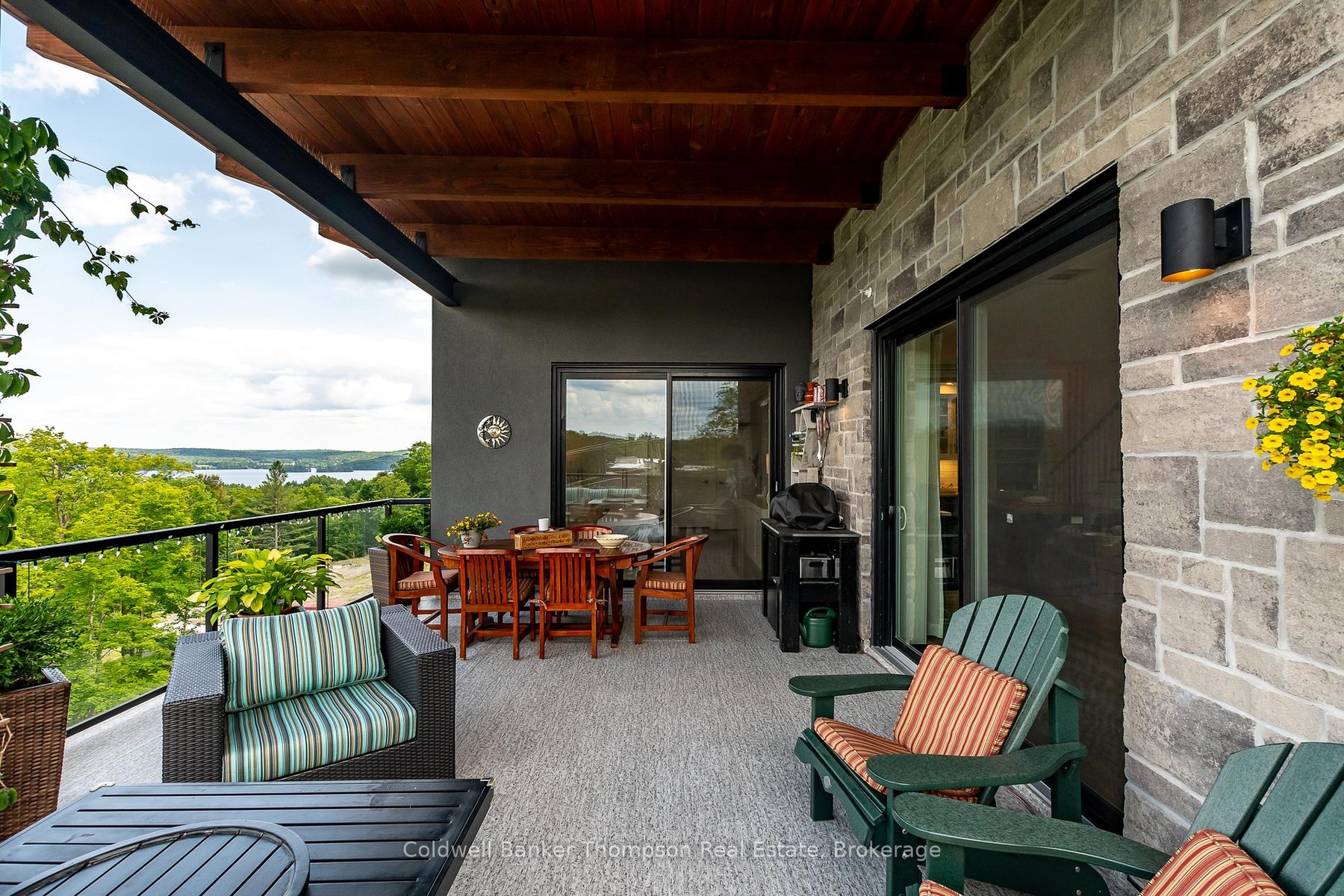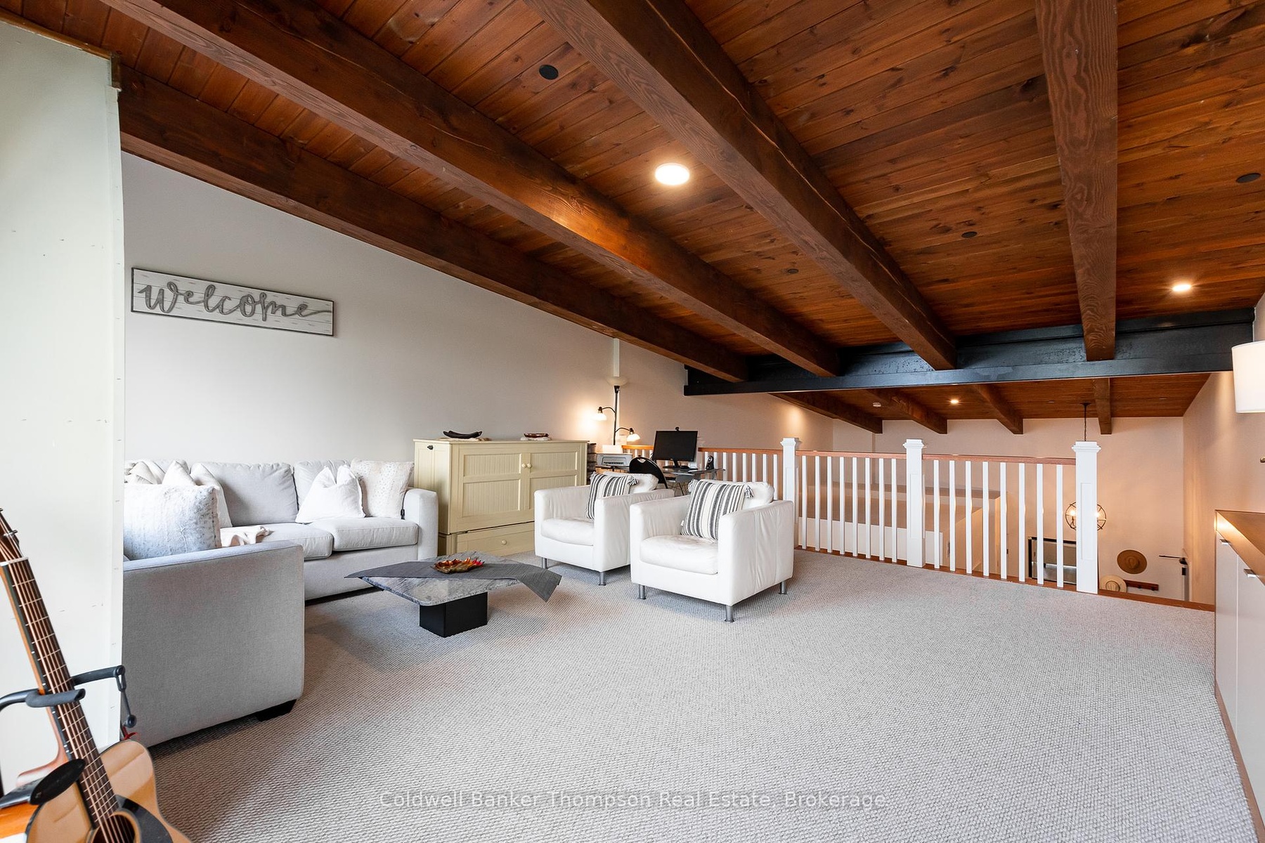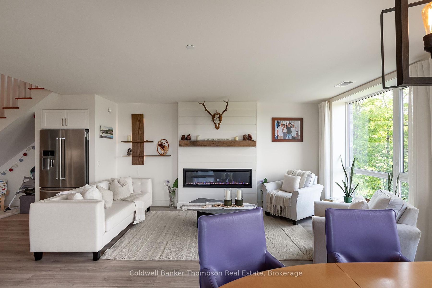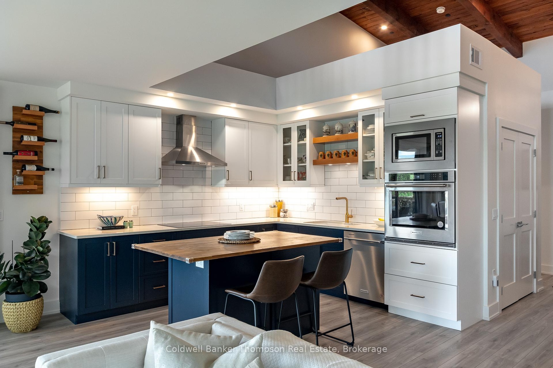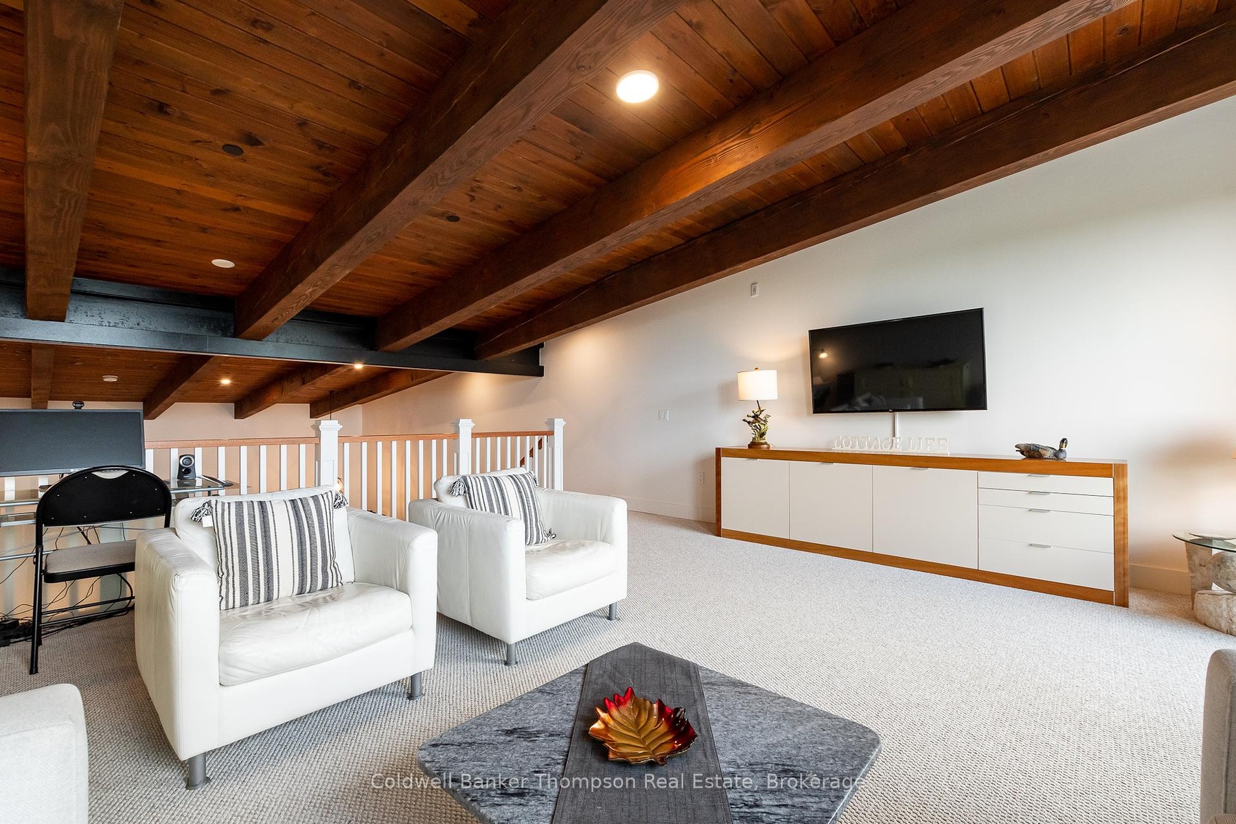 DescriptionWelcome to The Alexander, an architecturally striking condo building by Greystone (2022), built with ICF construction for enhanced efficiency. This sought-after corner penthouse is truly one of a kind, offering soaring ceilings, over 350 sq ft of bonus loft space, warm timber beam accents, and expansive architectural windows that flood the home with natural light. The loft offers incredible flexibility, ideal as a studio, office, guest space, or cozy retreat. The spacious foyer opens into an inviting open-concept kitchen, dining, and living area. Designed for both function and beauty, the chefs kitchen features quartz countertops, a generous island, built-in oven & microwave, induction cooktop, and a full suite of matching stainless appliances. The living room is anchored by an electric fireplace with shiplap detailing, while the dining area opens through oversized sliding doors to a nearly 400 sq ft private terrace. With lake views and a stunning display of foliage during the autumn, the terrace also includes two natural gas hookups, ideal for both a BBQ and a fire table. The serene primary suite enjoys its own access to the terrace, a walk-in closet, and a private spa-inspired 3-pc ensuite. A 4-pc guest bath and convenient laundry/utility room complete the main floor. Residents of The Alexander enjoy thoughtful amenities including underground parking, pickleball courts, a self-serve car wash, an outdoor lounge, a main-floor community room, and secure building access with 'smart' automation. With natural gas heat, municipal services, and fibre optic internet included in the condo fees, this penthouse offers an effortless lifestyle where comfort and convenience come naturally.Amenities- BBQs Allowed