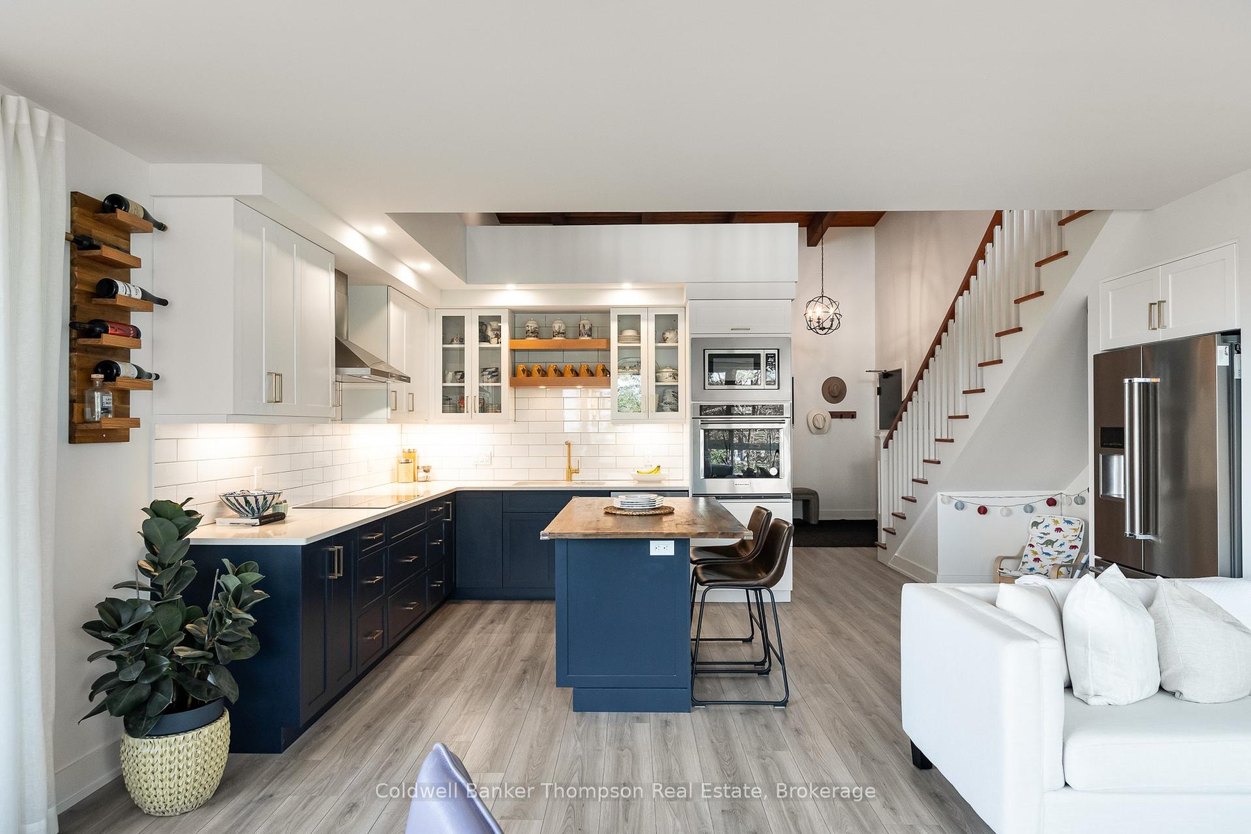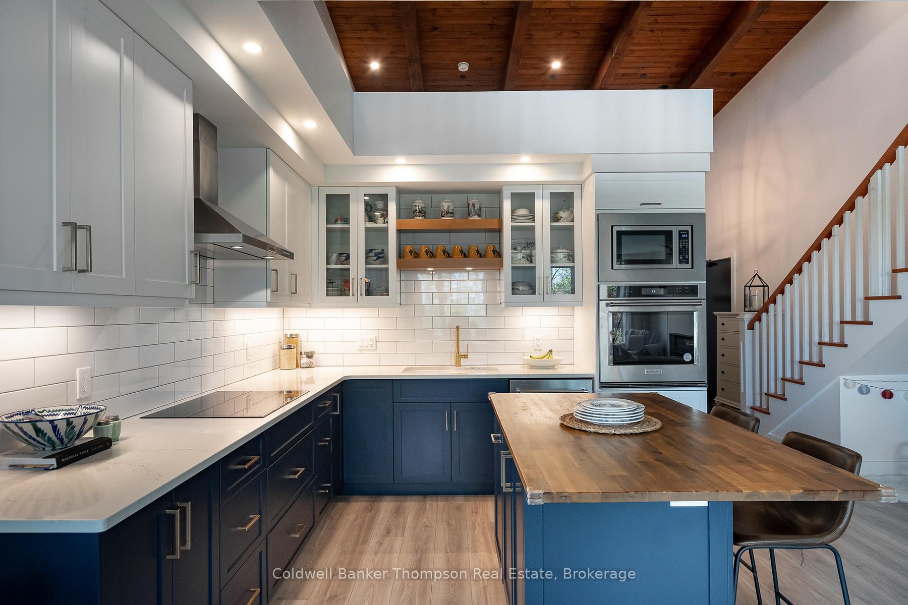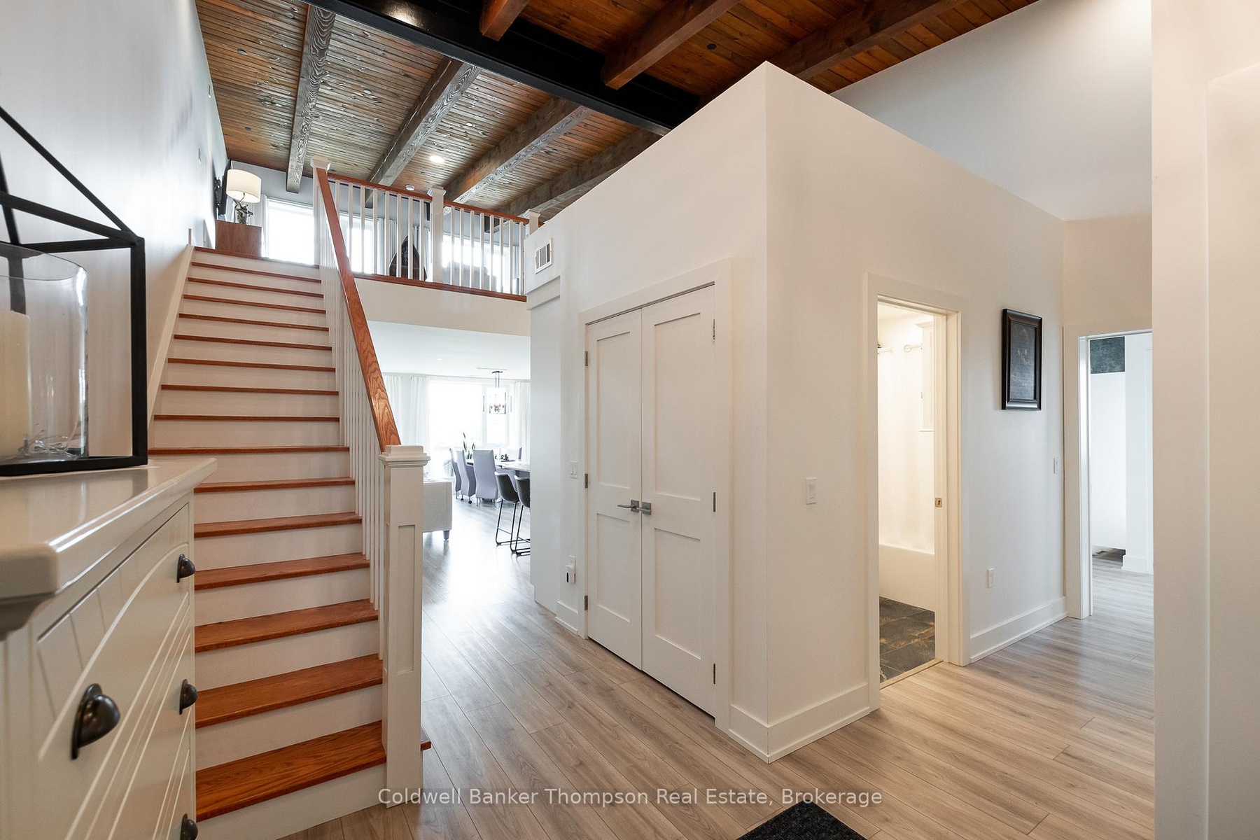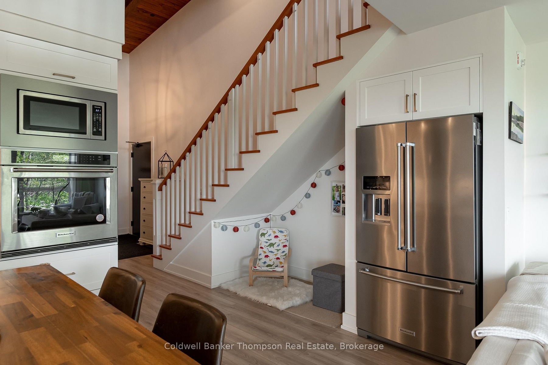 DescriptionWelcome to The Alexander, an architecturally striking condo building by Greystone (2022), built with ICF construction for enhanced efficiency. This sought-after corner penthouse is truly one of a kind, offering soaring ceilings, over 350 sq ft of bonus loft space, warm timber beam accents, and expansive architectural windows that flood the home with natural light. The loft offers incredible flexibility, ideal as a studio, office, guest space, or cozy retreat. The spacious foyer opens into an inviting open-concept kitchen, dining, and living area. Designed for both function and beauty, the chefs kitchen features quartz countertops, a generous island, built-in oven & microwave, induction cooktop, and a full suite of matching stainless appliances. The living room is anchored by an electric fireplace with shiplap detailing, while the dining area opens through oversized sliding doors to a nearly 400 sq ft private terrace. With lake views and a stunning display of foliage during the autumn, the terrace also includes two natural gas hookups, ideal for both a BBQ and a fire table. The serene primary suite enjoys its own access to the terrace, a walk-in closet, and a private spa-inspired 3-pc ensuite. A 4-pc guest bath and convenient laundry/utility room complete the main floor. Residents of The Alexander enjoy thoughtful amenities including underground parking, pickleball courts, a self-serve car wash, an outdoor lounge, a main-floor community room, and secure building access with 'smart' automation. With natural gas heat, municipal services, and fibre optic internet included in the condo fees, this penthouse offers an effortless lifestyle where comfort and convenience come naturally.Amenities- BBQs Allowed