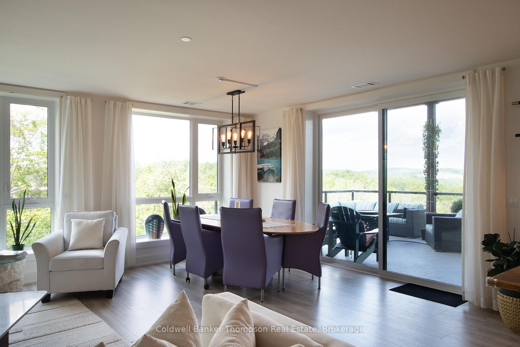 Welcome to The Alexander, an architecturally striking condo building by Greystone (2022), built with ICF construction for enhanced efficiency. This sought-after corner penthouse is truly one of a kind, offering soaring ceilings, over 350 sq ft of bonus loft space, warm timber beam accents, and expansive architectural windows that flood the home with natural light. The loft offers incredible flexibility, ideal as a studio, office, guest space, or cozy retreat. The spacious foyer opens into an inviting open-concept kitchen, dining, and living area. Designed for both function and beauty, the chefs kitchen features quartz countertops, a generous island, built-in oven & microwave, induction cooktop, and a full suite of matching stainless appliances. The living room is anchored by an electric fireplace with shiplap detailing, while the dining area opens through oversized sliding doors to a nearly 400 sq ft private terrace. With lake views and a stunning display of foliage during the autumn, the terrace also includes two natural gas hookups, ideal for both a BBQ and a fire table. The serene primary suite enjoys its own access to the terrace, a walk-in closet, and a private spa-inspired 3-pc ensuite. A 4-pc guest bath and convenient laundry/utility room complete the main floor. Residents of The Alexander enjoy thoughtful amenities including underground parking, pickleball courts, a self-serve car wash, an outdoor lounge, a main-floor community room, and secure building access with 'smart' automation. With natural gas heat, municipal services, and fibre optic internet included in the condo fees, this penthouse offers an effortless lifestyle where comfort and convenience come naturally.