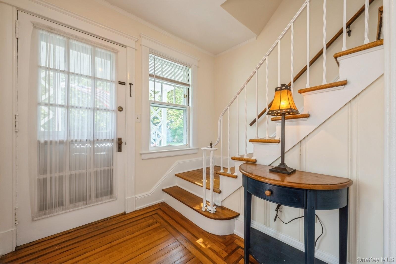 Full of warmth, character, and modern comforts, this beautifully maintained Colonial sits on a lovely property in a highly desirable mid-village location. Inside you'll find gleaming hardwood floors, high ceilings, and timeless architectural details throughout. The charming kitchen features new appliances and natural gas cooking, while recent upgrades include a brand-new roof and hot water heater. Second level you'll find all 3 bedrooms and the 2nd full bathroom. The top level offers bonus rooms—ideal for a home office, gym, or creative space. Enjoy a private, secluded backyard and the convenience of a rare 2-car garage. Just steps to shops, fine dining, top-rated schools, arboretums, beaches, golf courses, and the Long Island Rail Road, this home is the perfect blend of vintage charm and thoughtful updates.
