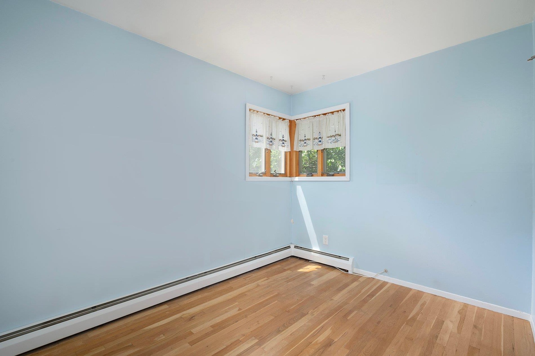 - Unfurnished room featuring a baseboard heating unit and light wood-style floors