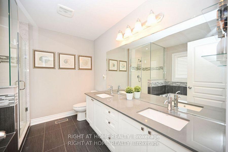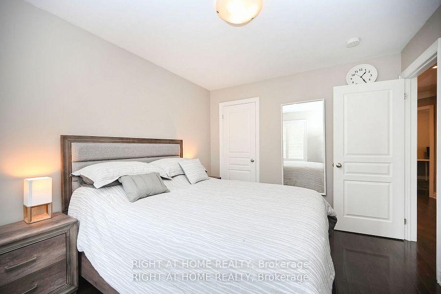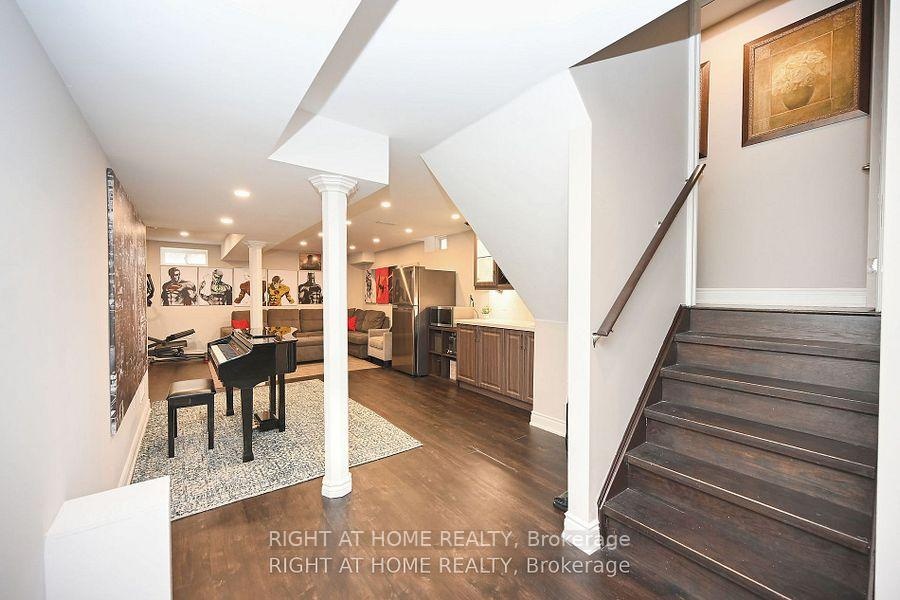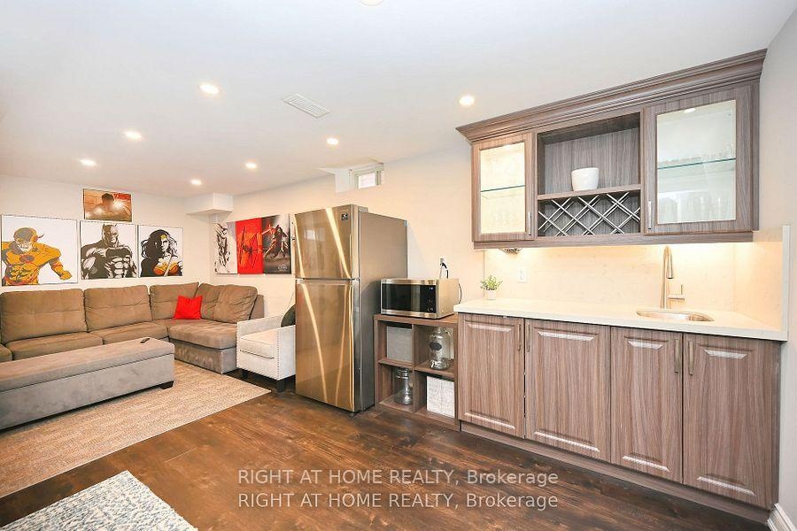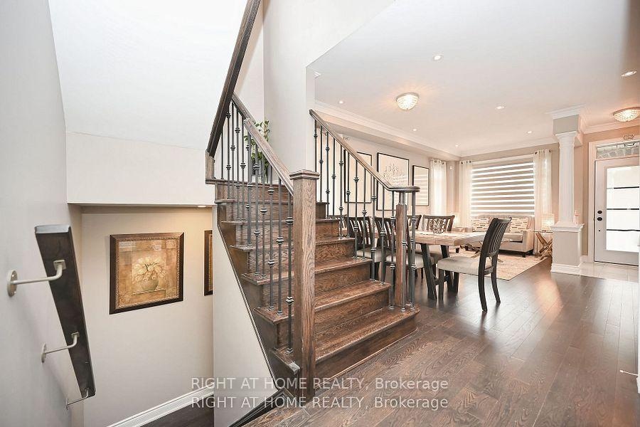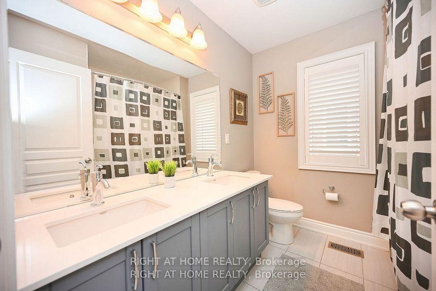 Nestled between James Snow and Trudeau area of Milton. Tastefully upgraded link-detached home close to schools, parks, grocery, shopping & highways. Perfect for a growing family. 4 bedrooms, 3.5 washrooms, Finished open concept basement with a great room, wet bar, office/den space, pot lights & 3 pc washroom. Extended Chef's kitchen boasts S/S appls, Caesarstone countertops with large eat-in island, custom storage & soft close cabinets, tiled backsplash, walkout to a deck leading down to a paver stoned backyard & an 8*10 garden shed for all your additional storage. Main floor family room w/gas fireplace, separate living room combined with a dining room. Inviting space with well-placed pot lights, modern paint color & light fixtures, upgraded handrails & wrought iron pickets, crown moldings, high baseboards, California shutters and zebra blinds. Laundry in upper level with upgraded appliances and linen cabinets. Hardwood floors except basement have matching laminate floors. Exterior pot lights and fence lighting installed with timer. Parking 3 cars. EV Plugin in attached garage. Please note: Home has been tenanted for approx. 1.5 years. Pictures shared are from before the lease term commenced. Home will be cleaned and freshly painted prior to closing.