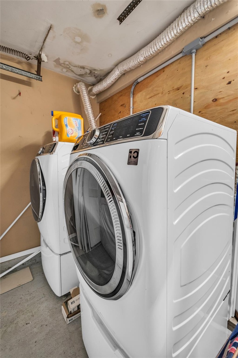 - Laundry area featuring washing machine and clothes dryer and laundry area