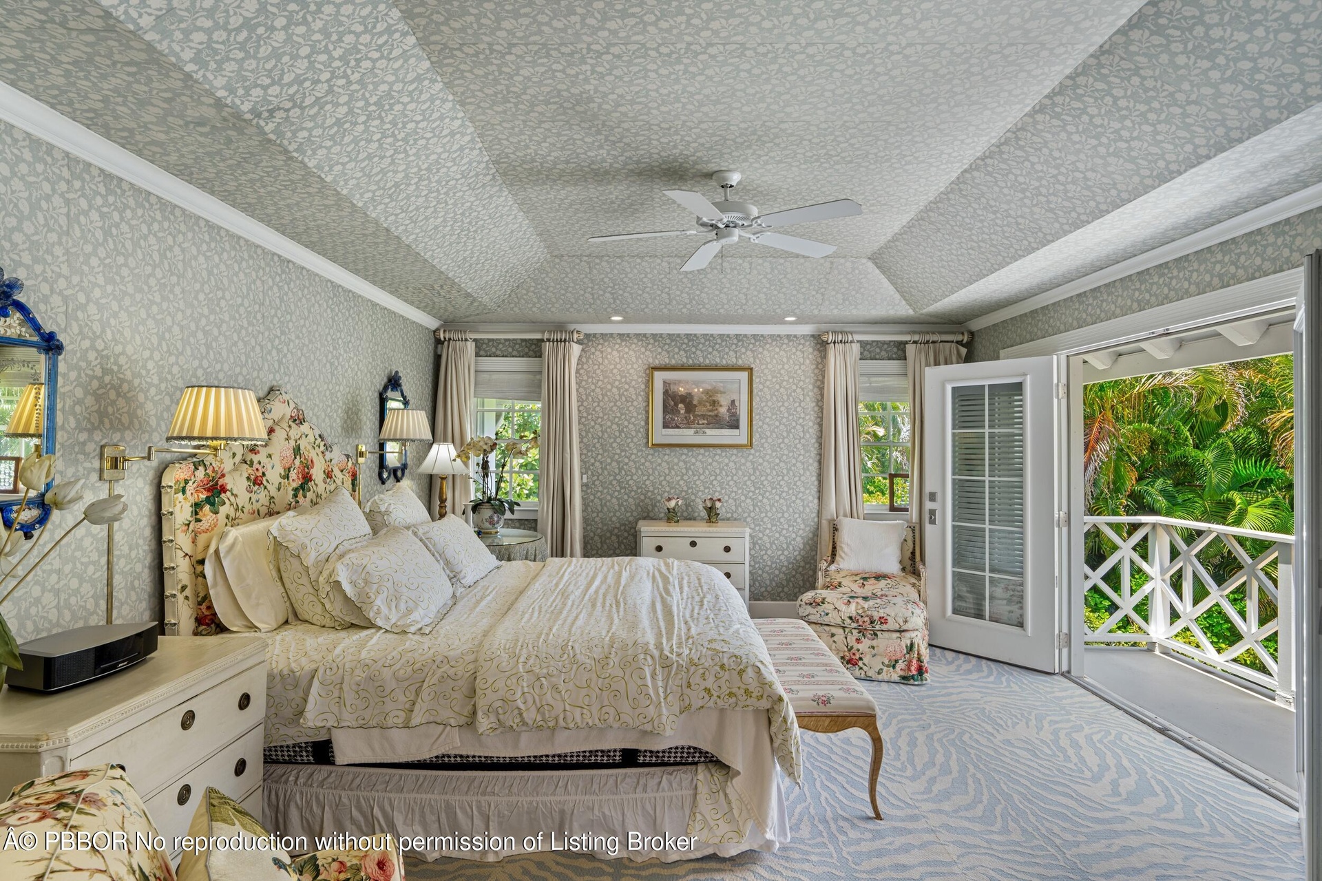 Beautiful Monterey Colonial home on the Lake Block of Via Vizcaya. Features an excellent traditional floor plan with 4 bedrooms, 4.1 bathrooms, fireplace, and beautiful hardwood flooring. Exterior features include balconies, covered loggia, and swimming pool. Ample parking with two driveways and attached garage. Approximately half an acre with beautifully landscaped grounds. Ideally located in Palm Beach's acclaimed Estate Section.