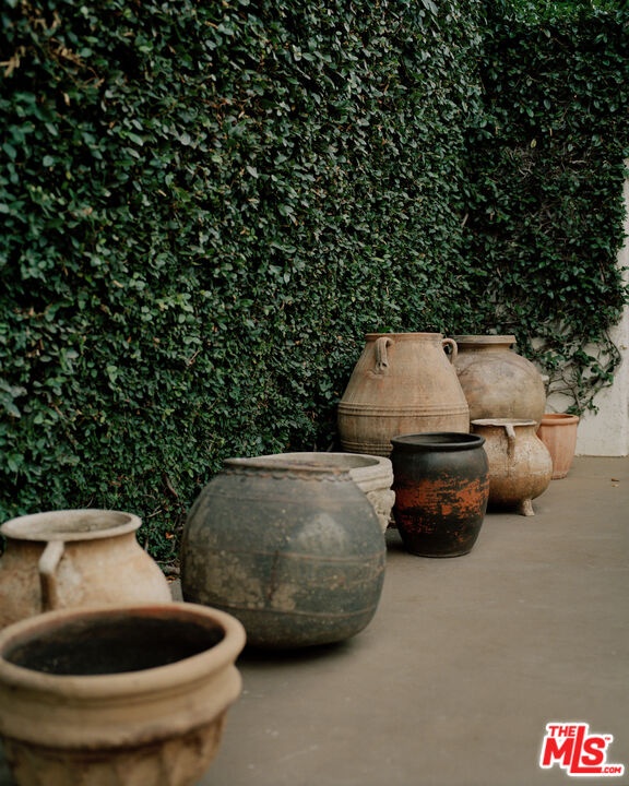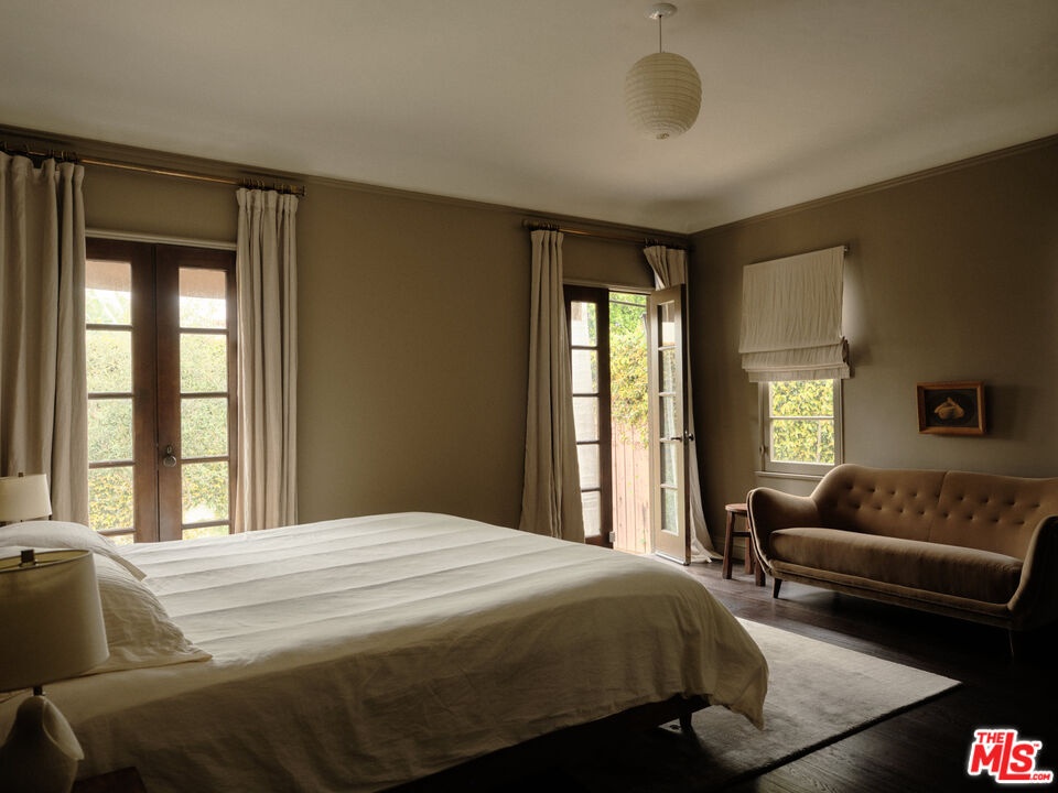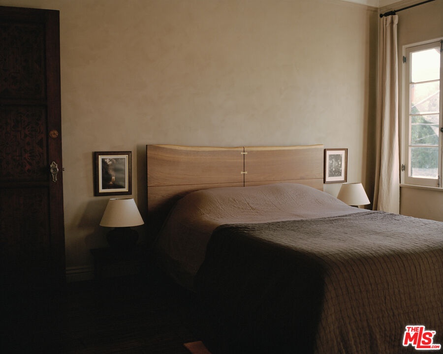 Discreetly tucked away in the heart of West Hollywood, this exquisitely appointed 1929 Spanish upstairs/downstairs duplex whispers of old-world romance and artistic possibility. Beyond its gated entrance, a lush, secluded courtyard invites you to wander beneath the dappled light, an intimate prelude to the magic that awaits within. Inside, a dramatic foyer with original tiled stairs and a glowing stained glass window you'll find separate, private entries to each residence. Both upstairs and downstairs spaces offer a 2-bedroom, 2-bathroom floorplan plus a bonus room, each brimming with soulful character, beamed ceilings, arched doorways, updated kitchens and baths, a grand fireplace, and hand-carved wood doors that speak to the craftsmanship of another era. The gardens, reimagined by ORCA with native specimens, unfold like a love letter to LA's natural beauty. A large detached garage has been converted into a studio or flex space, perfect for creative pursuits. A long, gated driveway completes the picture, offering privacy and ease. With a prime location that offers easy proximity to Melrose Place and all that WeHo offers, this rare sanctuary is more than a home, it's a feeling.