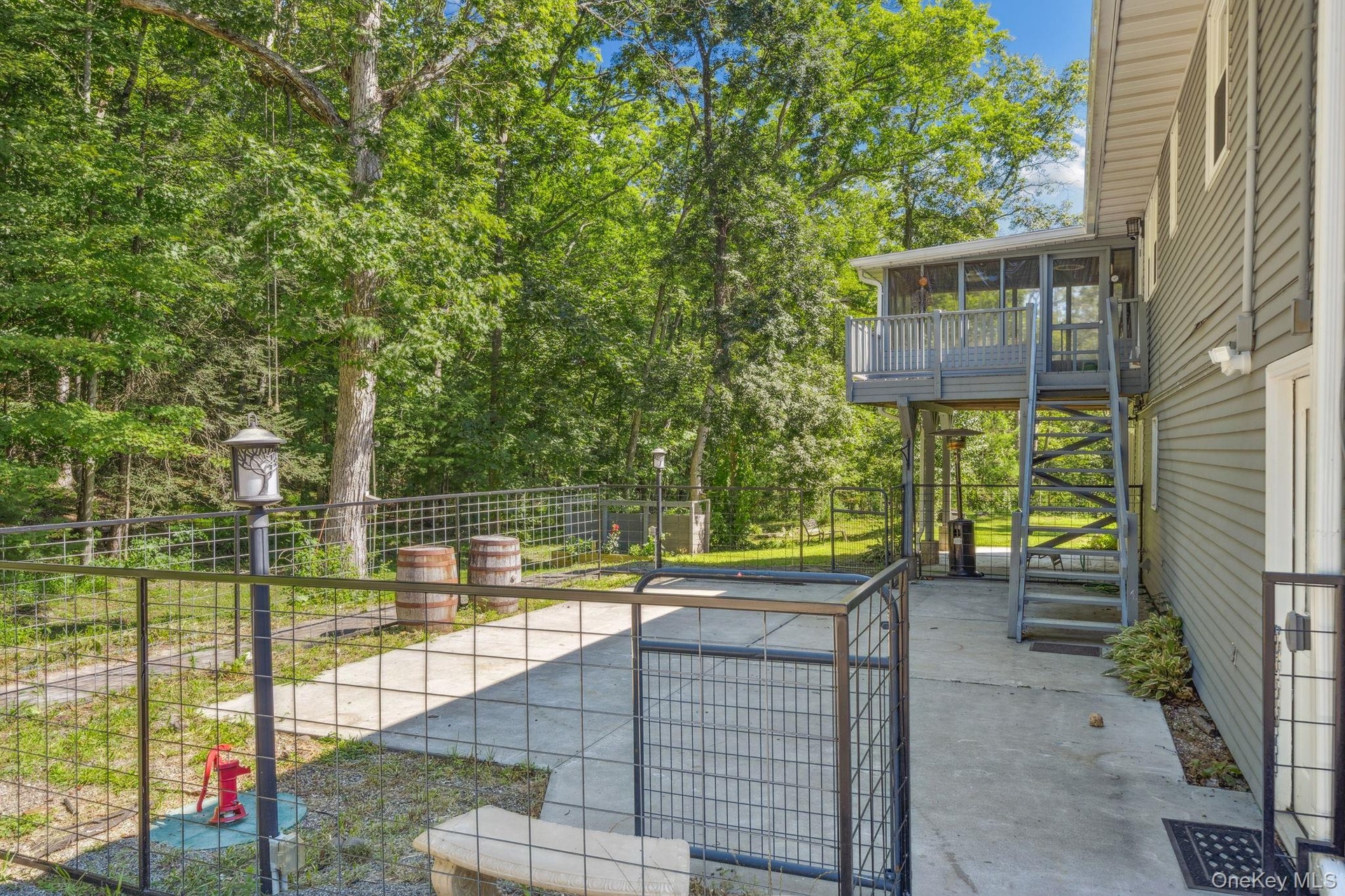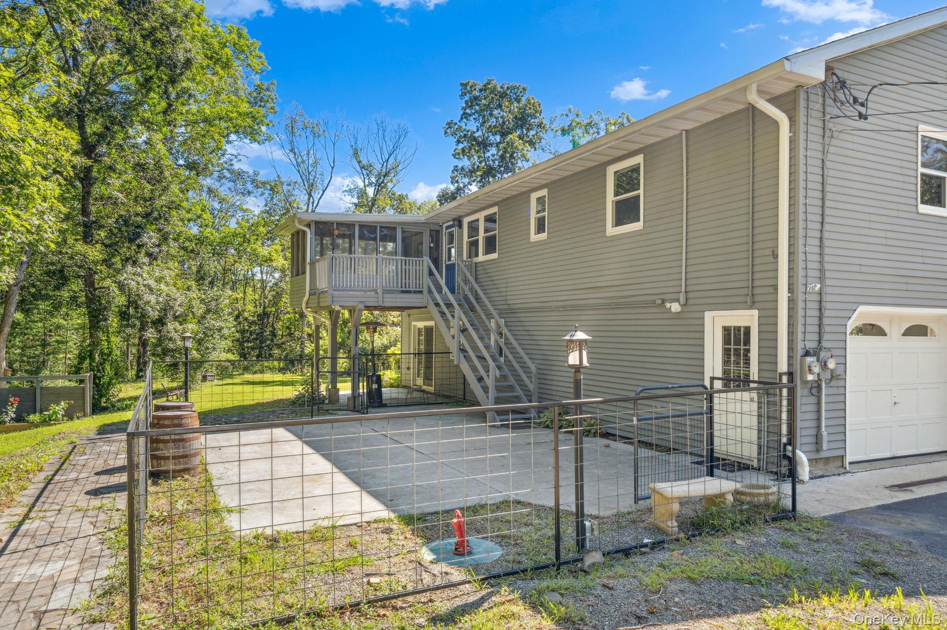 This lovely move-in ready raised ranch is set on 1.8 peaceful acres just minutes from Uptown Kingston. Thoughtfully upgraded inside and out, this home offers flexible living space and plenty of room to enjoy the outdoors. Many large improvements and updates were made within the last few years. You'll love the beautiful kitchen which is open to the dining area, and appreciate the newer windows, siding, roof, and utilities. Upstairs there are three bedrooms, a spacious living room enhanced with a gas fireplace, and a bathroom with double vanity. The lower level offers a private guest or in-law suite with it's own entrance and electrical service—perfect for extended family or flexible living needs-or great income potential, all ready to go! A generator adds peace of mind. The exterior is just as impressive with lush landscaping, a fully fenced organic vegetable garden with excellent sun exposure, a large private back patio for entertaining, and a peaceful walking trail through the property. A huge shed offers tons of space for storage or hobbies. Additional gravel parking pad and second driveway provide ample room for guests—and are ideal for an RV or camper setup. Unbeatable location, bordering the quiet hamlet of Hurley, 3 minutes to the historic Stockade district and the NYS thruway, and 15 minutes up Rt 28 to Woodstock.