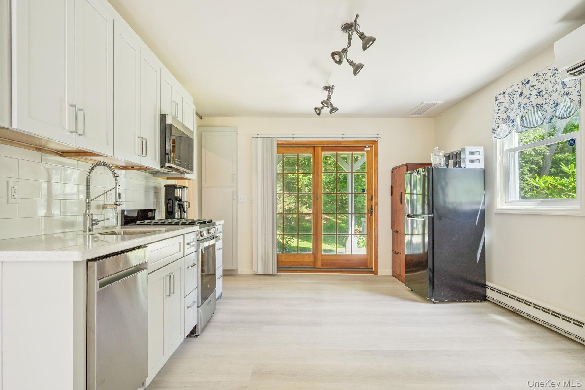 DescriptionThis lovely move-in ready raised ranch is set on 1.8 peaceful acres just minutes from Uptown Kingston. Thoughtfully upgraded inside and out, this home offers flexible living space and plenty of room to enjoy the outdoors. Many large improvements and updates were made within the last few years. You'll love the beautiful kitchen which is open to the dining area, and appreciate the newer windows, siding, roof, and utilities. Upstairs there are three bedrooms, a spacious living room enhanced with a gas fireplace, and a bathroom with double vanity. The lower level offers a private guest or in-law suite with it's own entrance and electrical service—perfect for extended family or flexible living needs-or great income potential, all ready to go! A generator adds peace of mind. The exterior is just as impressive with lush landscaping, a fully fenced organic vegetable garden with excellent sun exposure, a large private back patio for entertaining, and a peaceful walking trail through the property. A huge shed offers tons of space for storage or hobbies. Additional gravel parking pad and second driveway provide ample room for guests—and are ideal for an RV or camper setup. Unbeatable location, bordering the quiet hamlet of Hurley, 3 minutes to the historic Stockade district and the NYS thruway, and 15 minutes up Rt 28 to Woodstock.Amenities- Dishwasher