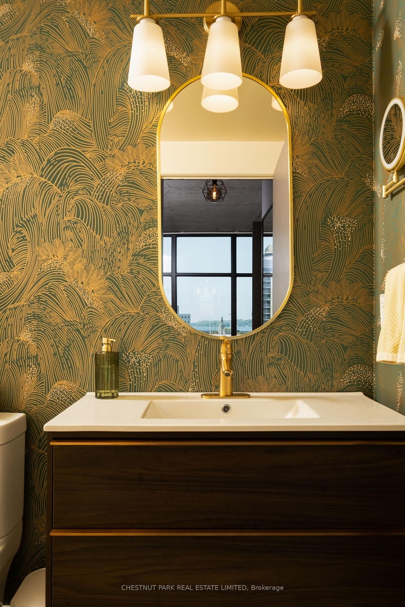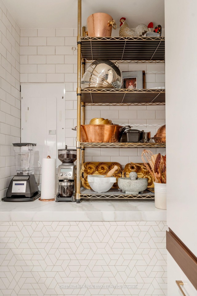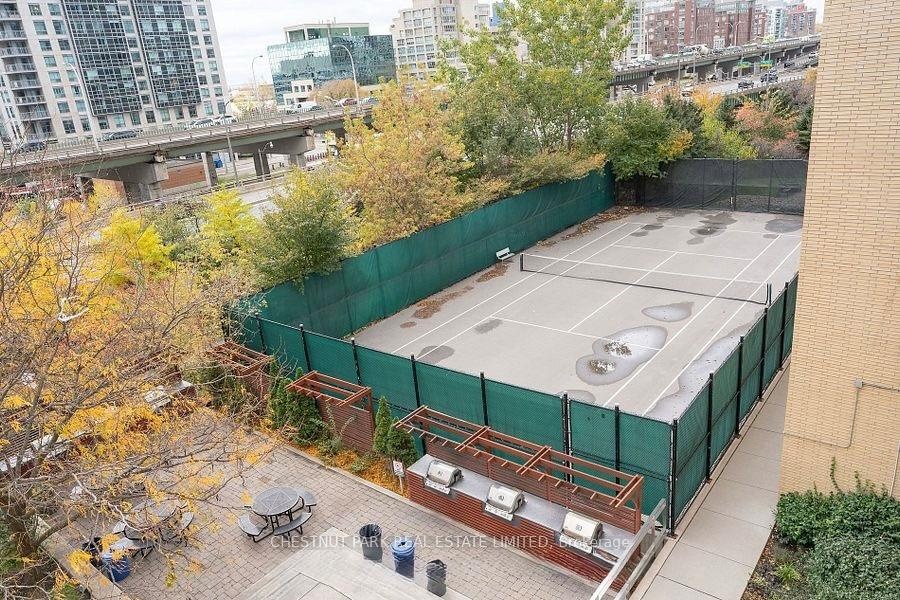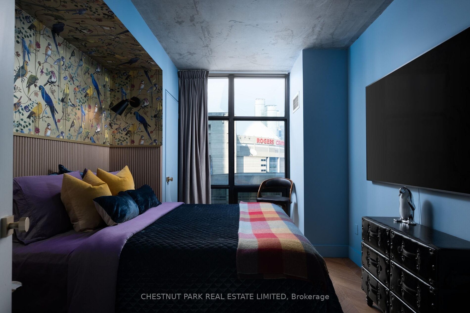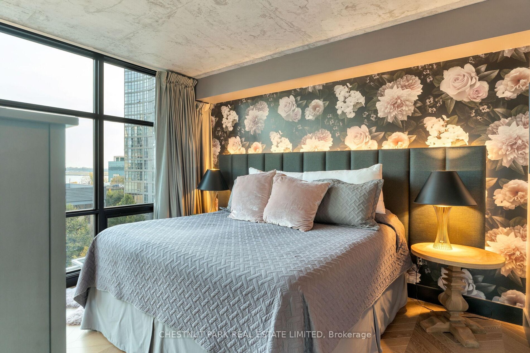 DescriptionWhether you're downsizing in style or moving on up, this suite is a knockout you'll never outgrow. Welcome to Suite 709 at 10 Navy Wharf Court, a breathtaking corner unit where designer style meets unmatched functionality in the heart of downtown Toronto.This meticulously renovated suite is a showpiece for anyone who loves exceptional design, natural light, and chef-quality living.At the heart of the home is a true culinary dream: a professionally outfitted kitchen featuring a 36 Bluestar range with six open burners, a quiet Ventahood, and striking hammered copper sink including a bar sink that doubles as a champagne bucket. Custom cabinetry, hidden compartments, and sleek storage make this space both beautiful and brilliantly functional. Just behind a discreet sliding door, you'll discover a fully separate pantry complete with a wall oven, brass shelving, pan cooling racks, and a dedicated beverage fridge ideal for serious cooks or entertainers.This rare corner suite boasts floor-to-ceiling windows in every principal room, flooding the space with natural light from the north, east, and south. Whether you're relaxing in the living area, prepping in the kitchen, or waking up in the serene primary suite, you'll enjoy stunning city, lake, and skyline views from every angle. Step outside to a sweet private terrace perfect for lounging with morning coffee or evening drinks under the dazzling skyline while watching planes come and go from Billy Bishop Airport. Every detail of this suite exudes high-end design, from the chevron oak flooring, concrete ceilings, to the bold curated finishes. Top-of-the-line appliances and an undeniable sense of flair make this home stand out in every way.Complete with parking, storage, and access to the exclusive 30,000 sq. ft. Super Club including a gym, pool, tennis courts, and more. Suite 709 is the ultimate blend of luxury, lifestyle, and location. Don't miss your chance to own one of the most stylish and light-filled suites in Toronto.Virtual Tour: https://tours.bhtours.ca/709-10-navy-wharf-court/nb/Amenities- Community BBQ