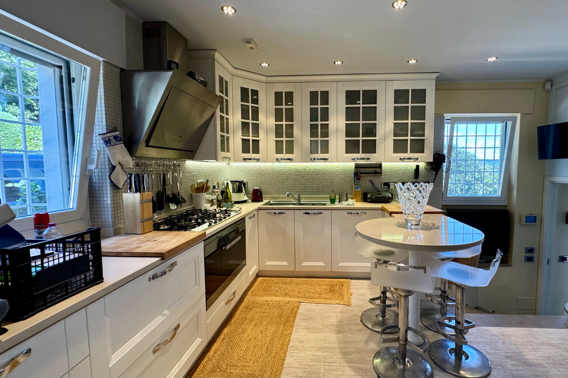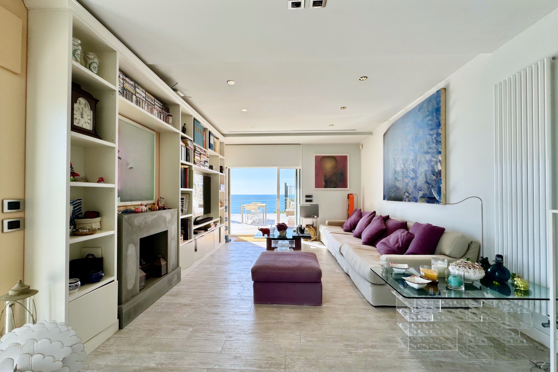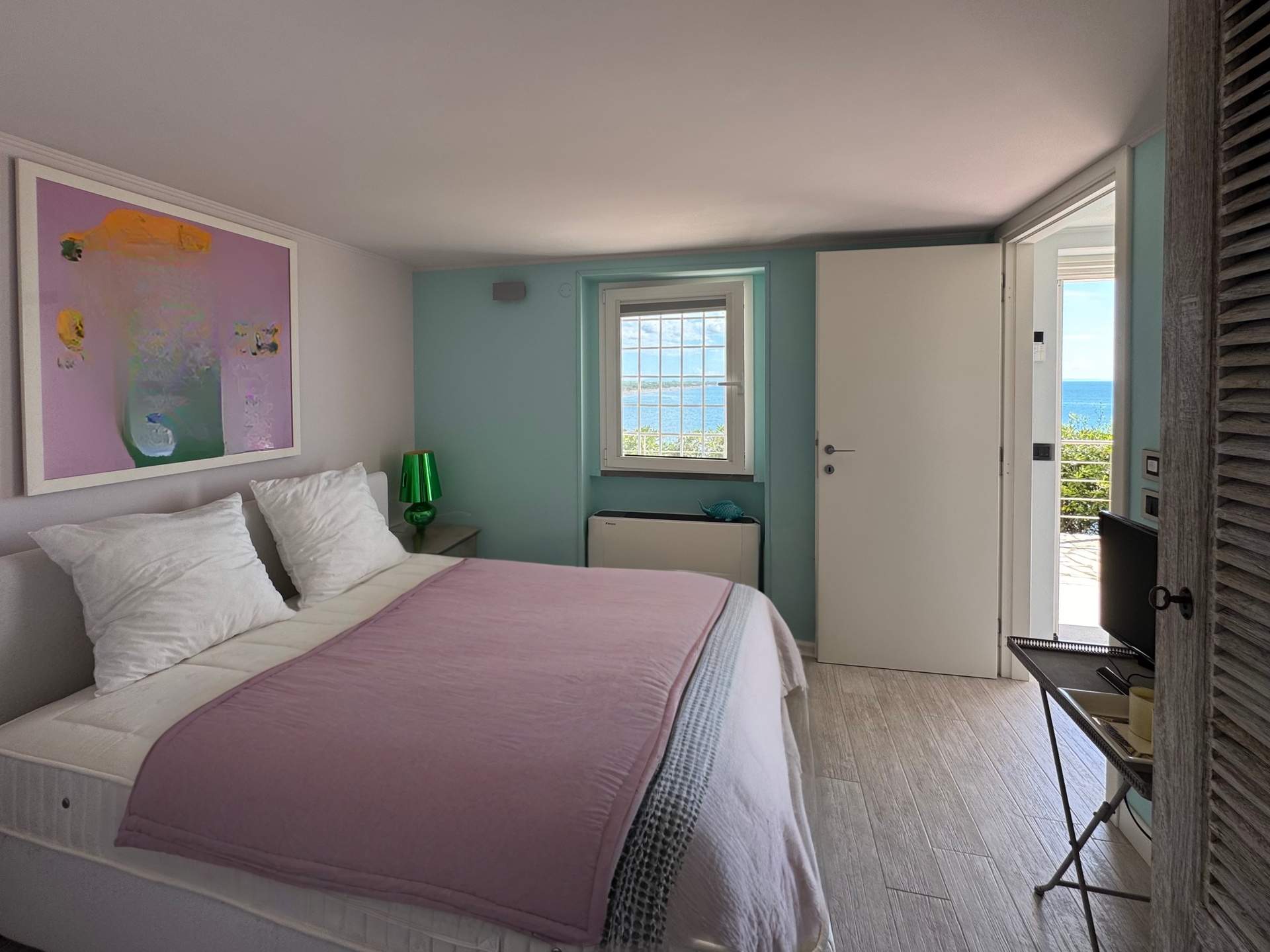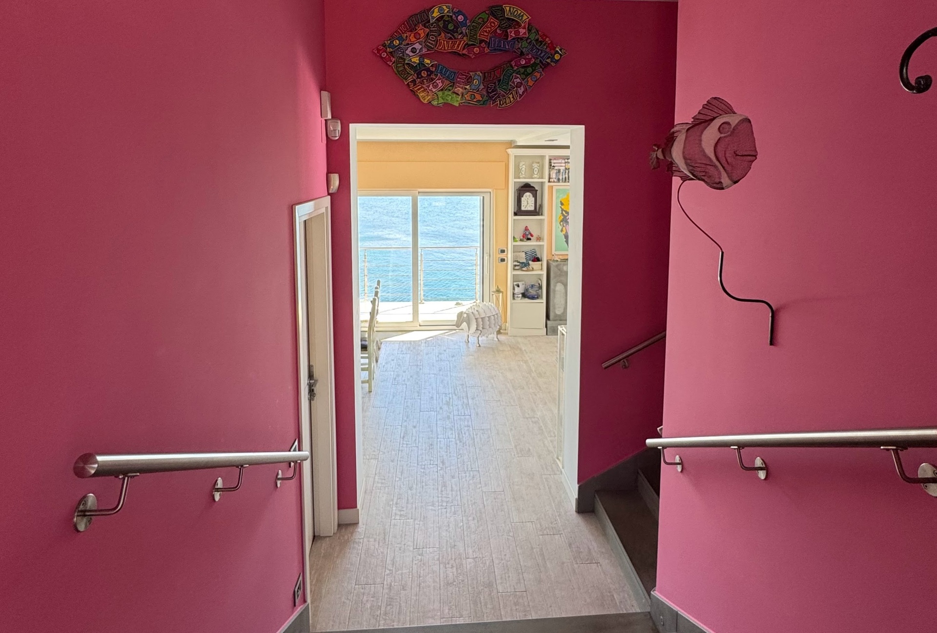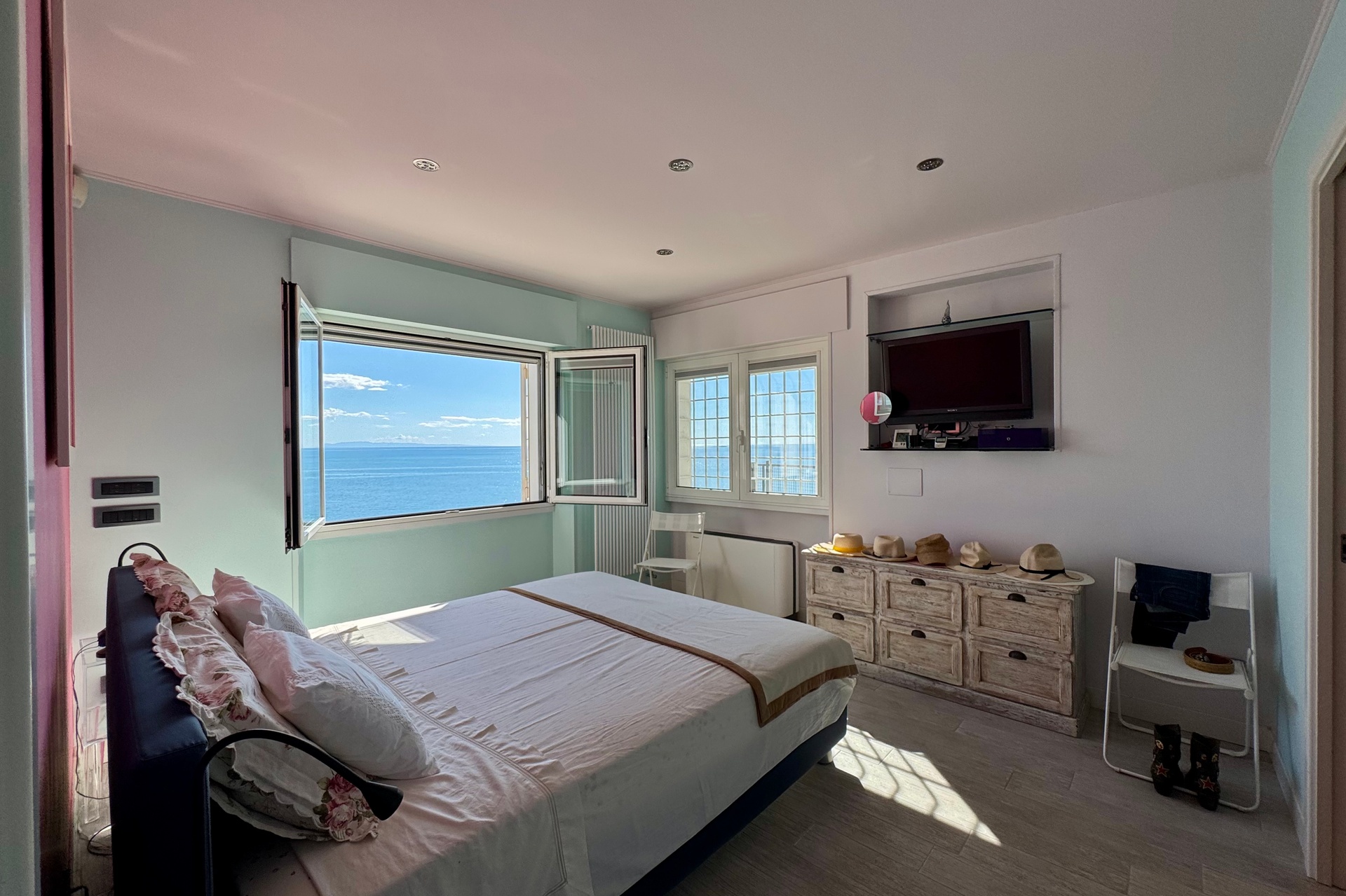 The ground floor features a bright living room with a fireplace and a panoramic terrace, making it an ideal space for entertaining or enjoying the remarkable view. The fully equipped kitchen, featuring a large refrigerator, a professional ice maker, and a wine cellar, is perfectly suited for food and wine enthusiasts. The three bedrooms, each with an en suite bathroom, ensure privacy and comfort. The lower level includes a guest room with a private bathroom and independent access, as well as a room for service staff, a laundry area, and space for technical equipment. These spaces are managed via home automation technology for easy remote control. The total gross floor area, covering main rooms, ancillary spaces, and both direct and indirect areas, measures 280 square meters, complemented by 86 square meters of terraces, balconies, and porches. The villa is complemented by a 1,234-square-meter manicured garden, accessible via a driveway ramp that leads from the electric entry gate to the villa's entrance. There is space for a lovely swimming pool, though the sea is very close, and a staircase connects the property to the path that leads to the nearby Tagliata Beach.