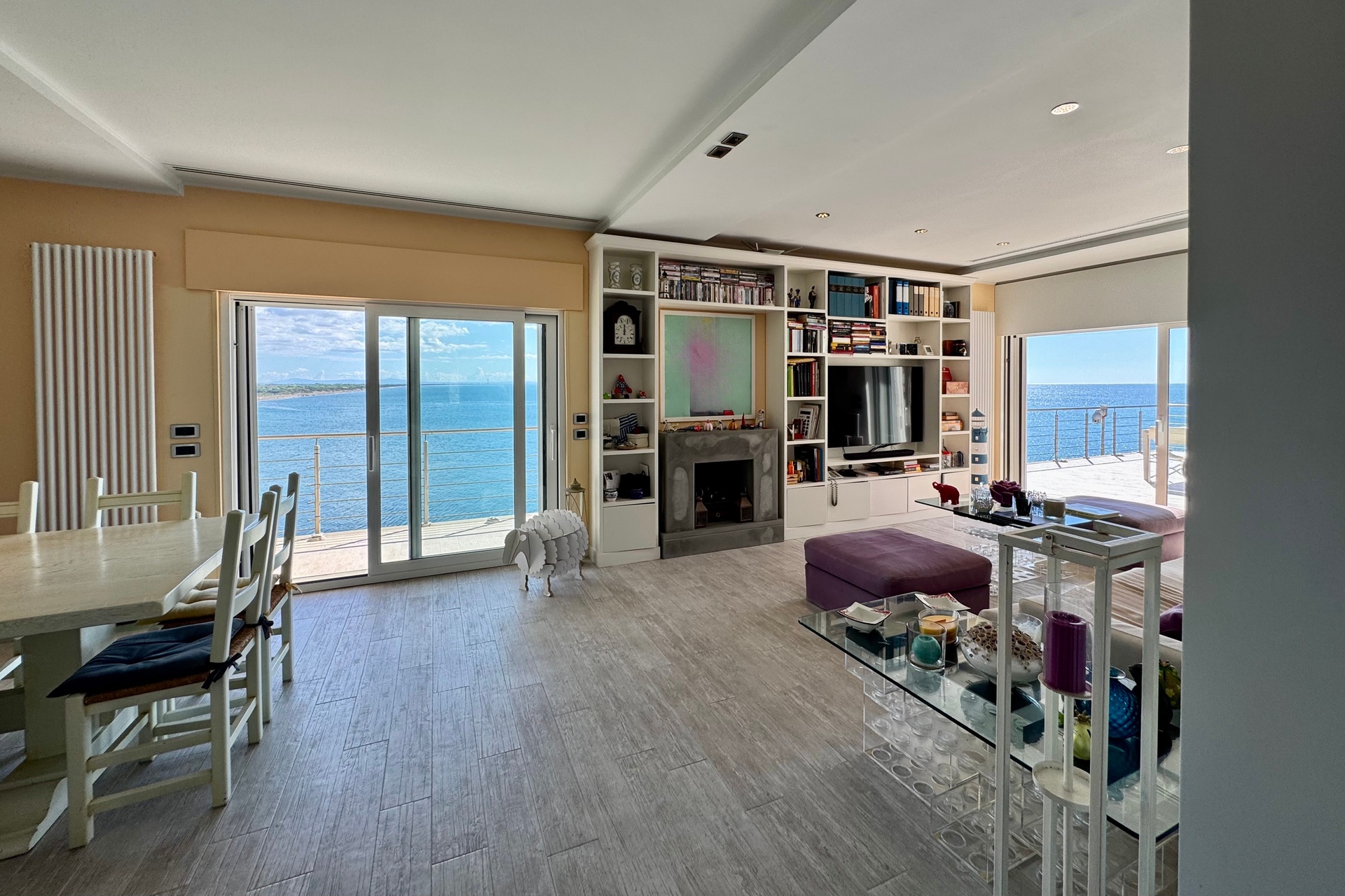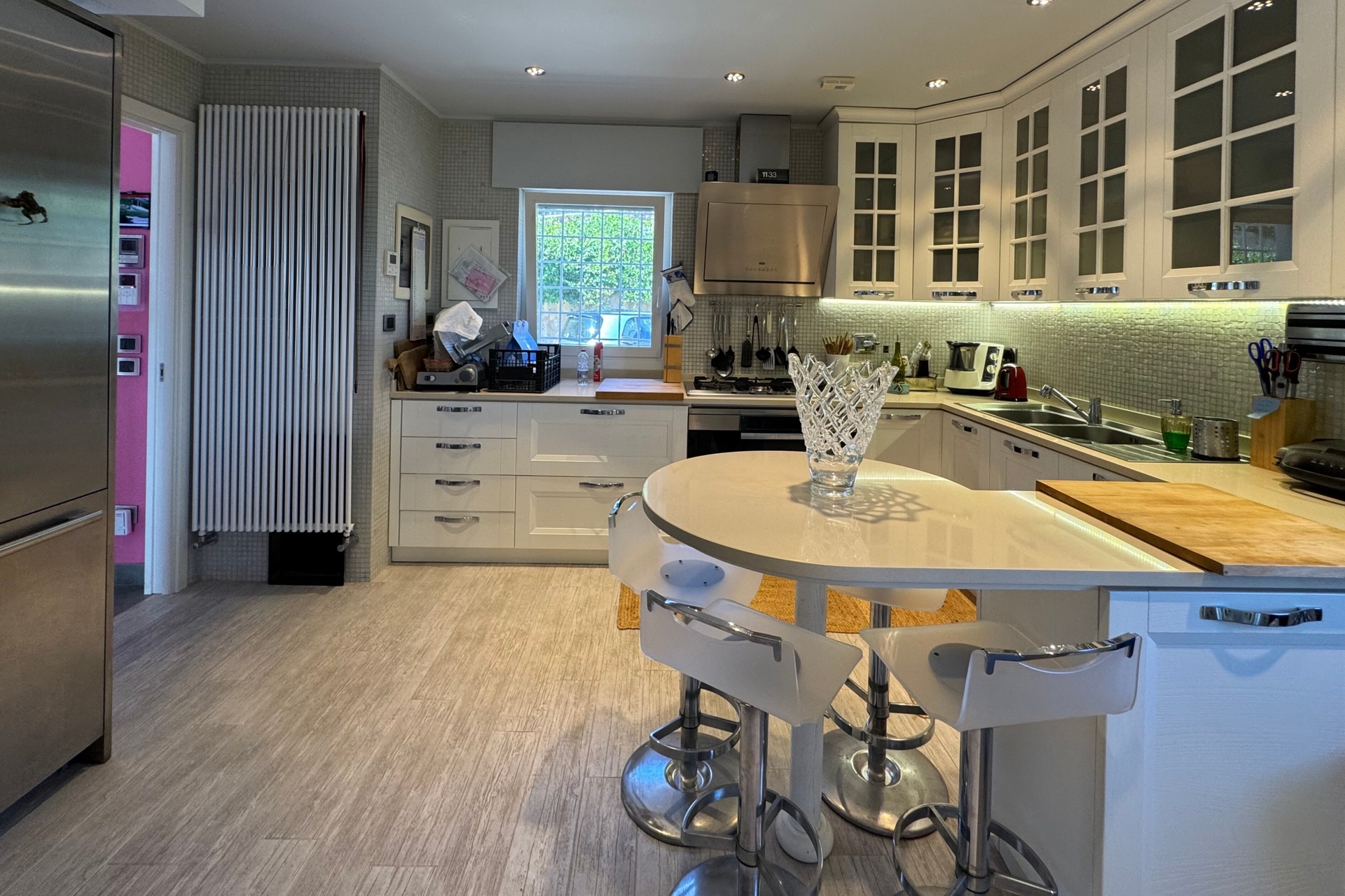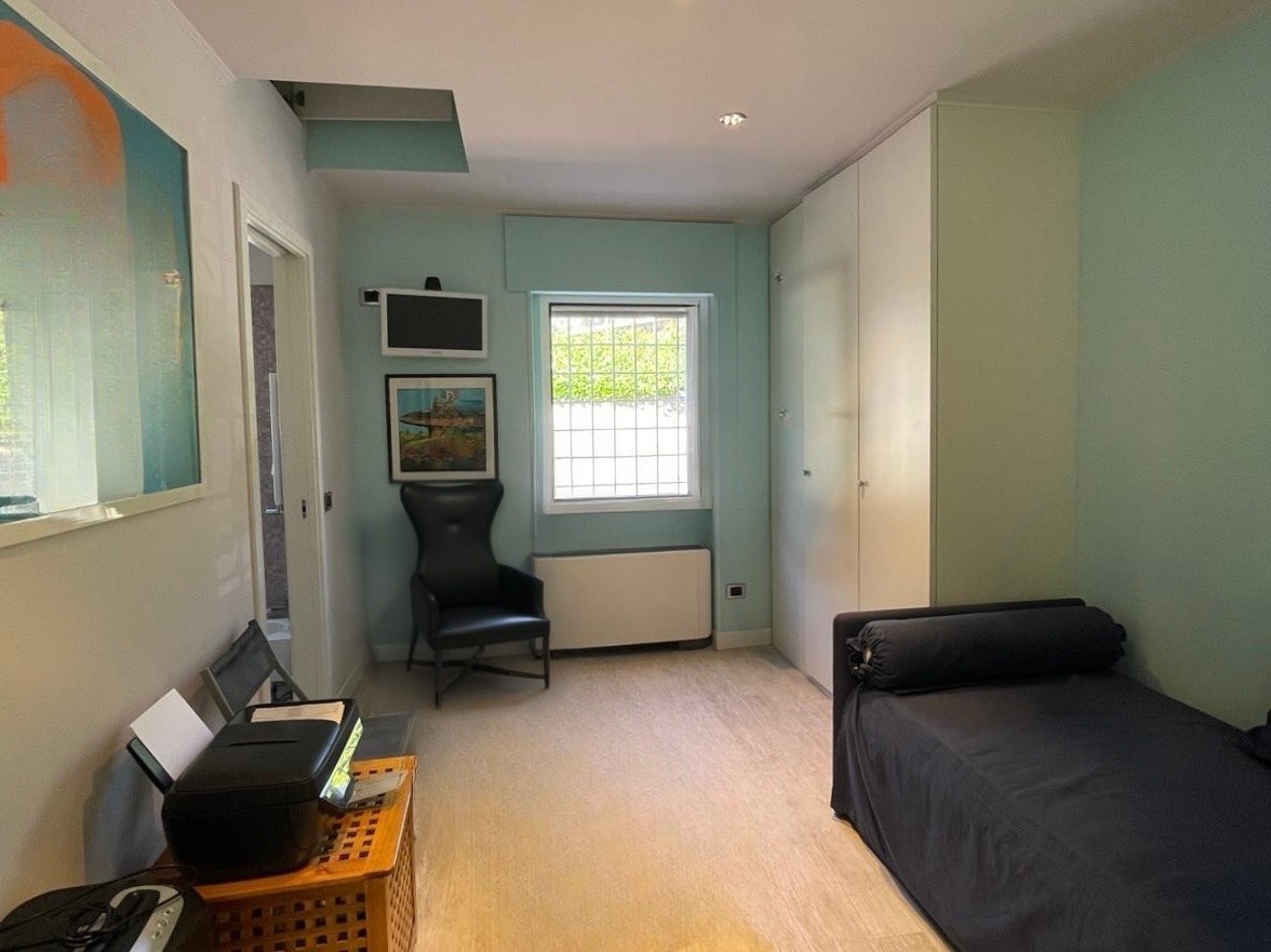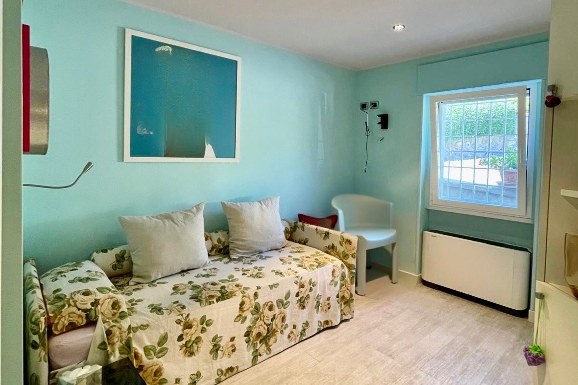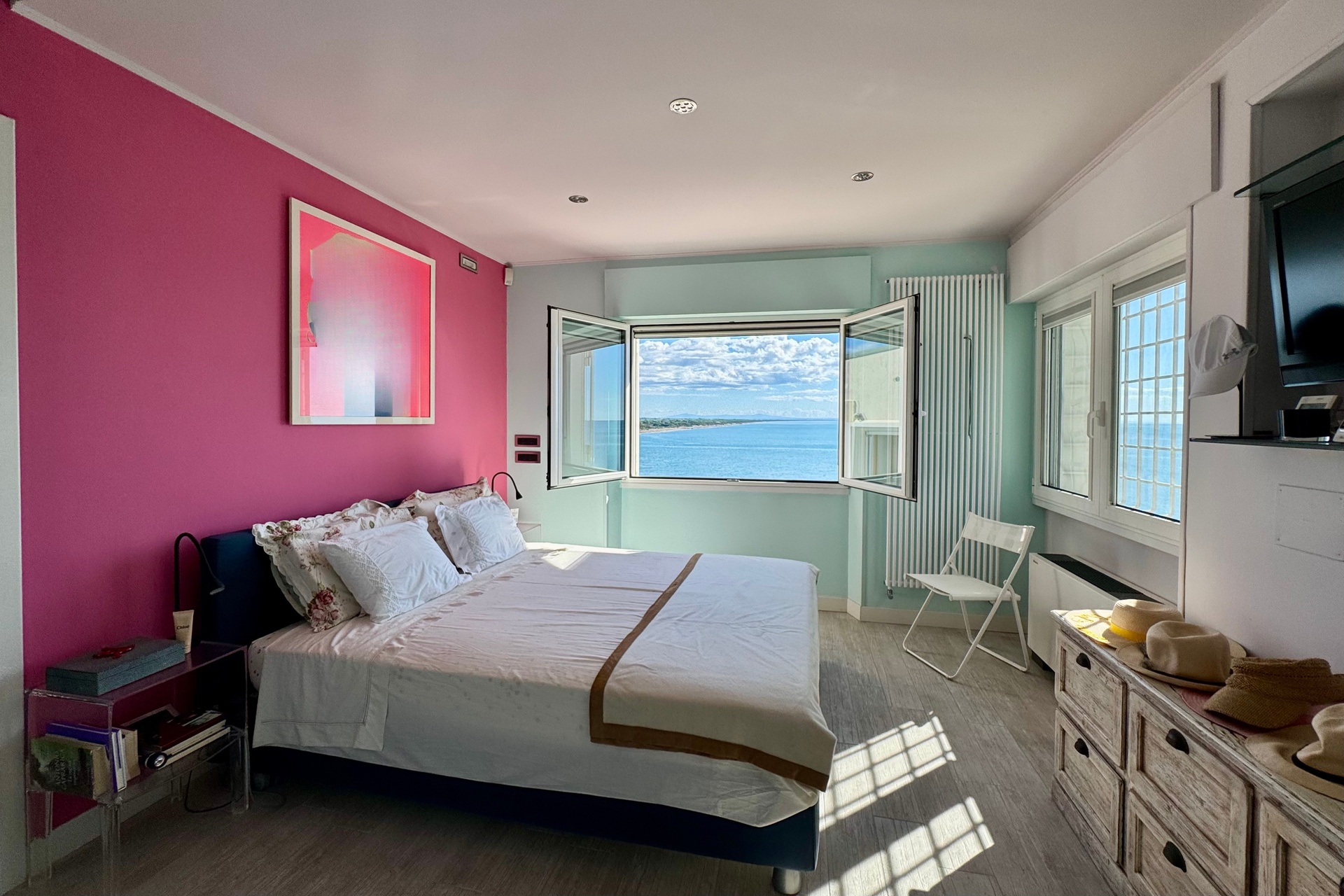 The ground floor features a bright living room with a fireplace and a panoramic terrace, making it an ideal space for entertaining or enjoying the remarkable view. The fully equipped kitchen, featuring a large refrigerator, a professional ice maker, and a wine cellar, is perfectly suited for food and wine enthusiasts. The three bedrooms, each with an en suite bathroom, ensure privacy and comfort. The lower level includes a guest room with a private bathroom and independent access, as well as a room for service staff, a laundry area, and space for technical equipment. These spaces are managed via home automation technology for easy remote control. The total gross floor area, covering main rooms, ancillary spaces, and both direct and indirect areas, measures 280 square meters, complemented by 86 square meters of terraces, balconies, and porches. The villa is complemented by a 1,234-square-meter manicured garden, accessible via a driveway ramp that leads from the electric entry gate to the villa's entrance. There is space for a lovely swimming pool, though the sea is very close, and a staircase connects the property to the path that leads to the nearby Tagliata Beach.