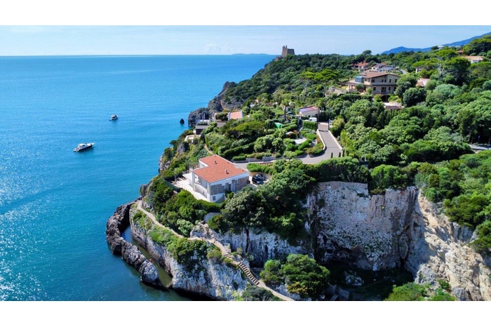Perched on the cliffs east of the Ansedonia promontory, this two-story villa combines comfort and elegance. Its spectacular location provides breathtaking views of the open sea.