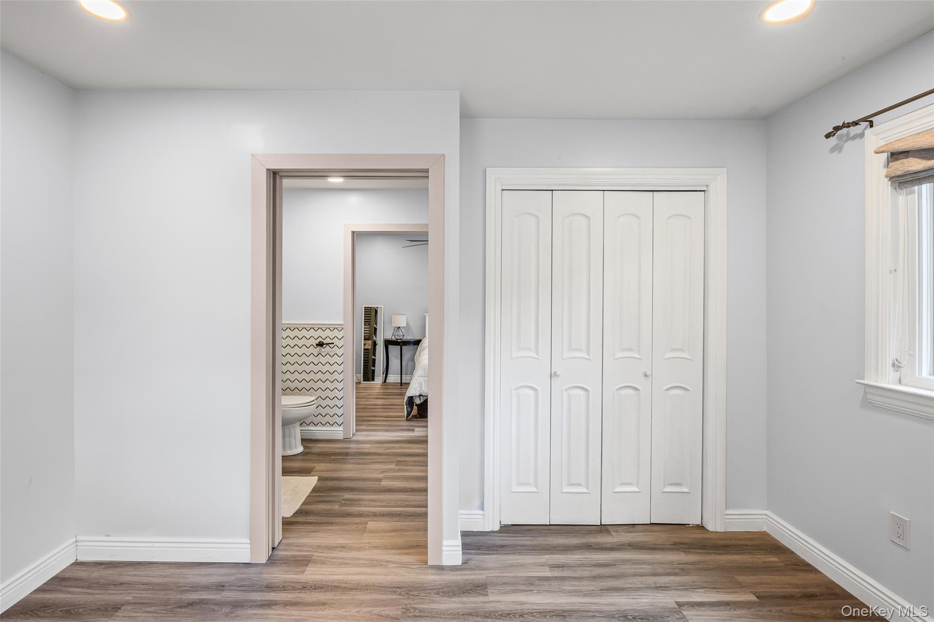 - Unfurnished bedroom with recessed lighting, wood finished floors, and a closet