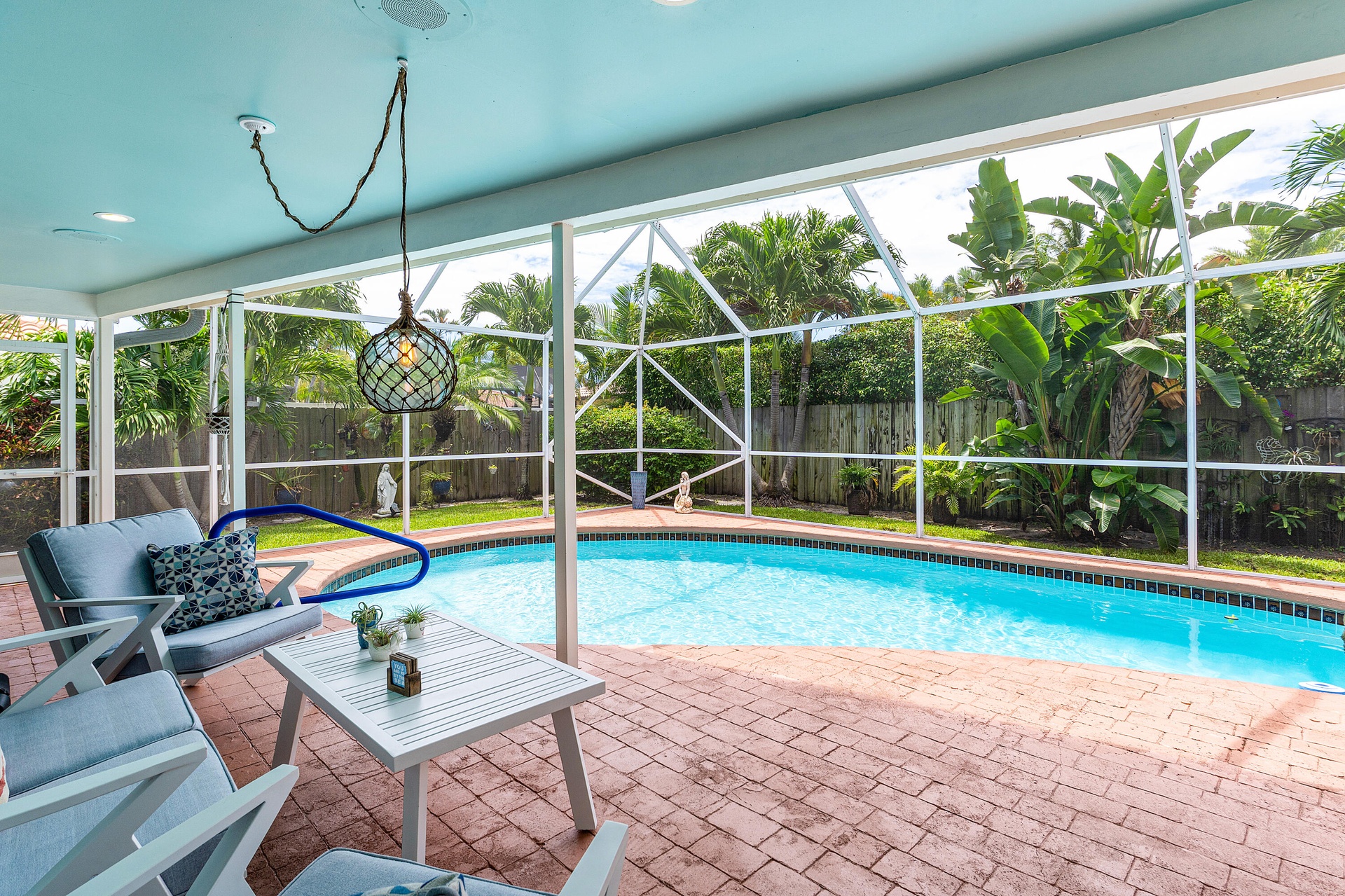 NO HOA in East Boca Raton, this charming and fully updated 2-bedroom, 2-bath single-family home is ideally located east of US1, just minutes to beaches, shopping, and dining. This property has been beautifully renovated with marble flooring throughout, a stunning kitchen featuring quartzite countertops, white shaker cabinets, marble backsplash, and new appliances including a gas range. Roof (2023), A/C (2022).Enjoy outdoor living in the spacious, fully fenced backyard, private pool, landscaping, and room to park a boat or RV OR add on to the home!Whether you're looking for a full-time residence or a vacation retreat, this move-in ready home is updated, easy to maintain and allows for taking full advantage of the South Florida Lifestyle!