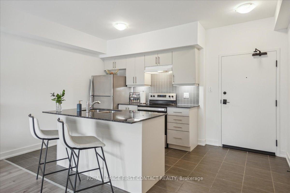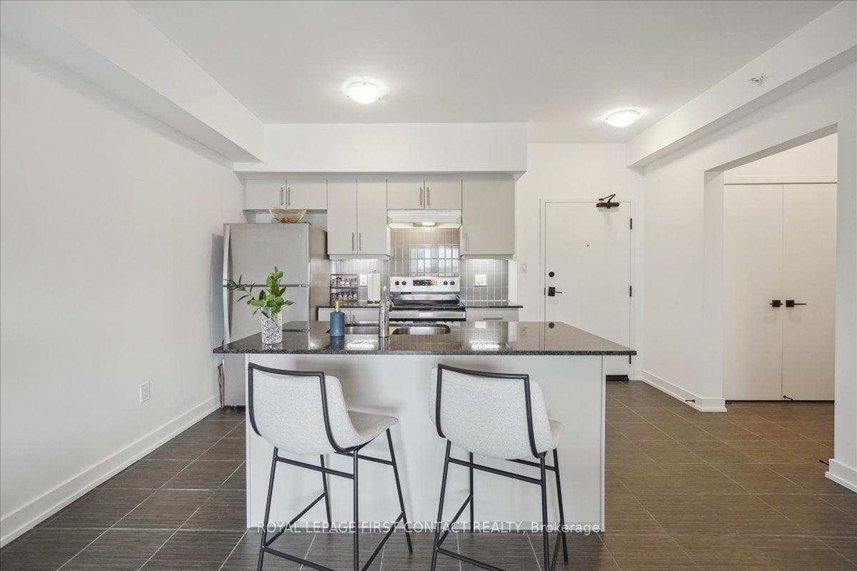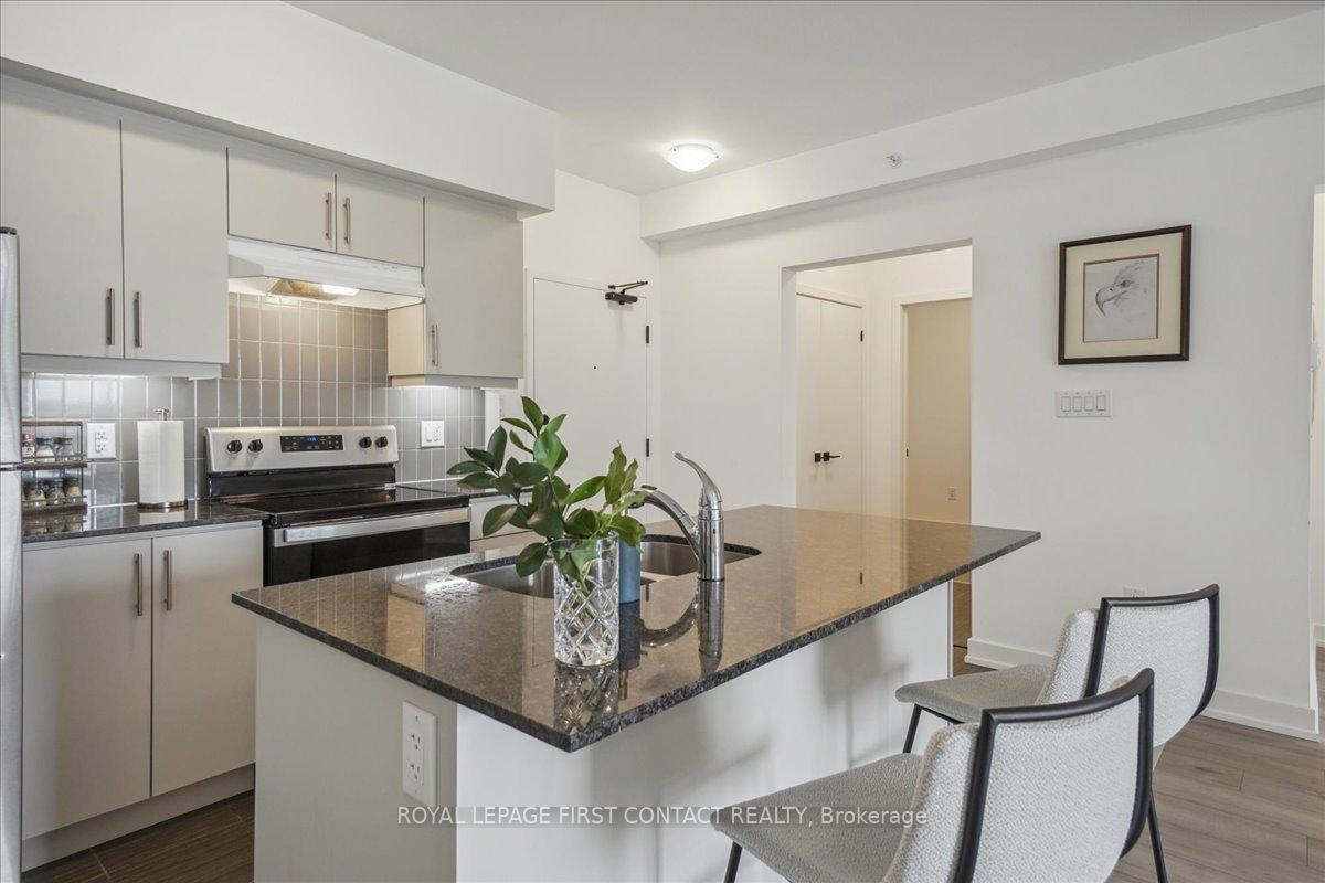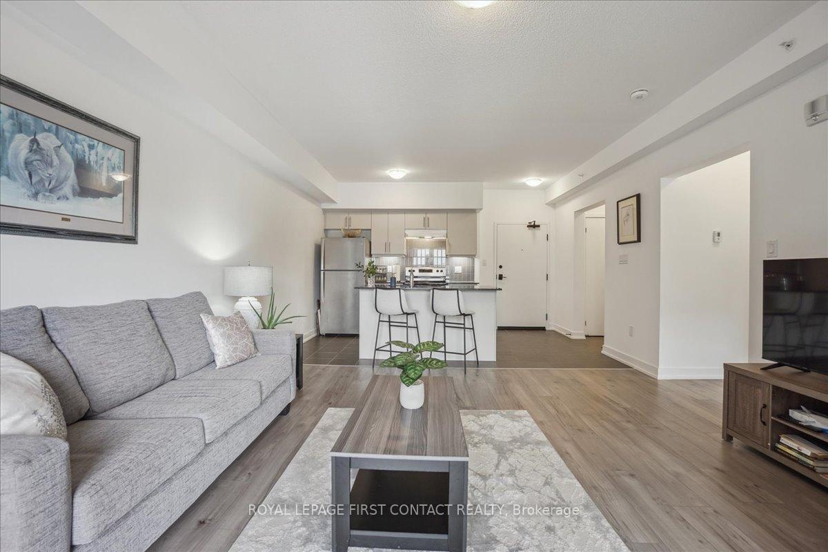 Bistro 6 Condo - 1 Bedroom + Den in Barrie.....Welcome to this bright and spacious 1-bedroom plus den condo located in the sought-after Bistro 6 building in Barrie! Perfectly designed for modern living, this unit offers a generous layout with plenty of natural light. The open-concept living and dining area provides ample space for both relaxation and entertaining.The well-sized bedroom features large windows, offering a serene retreat, while the additional den offers flexibility for an office, reading nook, or guest space. The contemporary kitchen is fully equipped with sleek appliances and ample cabinetry for all your culinary needs.Enjoy the convenience of in-suite laundry, private parking, and more. Located close to all of Barrie's best attractions, including shops, restaurants, parks, and the waterfront, this condo offers the perfect blend of comfort and convenience. Dont miss your chance to call this beautiful, move-in ready space your new home!