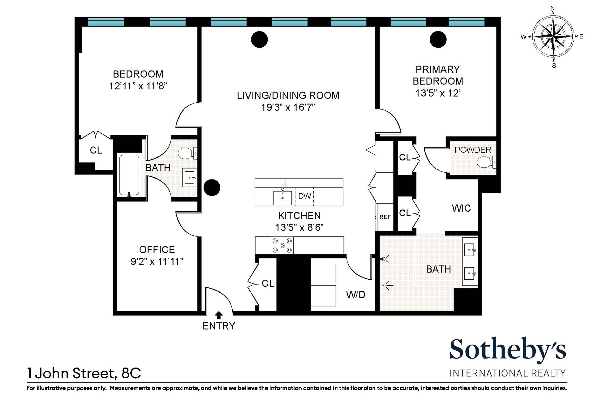 Perfectly situated in DUMBOs coveted Brooklyn Bridge Park, 1 John Street is a LEED Gold certified building offering a 24-hour doorman/concierge in a beautifully-appointed lobby, common landscaped roof deck with grill, park side lounge area, gym designed by la Palestra, secure package room, bike storage room, storage room and common laundry room. The Brooklyn Children’s Museum annex is also included in the building. One John Street is conveniently located near the A/C/F trains and the water ferry located in Brooklyn Bridge Park. Celebrated for its architecture, DUMBO features charming Belgian block streets, Empire Stores, Jane’s Carousel, restaurants, cafes, renowned art galleries, and much more!