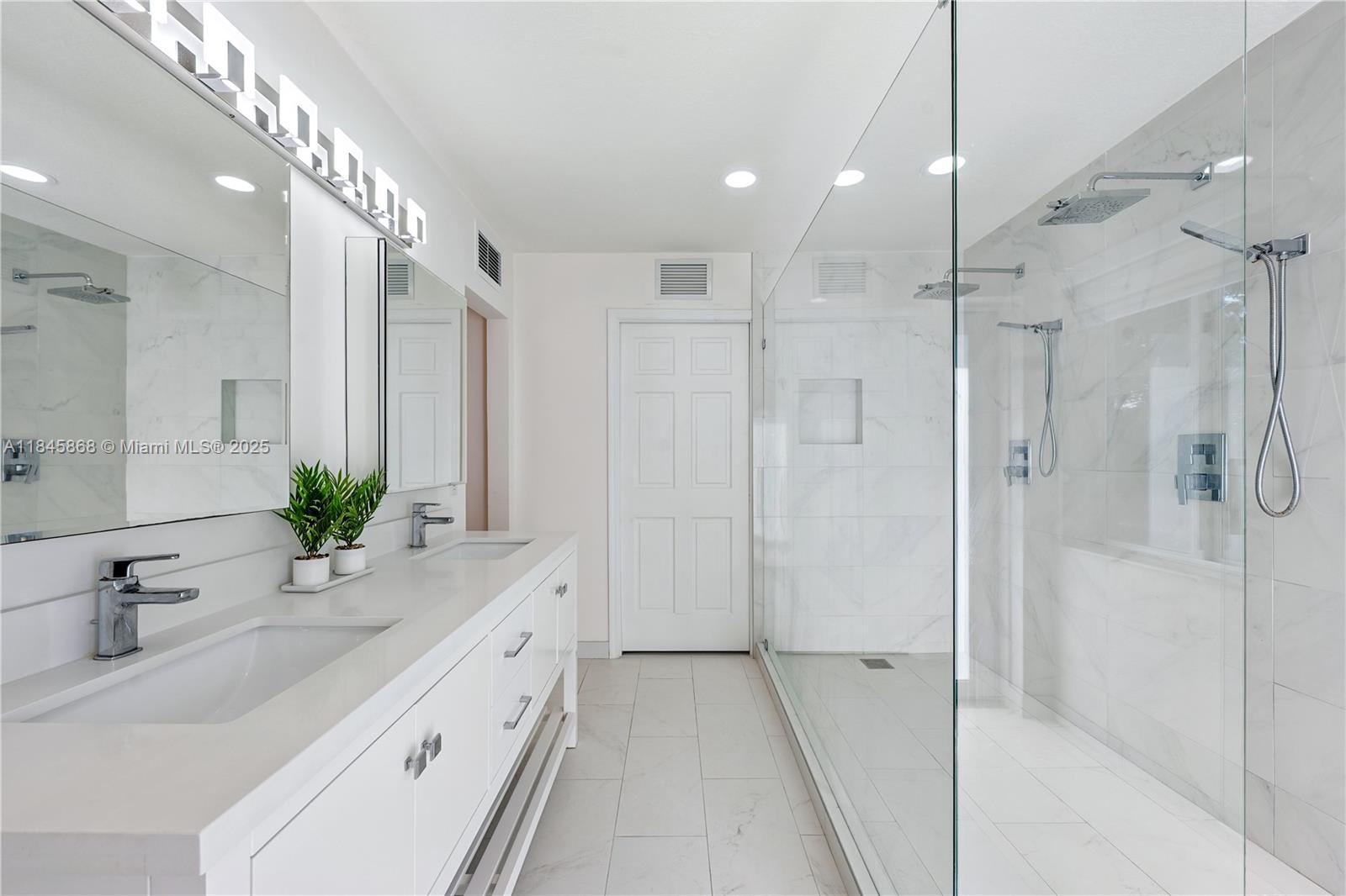 Expanded to 2,880 living sq ft with permits. Impact windows/doors. 2018 concrete roof tile. Exceptional 4/3 Palmetto Bay home designed for comfort, entertaining, and outdoor living. Ideally located near top-rated public/private schools, parks, shops, and bike paths in a quiet residential area. The spacious primary suite features his and hers walk-in closets, an updated in-suite bath with dual showers/sinks, and its own tankless water heater. The large kitchen boasts wood cabinetry, granite countertops, and an L-shaped counter with seating capacity for 4. Open living, dining, and family areas offer easy flow, with French doors throughout connecting indoor and outdoor spaces. Includes oversized 2-car garage, dedicated laundry room with cabinetry and utility sink.