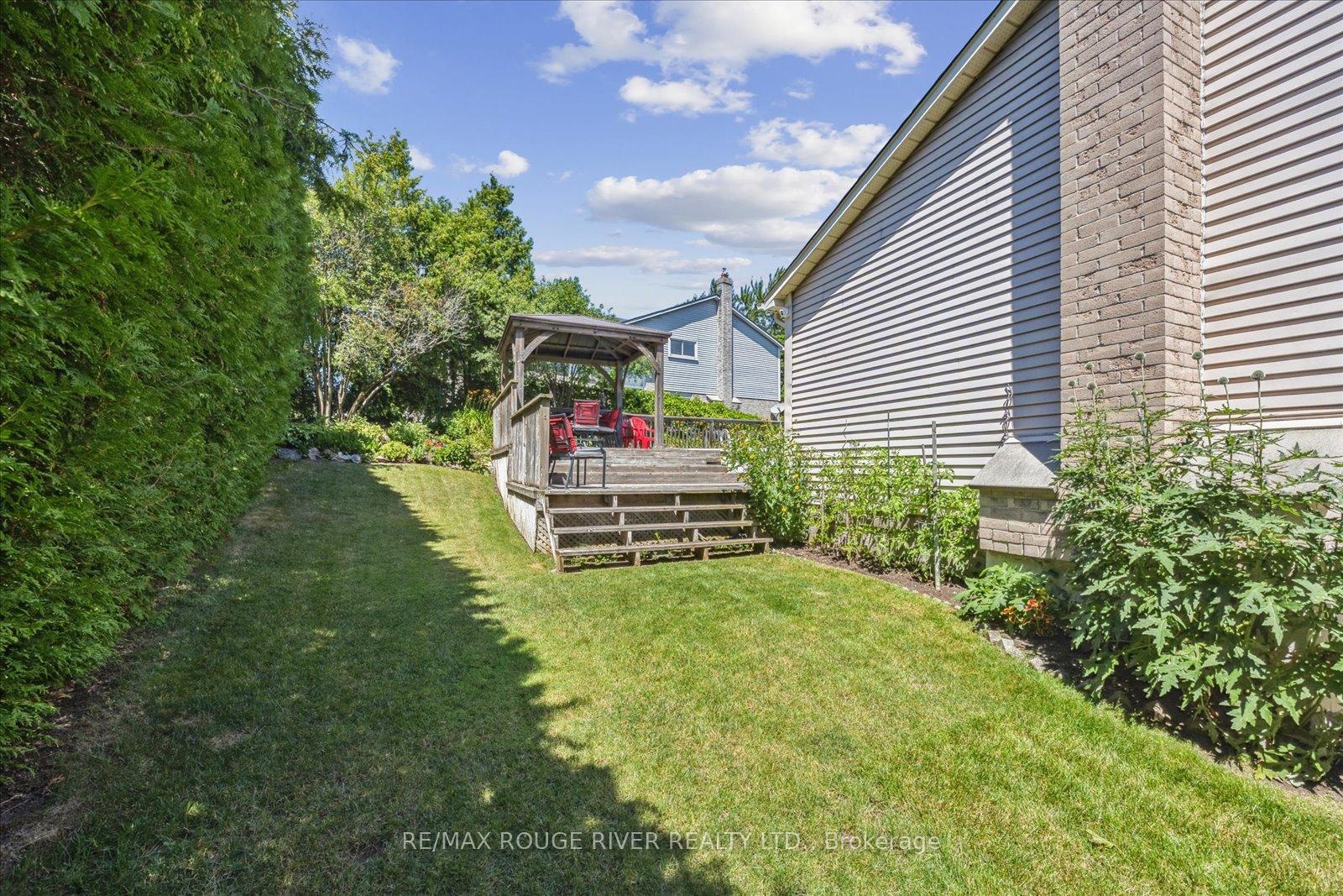 Don't Be Fooled, this Home is much larger than it looks! Nestled on a Generous Sized Fully Fenced Lot in One of Oshawa's most Desired Family Neighborhoods. Offers Incredible Space both Inside and Out. This Well Maintained 4 level Backsplit Offers a smart and spacious Layout perfect for Growing Families, Multi-Generational Living, or anyone needing extra room to work and relax. The Main Floor features a eat-in Kitchen O/L the family room Below and W/O to 3 season Sunroom Room, perfect for Entertaining. Separate Dining Room with Vaulted Ceilings, Large Window. Bright Office, ideal for working from home. Direct Access to Garage for Convenience. Upstairs, you'll find 3 Generous Bdrms, including Primary suite with a 4pce semi ensuite Bathroom and a private W/O to Deck, perfect for morning Coffee or evening unwinding. The Lower Level offers a Cozy Family room with gas fireplace, visible from the Kitchen. 4th bdrm with egress window and double closet. 3 pce bathroom-great for guests or teens seeking privacy. Lower Level provides a spacious Rec Rm, laundry rm, and ample storage for all your needs. Step outside to your own backyard Oasis, inground sprinkler system. complete with an above ground pool, large deck and total privacy with meticulously maintained grounds. 6 car Driveway, no sidewalks, walking distance to schools, parks, transit, short drive to highway. This home checks every box: space, privacy, functionality, and a fabulous neighbourhood.