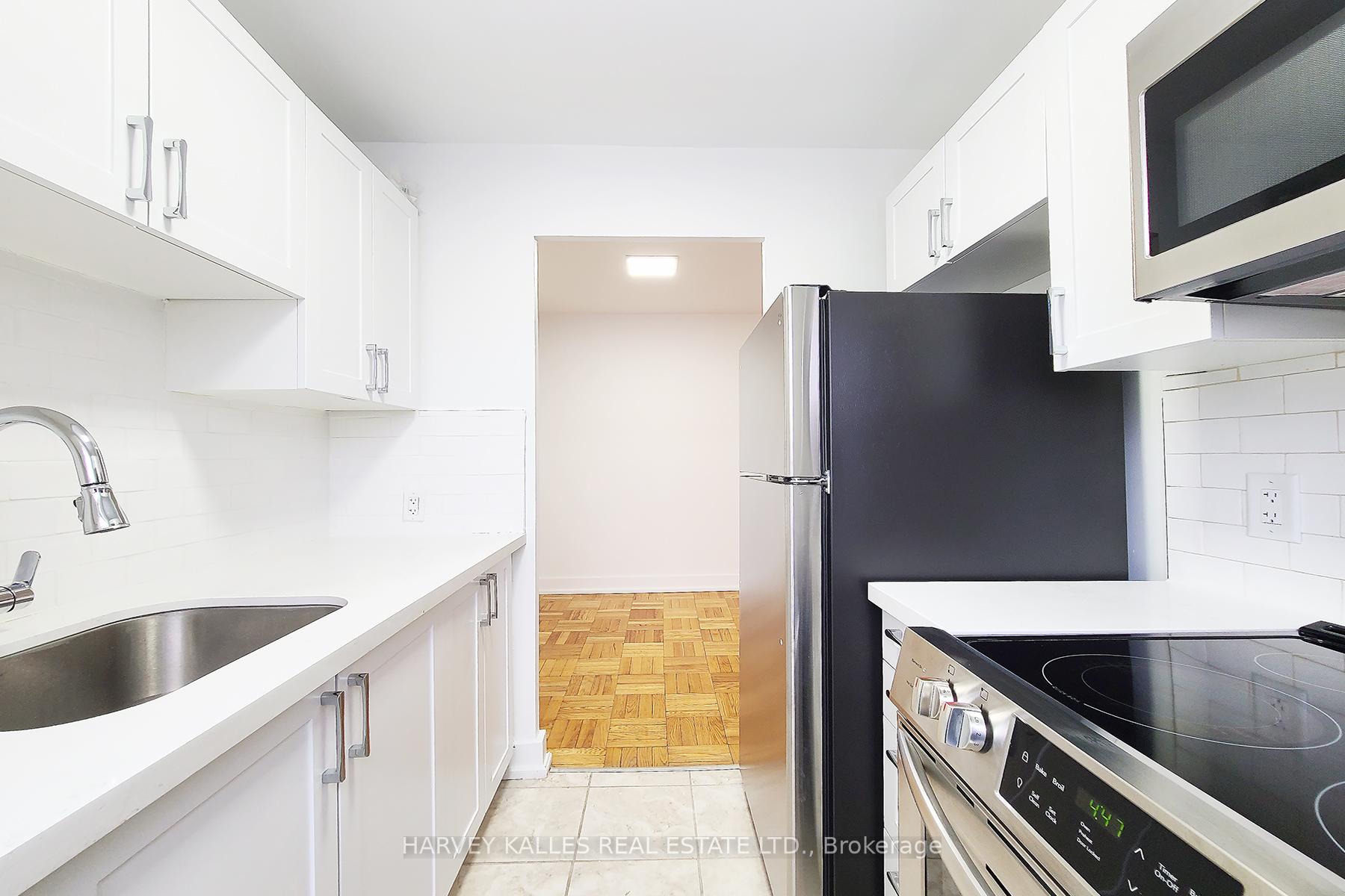 Bright and spacious 1-bedroom, 1-bathroom suite in a charming, three-story walk-up building. This freshly painted apartment features refinished parquet flooring throughout, with new tile flooring in the kitchen. The spacious living area is filled with natural light from a large window. The kitchen is equipped with new white cabinetry, stone countertops, and stainless steel appliances, including a fridge, stove, and built-in microwave. Large bedroom along with a 4 piece bathroom. Shared laundry is available in the building. One parking spot is available. Located in the peaceful Stonegate-Queensway neighborhood, this building offers easy access to the Gardiner, Highway 427, and the QEW, with a quick 10-minute drive to downtown. Its within walking distance to parks, schools, libraries, and grocery stores. 1 small harmless pet allowed & non-smokers please. 1 parking available at $125/month extra.