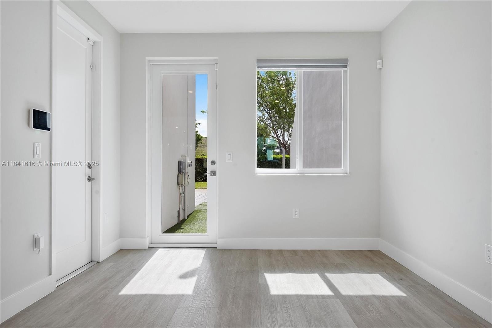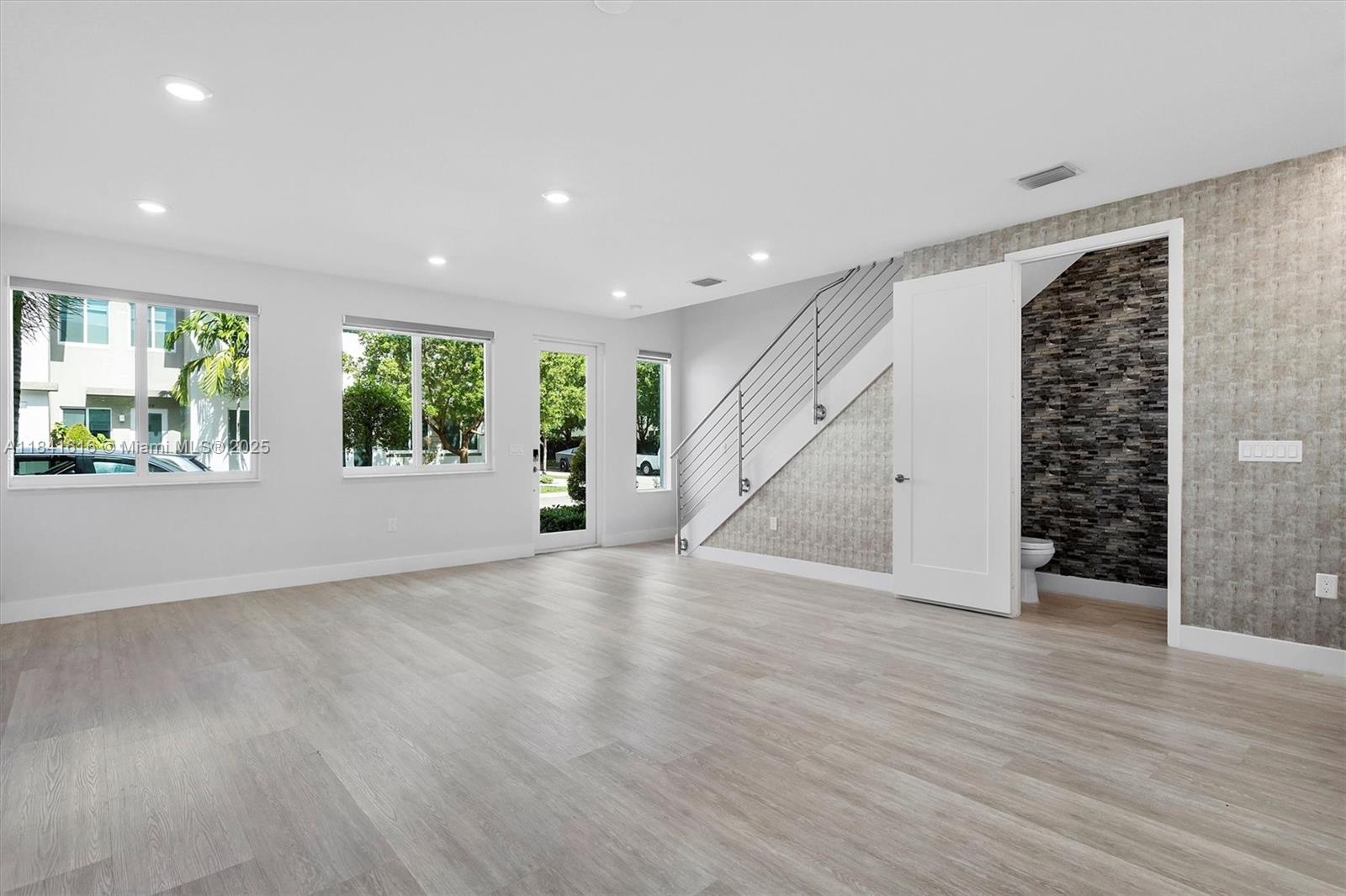Enjoy lake views and modern comfort in this 3-bed, 2.5-bath townhouse in the desirable Landmark at Doral. Features include hardwood flooring, custom window and wall treatments, and energy-efficient design. The kitchen offers quartz counters, recessed lighting, and stylish finishes. A spacious living area opens to a back patio with low-maintenance turf and tranquil water views. Additional highlights include: 1-car covered garage, 3-car driveway, EV charging port, Vivint alarm system, and full smart home integration—smart lock, thermostat, ceiling fan, garage door opener, interior doors, security cameras, and network-ready for seamless connectivity. Close to the community clubhouse and gym. Move-in-ready with modern comforts in a peaceful setting—come see what makes it special.