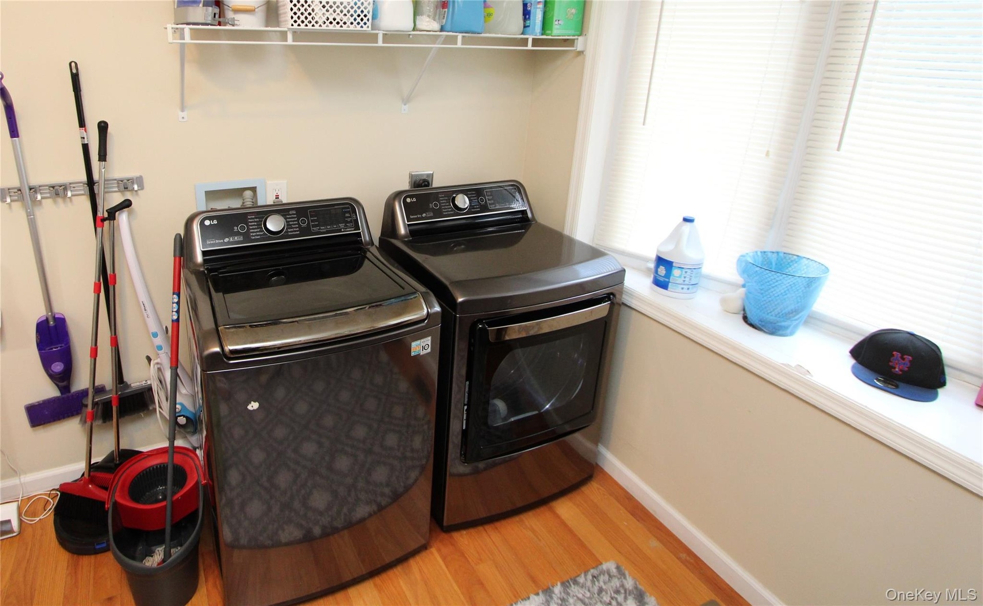 - Laundry room featuring separate washer and dryer and light wood-style floors