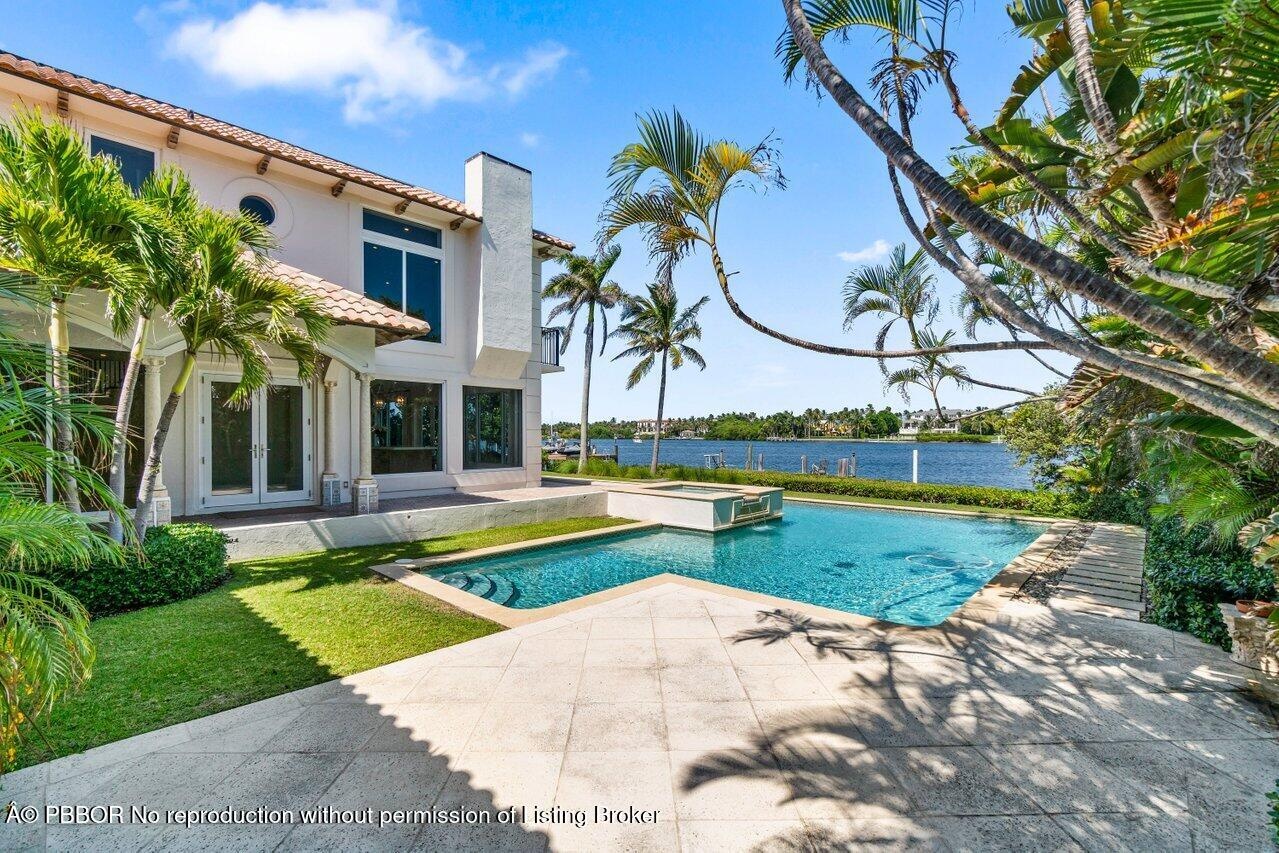Mediterranean Pt. Manalapan Villa with panoramic views of the Intracoastal 100+ frontage. Completely renovated, this home has a separate 4-car garage with a 1/1 apartment, a heated lap pool & spa, dining room
