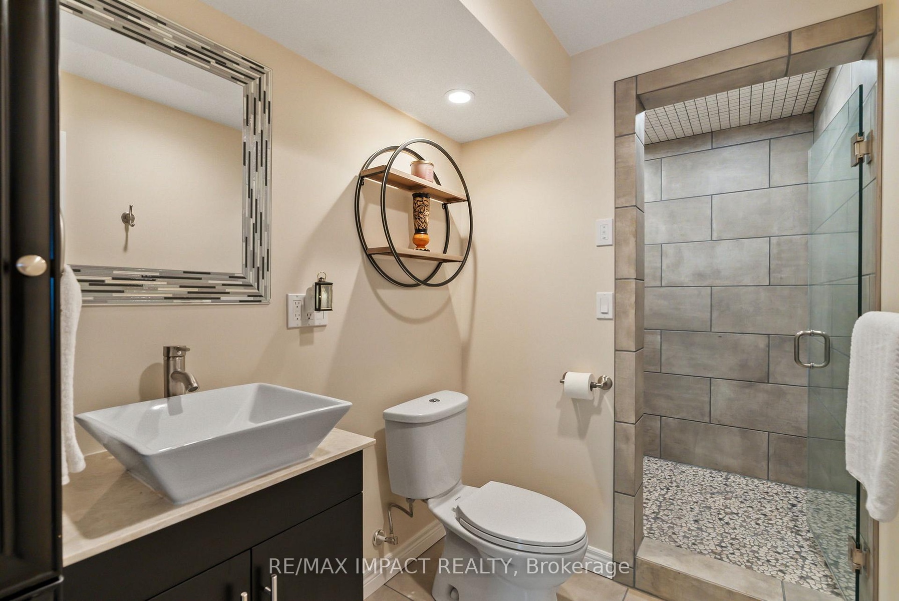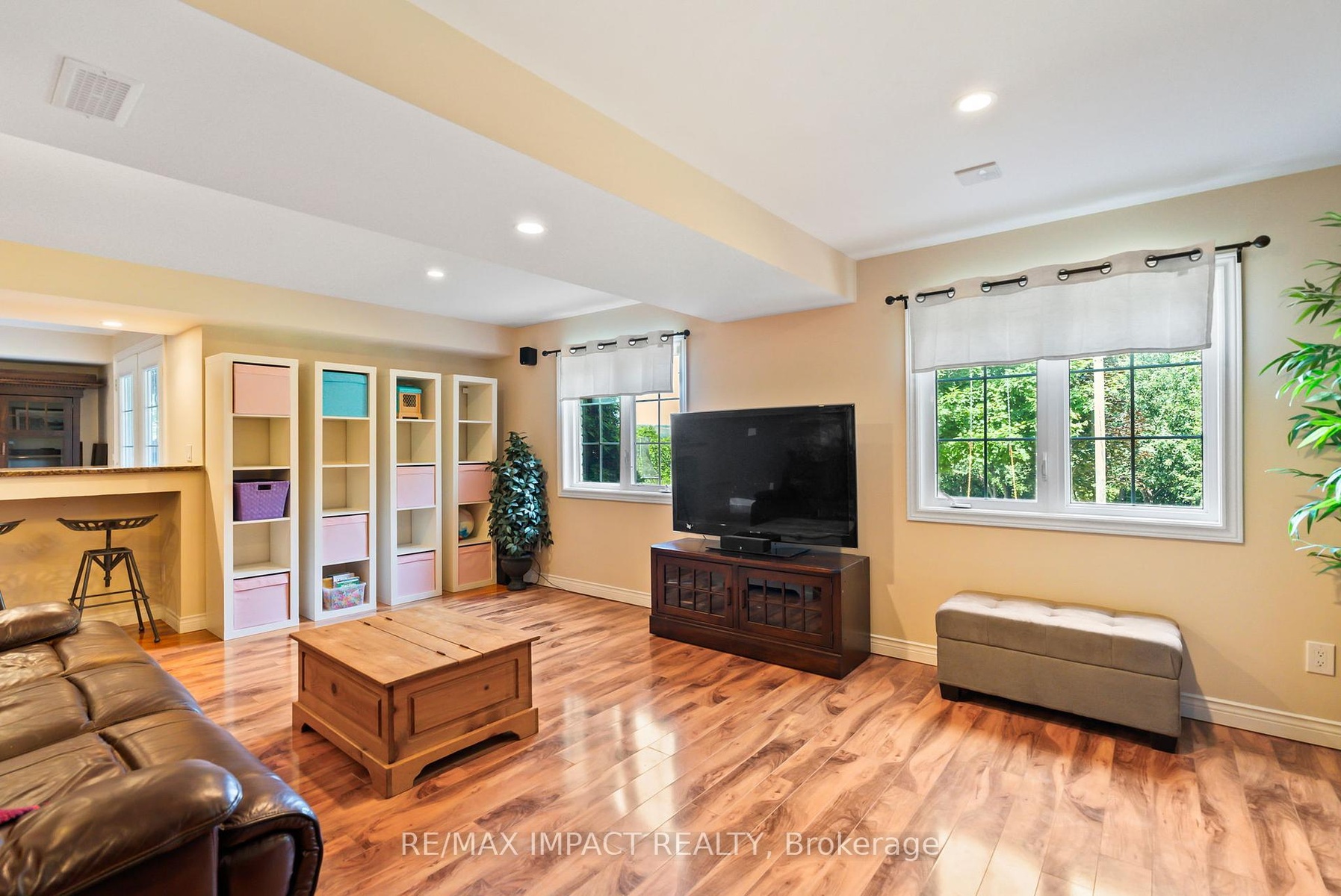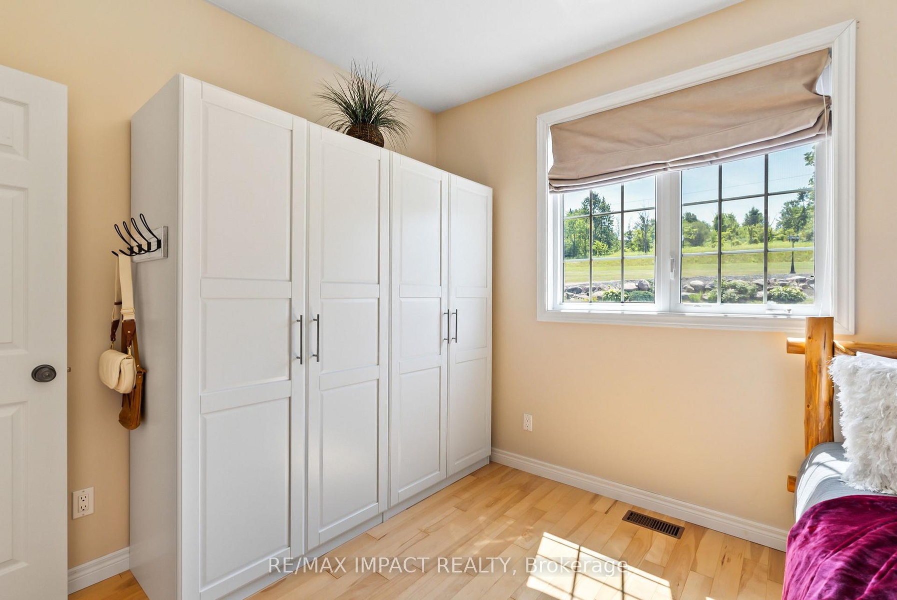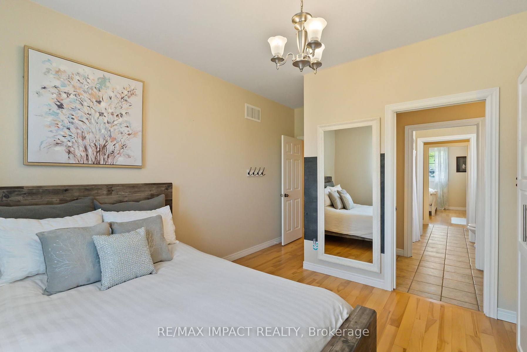 DescriptionImpressive custom brick/stone bungalow, boasting over 2500 sf of luxurious living space on the main level plus full walkout basement and attached heated 3-car garage with 2 overhead doors. Nestled on an expansive 1.74 acres, this home offers a serene lifestyle with panoramic views overlooking farmlands and the Cavan Hills, complete with a spring-fed pond, ranging from 10-14 deep. As you enter the front foyer, there is a convenient den plus the grandeur of a spacious great room, accentuated by a striking stone fireplace and a unique waffle-patterned feature wall. Gleaming hardwood floors flow throughout the home with an abundance of crown mouldings and pot lights. The chefs kitchen is a culinary delight, equipped with stainless steel appliances, a granite countertop, ceramic backsplash, and an island with a veggie sink. The adjacent large dining area opens onto a generous deck, designed with tempered regal glass for unobstructed views of the backyard and fire pit area, ideal for entertaining friends and family. The main floor features 4 well-appointed bedrooms, including a primary suite that includes a walkout to the deck, a luxurious 5-pc ensuite with dual sinks, a separate shower and a whirlpool tub, all complemented by a stylish barn door privacy feature. The primary suite also boasts a walk-in closet with built-in shelving for optimal organization. Two of the additional bedrooms share a convenient Jack and Jill bathroom, while a third bedroom is situated near the 2-pc powder room. The walkout basement includes large above-grade windows that flood the space with natural light, a cozy family room complete with an electric infinity fireplace and a dry bar, 3-pc washroom and a huge open area with extra plumbing rough-ins, perfect for customization. The basement also features ample storage, making it an excellent option for a multi-generational living arrangement with its separate entrances and walkout basement.Amenities- Air Exchanger
