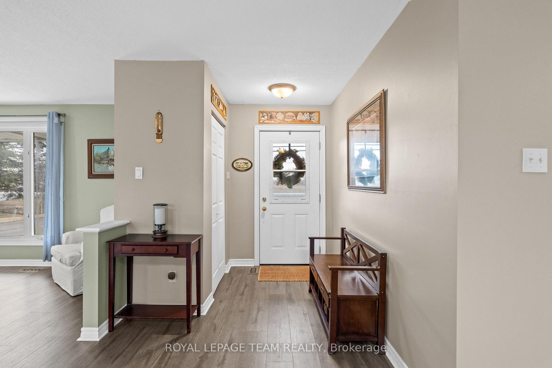Charming bungalow nestled on a beautiful half-acre lot at the edge of the prestigious Carleton Golf & Yacht Club community in Manotick. This delightful home offers the perfect blend of comfort, privacy, and convenience, ideal for those seeking a tranquil lifestyle with close proximity to essential amenities. The open-concept main floor is filled with natural light from large east and west-facing windows, creating a warm and inviting living space. The bright living room flows seamlessly into a functional kitchen and dining area, with direct access to a private backyard surrounded by mature trees and lush gardens, perfect for outdoor entertaining. Two well-appointed bedrooms and a full main bathroom complete the main level. The second bedroom appears to have previously been two separate rooms, which were combined into one; it may offer potential for conversion back to a three-bedroom layout. The finished basement extends your living space with a generous recreation room, a versatile den, a convenient powder room, and abundant storage options. Stylish, waterproof, and durable Rigid Core flooring runs throughout both levels, combining practicality with contemporary appeal. A spacious double-car garage with inside entry offers both parking and additional storage. Two garden sheds provide even more outdoor storage for tools, equipment, or seasonal items. Work from home with fast Bell Fibe internet. Located just south of Manotick's charming village core, this home is minutes from the Rideau River, local shops, scenic parks, and great restaurants. Manotick is known for its historic mill, vibrant community events, and small-town charm with big-city convenience. You'll love the farmers markets, local boutiques, and cozy cafés, plus the excellent schools and community services nearby. Hwy 416 ensures an easy commute to Ottawa and surrounding areas, and just an 18-minute drive to the Bowesville Station O-Train Park & Ride, making transit into the city even more accessible.