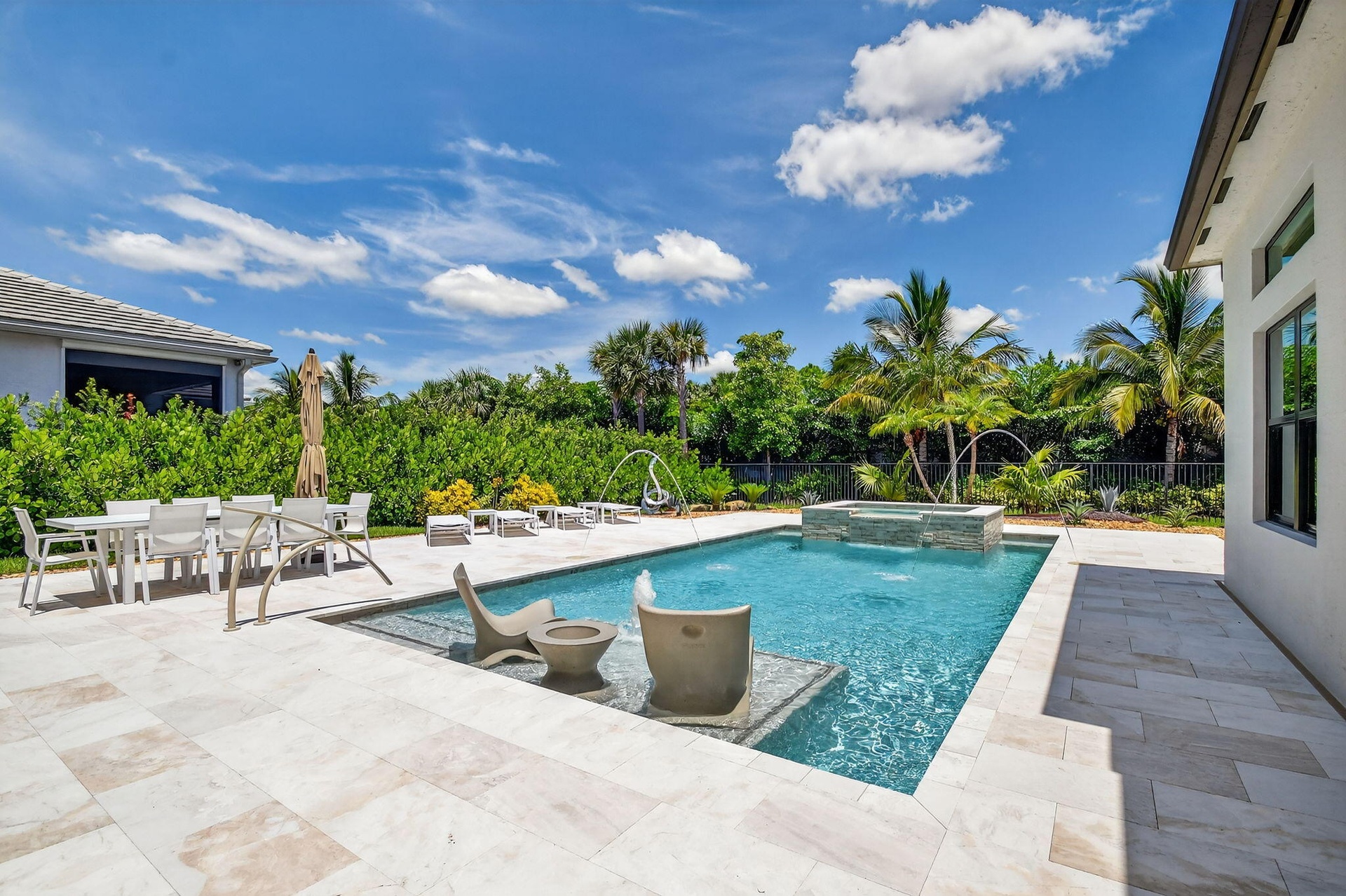 SENSATIONAL! 4 Bedroom/4 Bath Designer Charleston Grande Crown model is a 3,277 sqft WOW HOME in the most desirable Active Adult Valencia Grand GLHomes community! The backyard is a PRIVATE haven! Like a boutique hotel resort, this home has an extended marble patio, a landscaped backyard and a magnificent large heated saline pool featuring a large powerful 2-pump 6-jet spa that invites endless great times with no houses in view! TONS OF LITTLE DETAILS THAT MAKE A BIG DIFFERENCE! Relax on the in-pool chairs on the sunshelf overlooking deck-to-pool fountains, a bubbler, expanded spillover, with a beautiful nighttime light show of 6 synced color-changing lights...Easy on the knees and for visitors, the pool has a rare 5-step entry, custom painted artisan handrail,